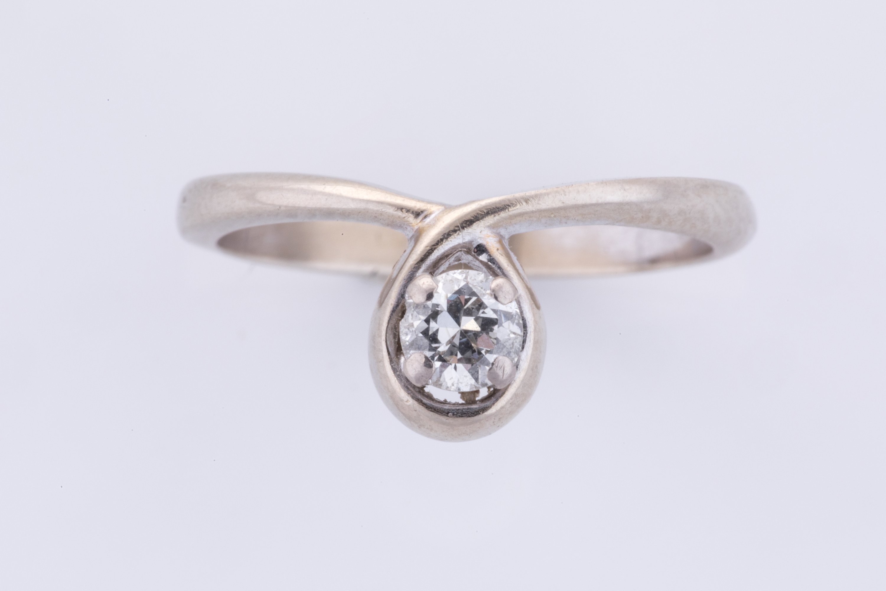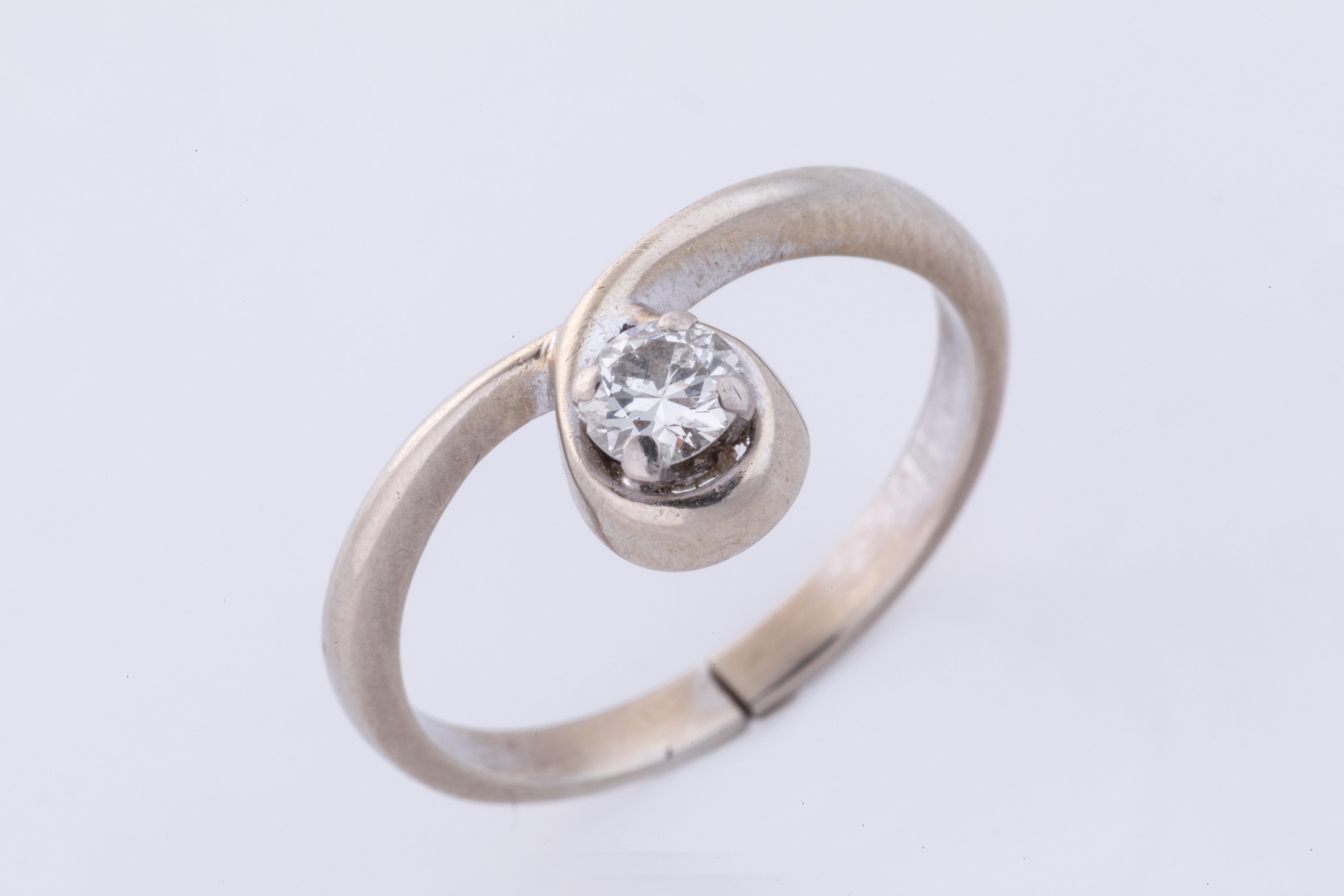 en or gris ou platine, sertie d'un diamant d'environ 0,25 ct.