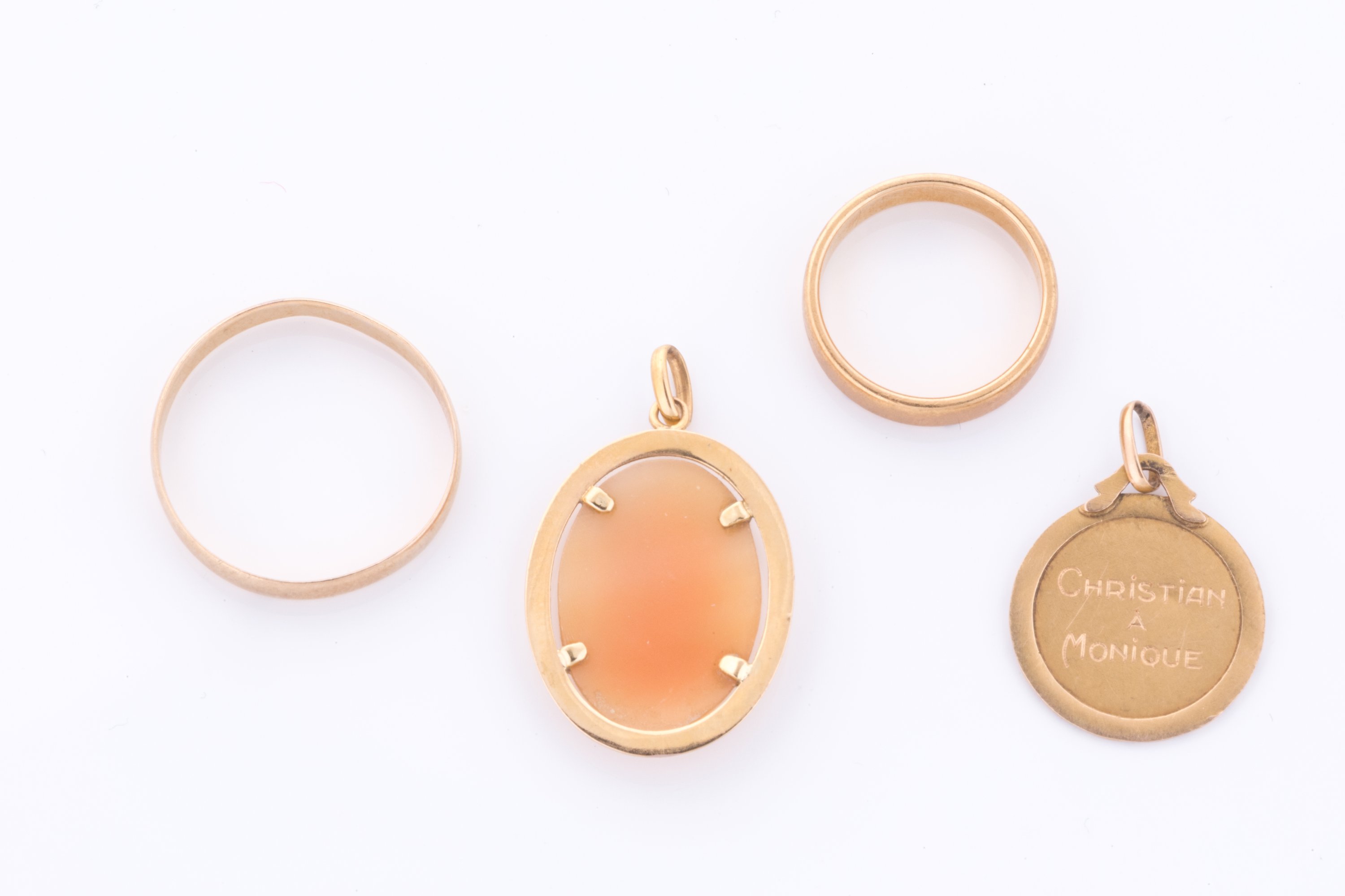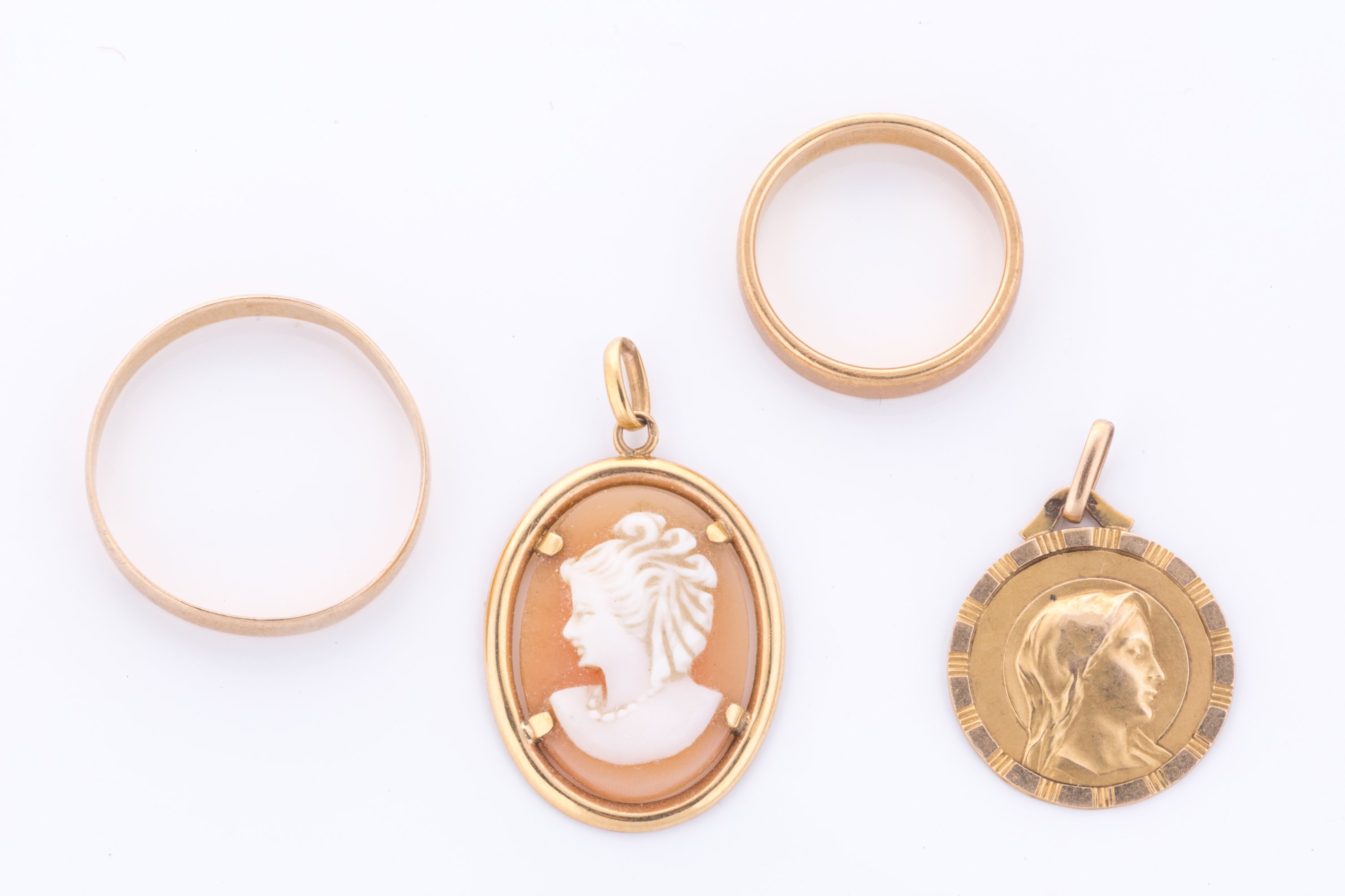 Deux alliances et une médaille religieuse au profil de la Vierge