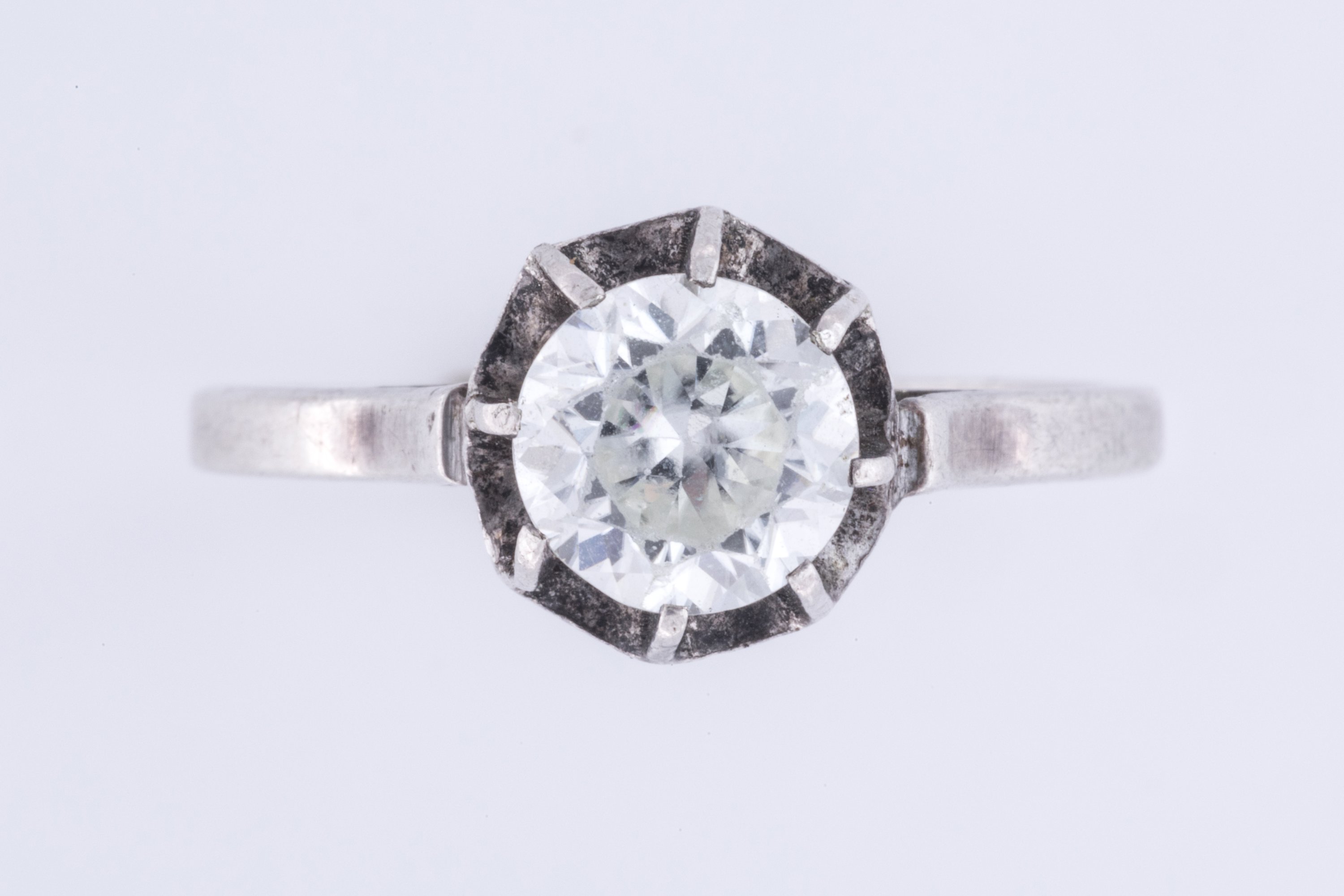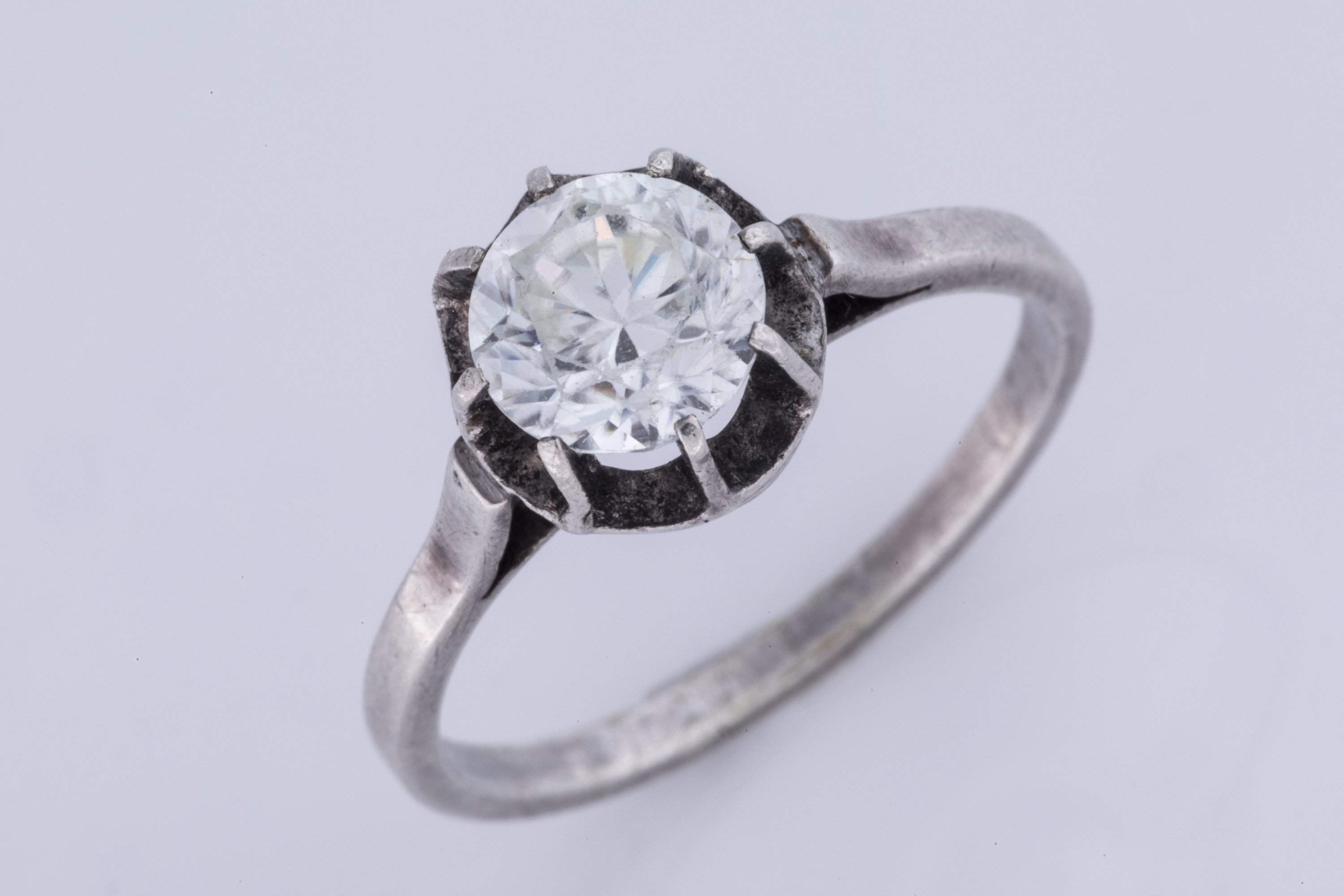 en platine sertie d'une pierre de synthèse imitant un diamant.