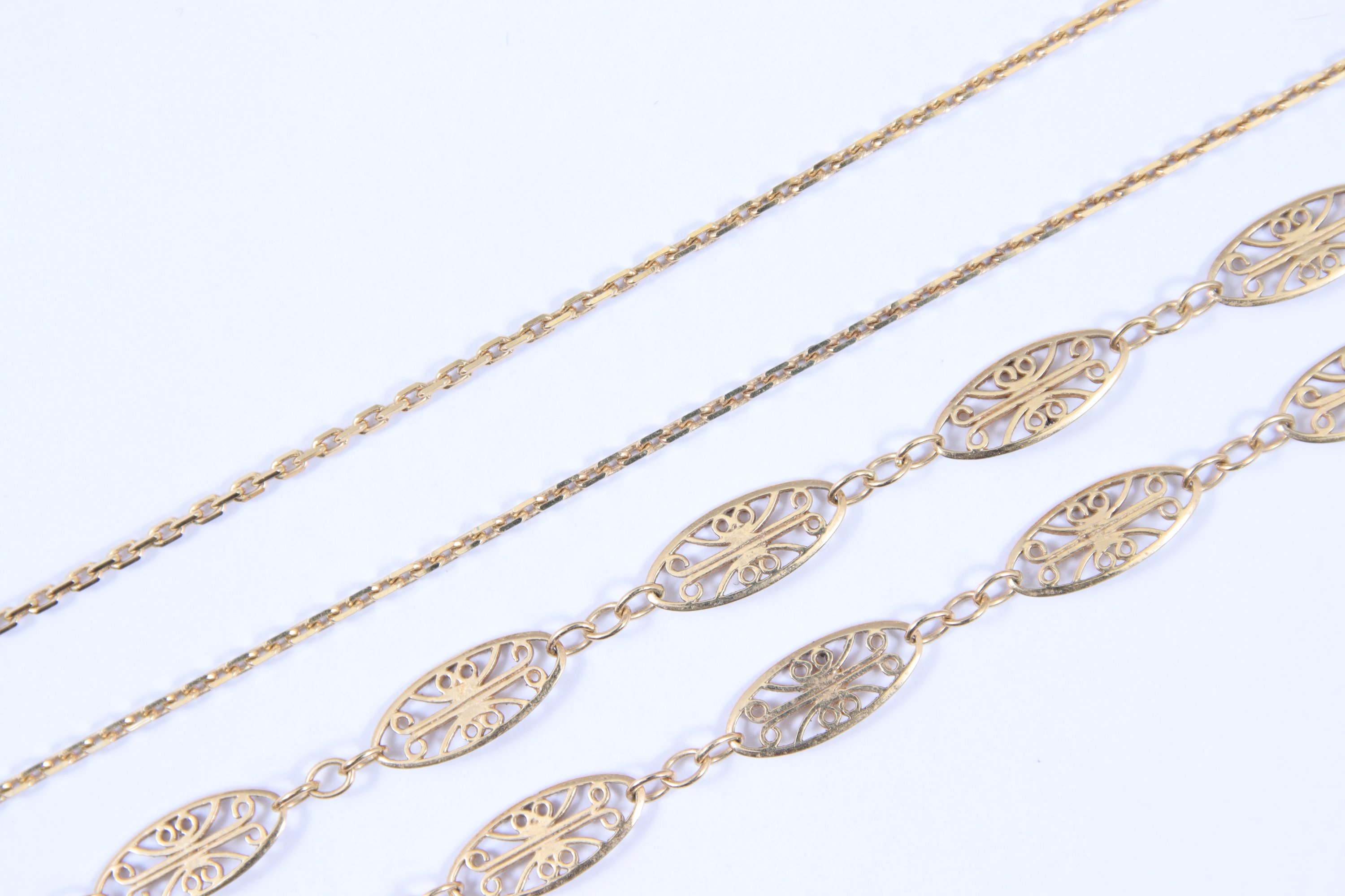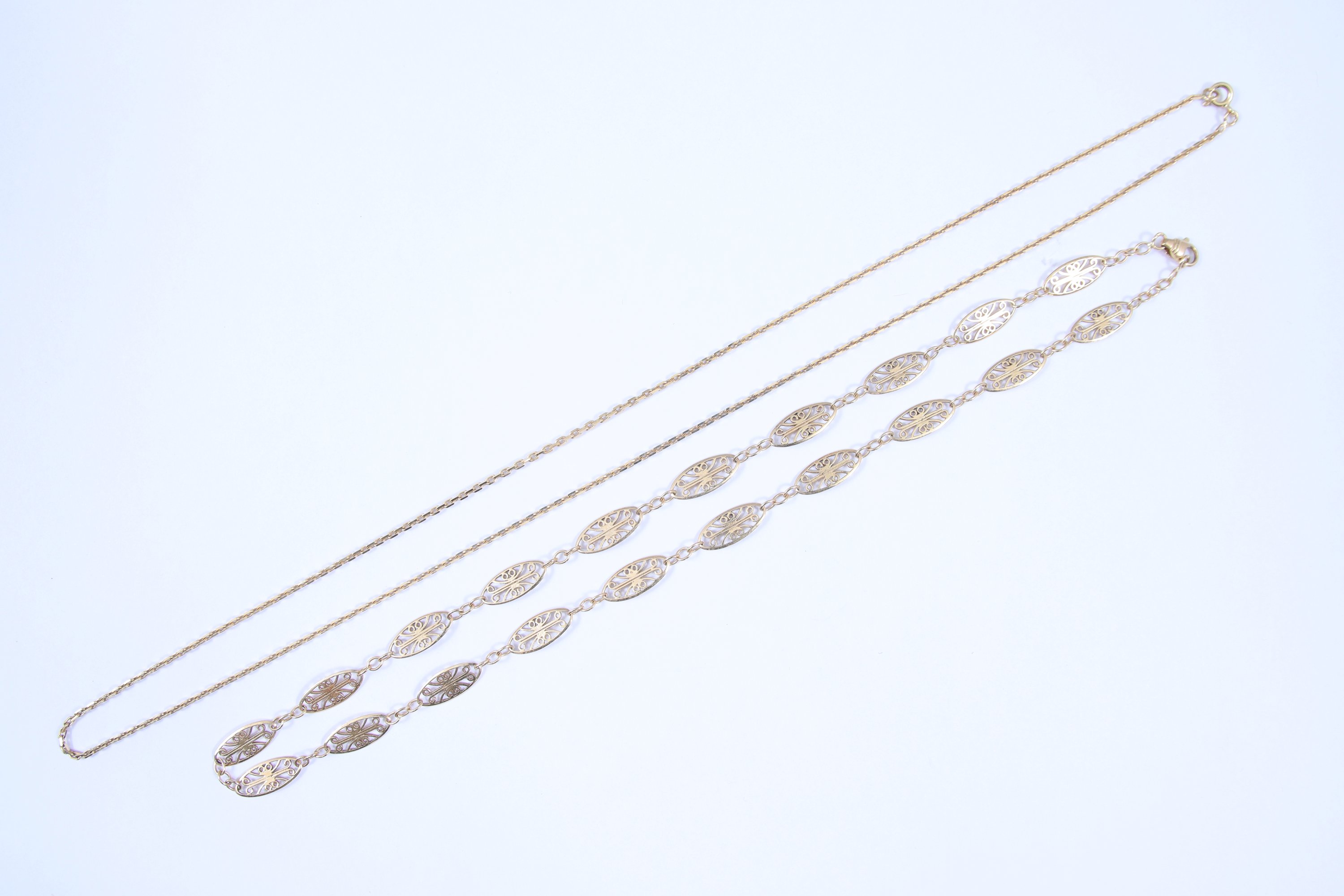 en or jaune 750 millièmes, le premier à mailles forçat et le second à mailles filigrannées.