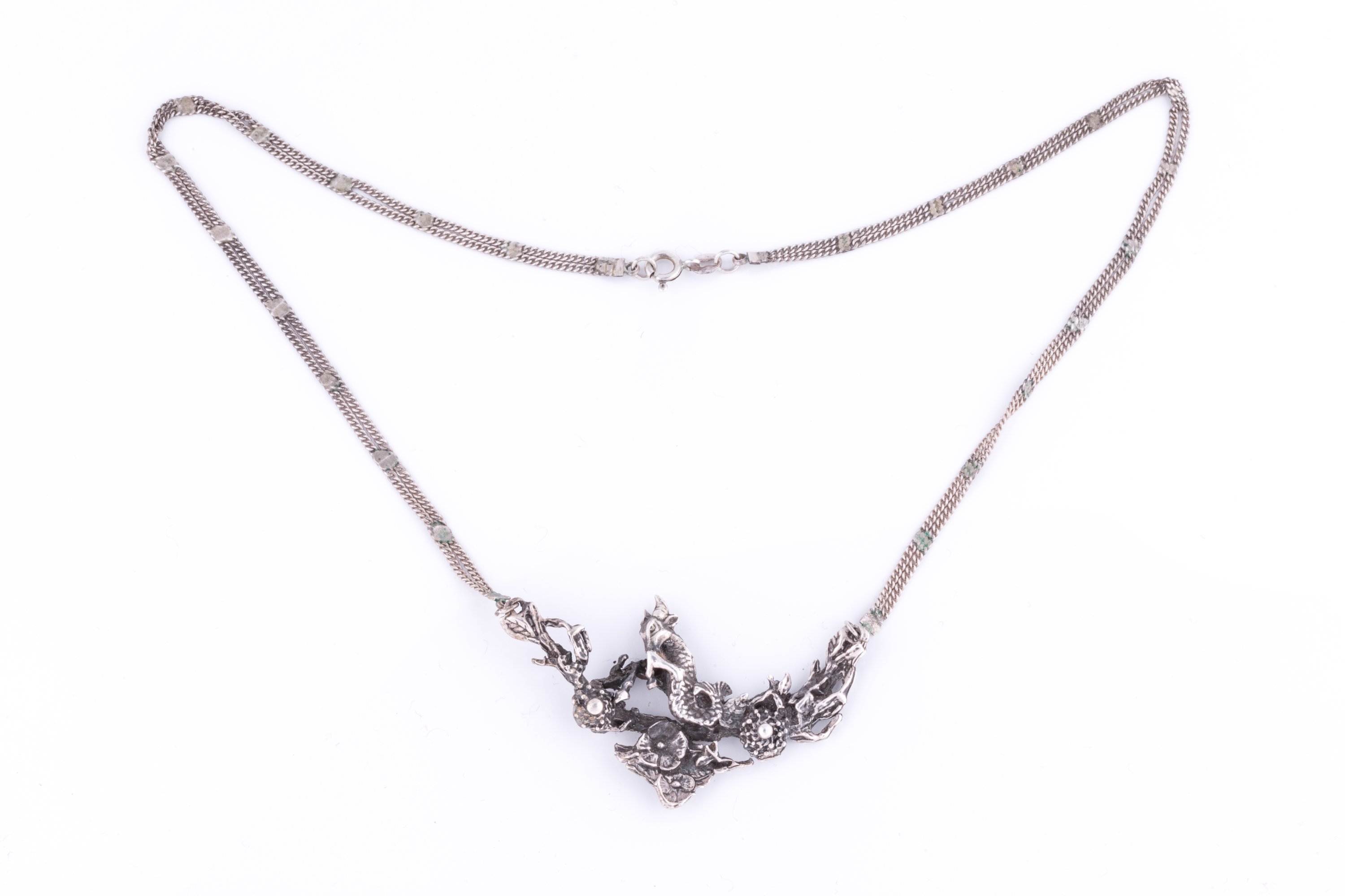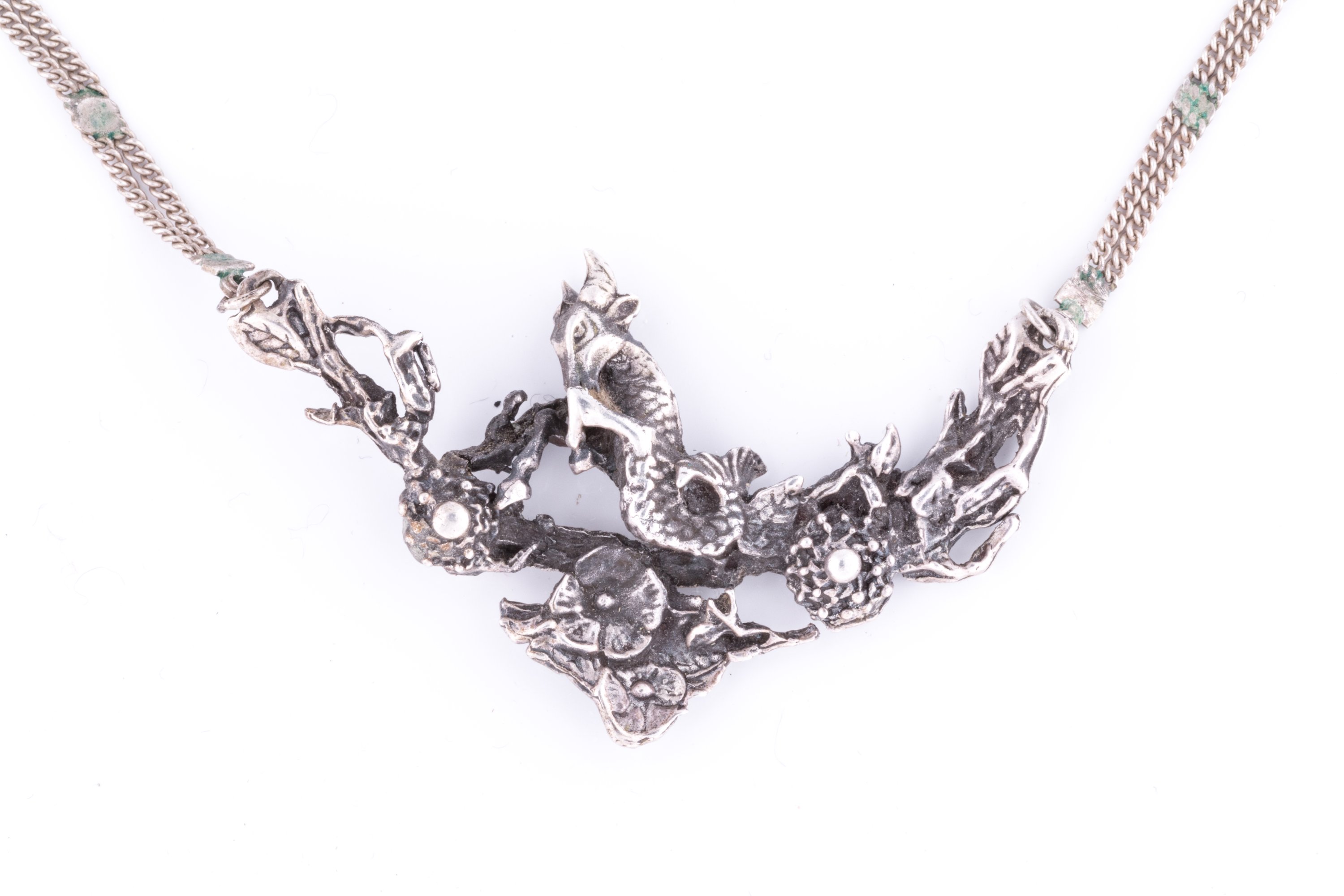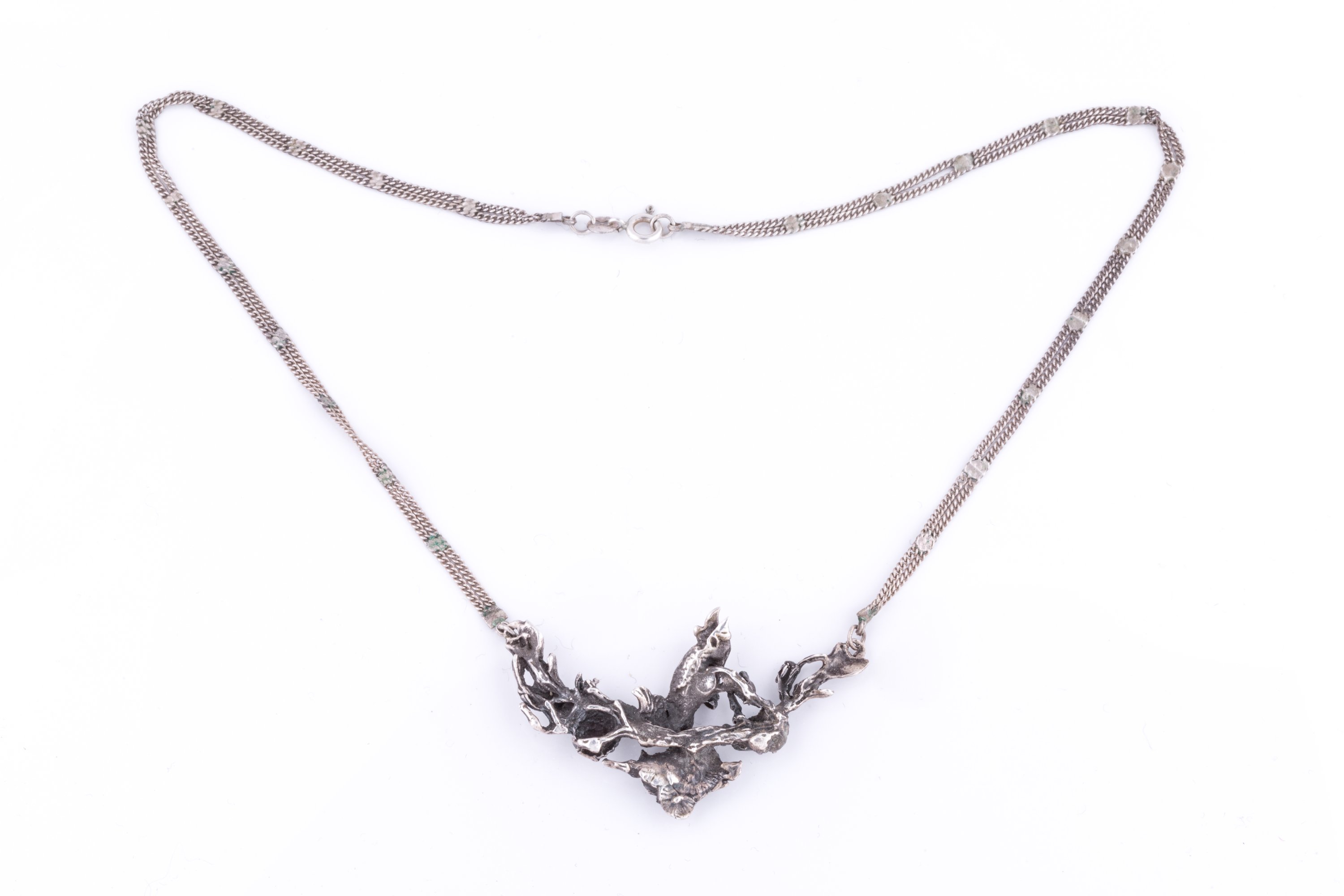 en argent, figurant au centre un capricorne dans la végétation. Double rang de mailles gourmette et renforts réguliers par des mailles pleines.