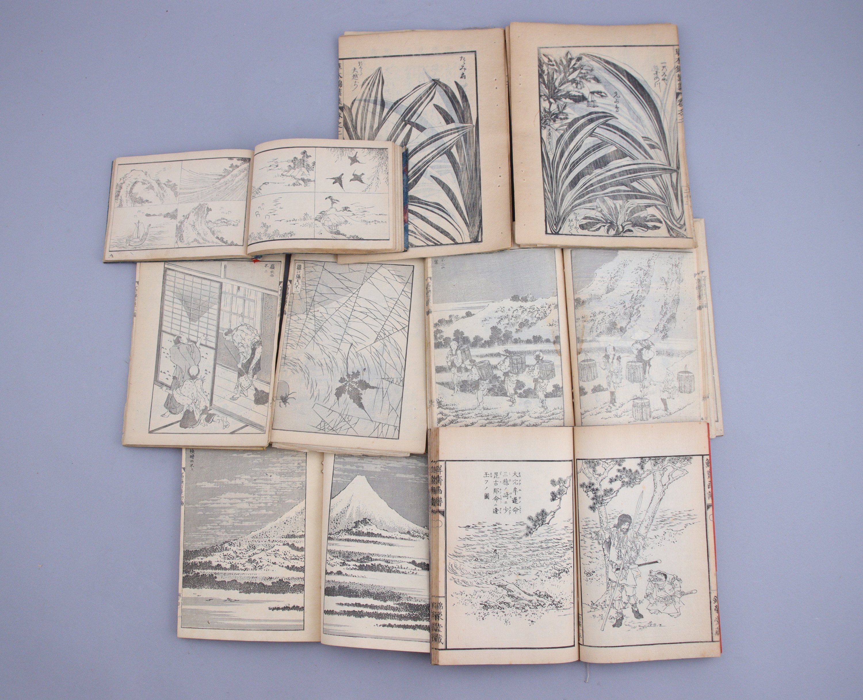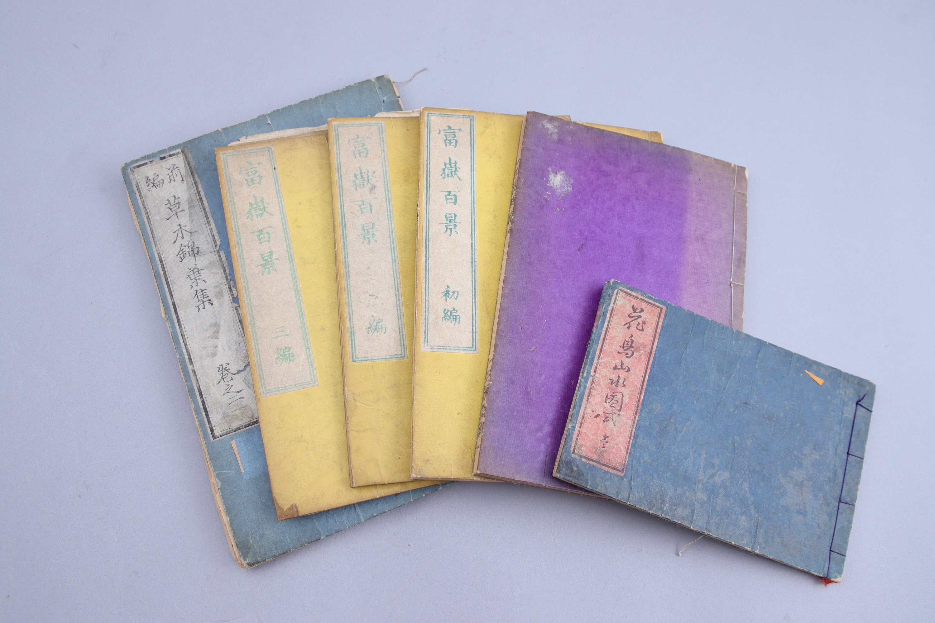 - D'après Katsushika Hokusai (1760-1849), Fugaku Hyakkei, Les Cent Vues du Mont Fuji, trois volumes sur 3, datés Meiji 8 (1875). (taches)