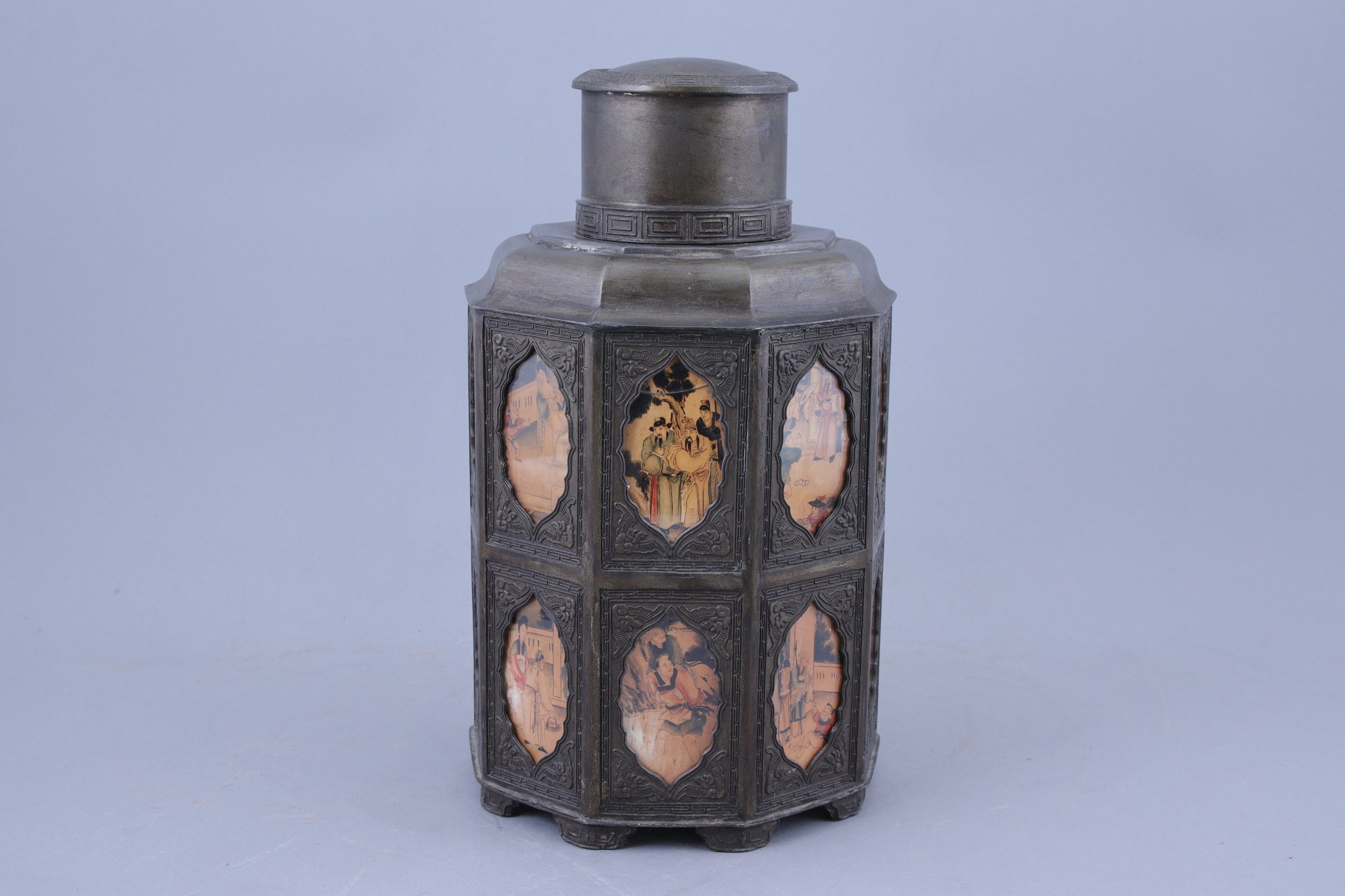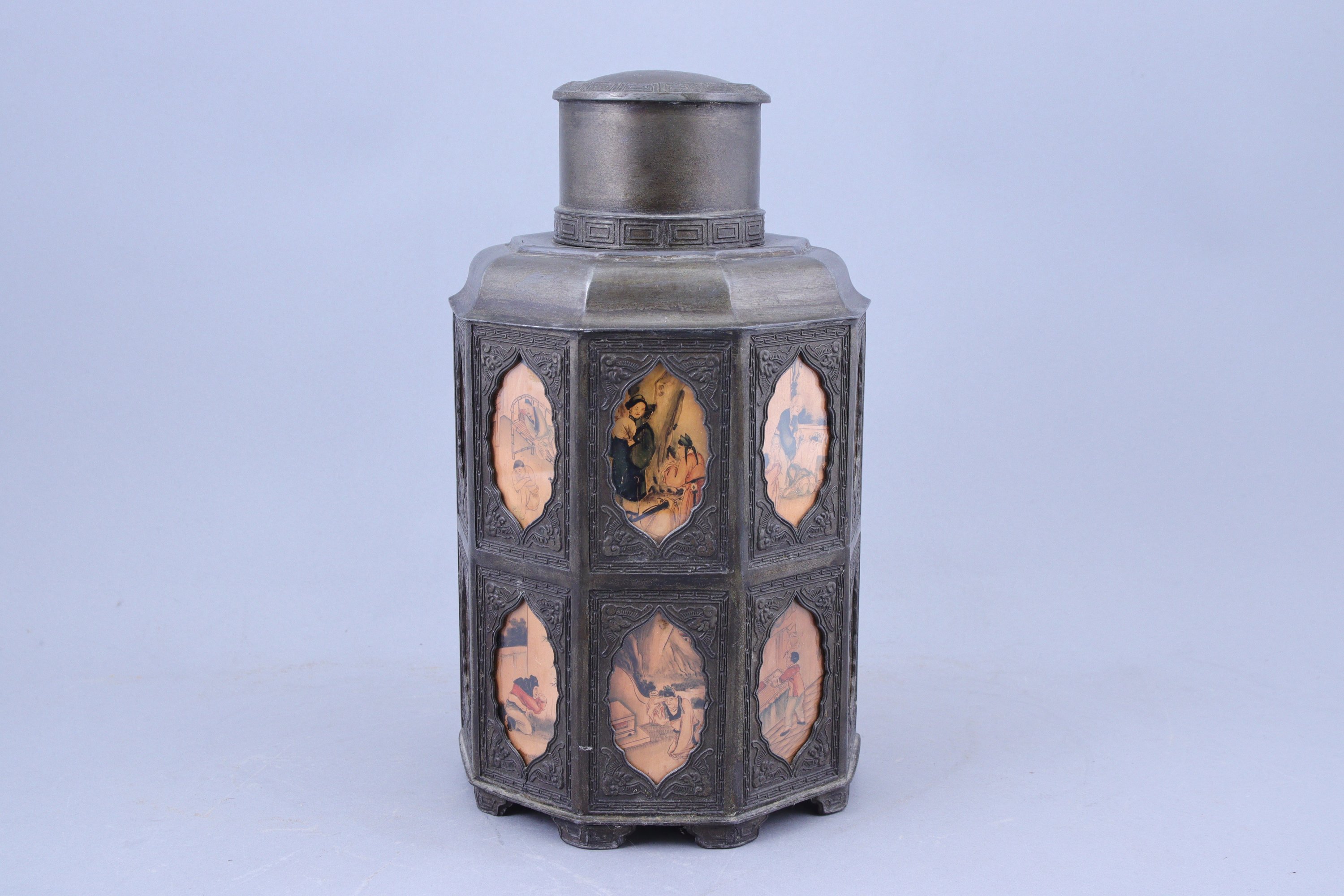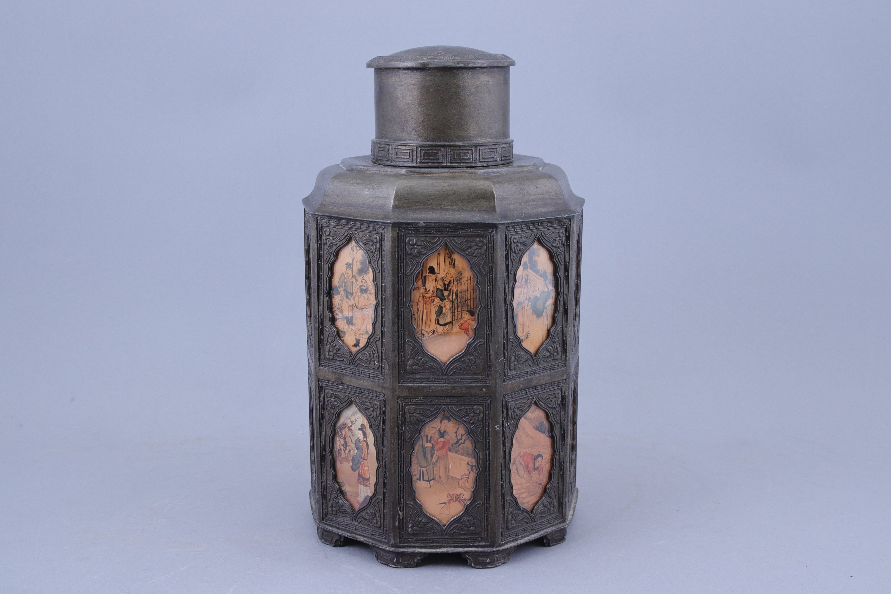 en métal et médaillons de fixés-sous-verre de lettrés, enfants et femmes de cour.