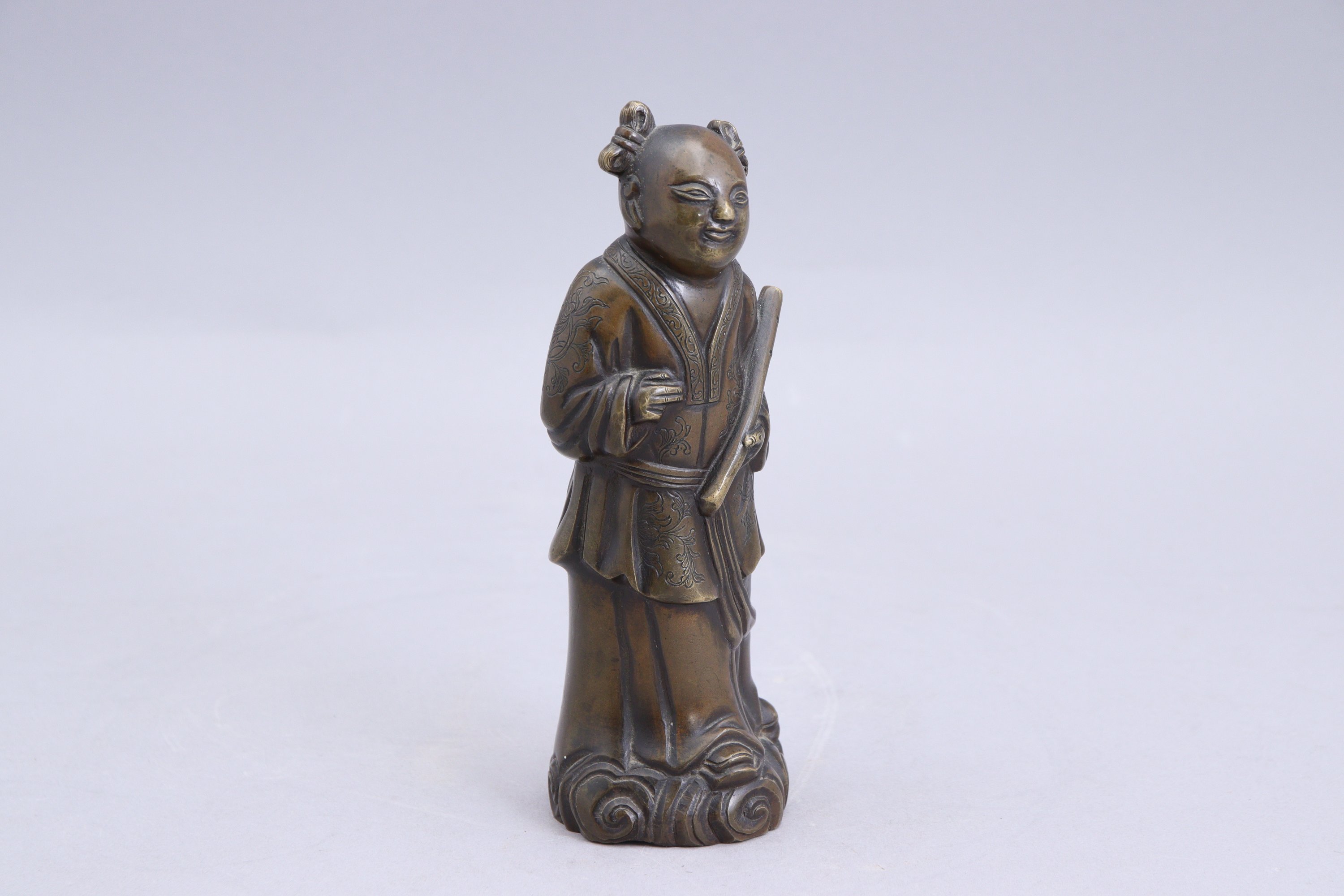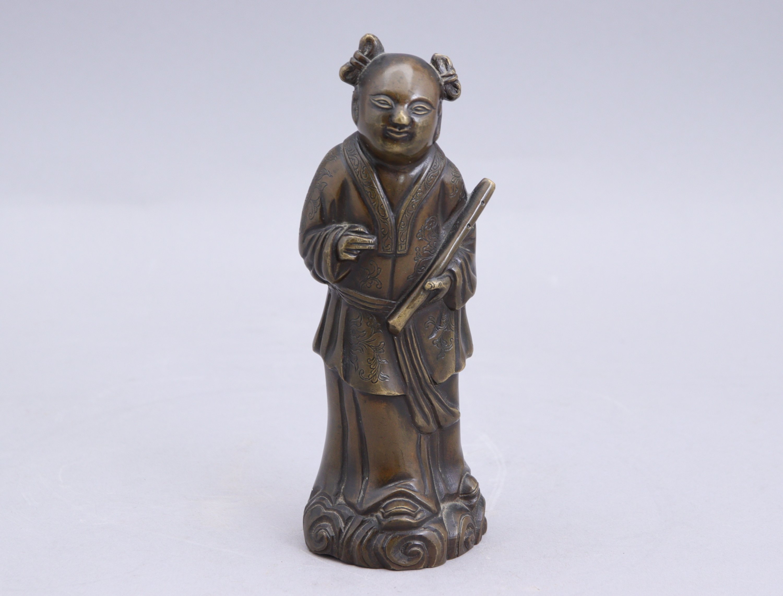 Joint: Chine, XXe siècle. Une statuette d'enfant debout tenant une flûte. Haut. 17,5 cm.