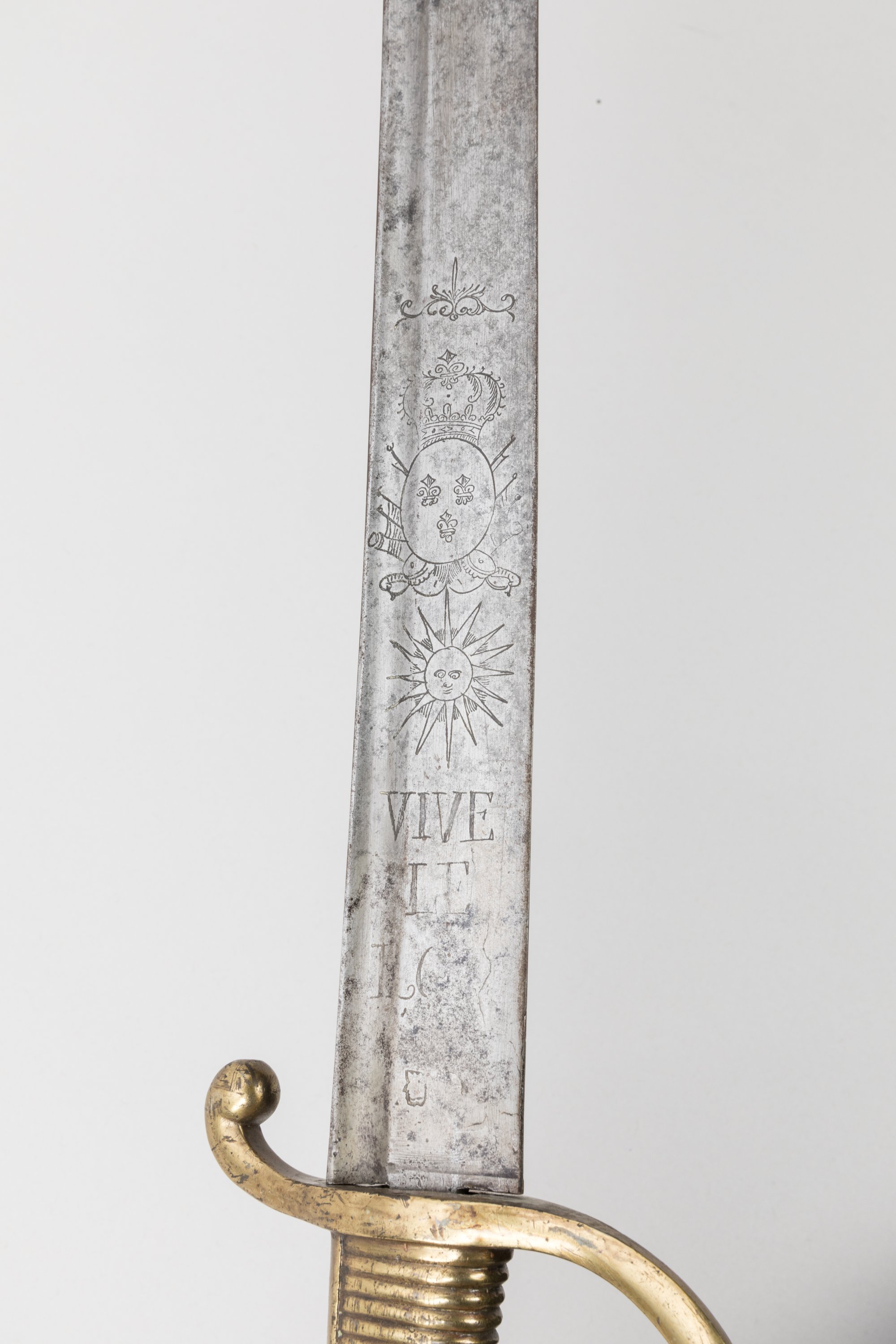 Monture en laiton. Belle lame signée "Cassagnard", marquée "Vive le Roy" avec armes de France et soleil.