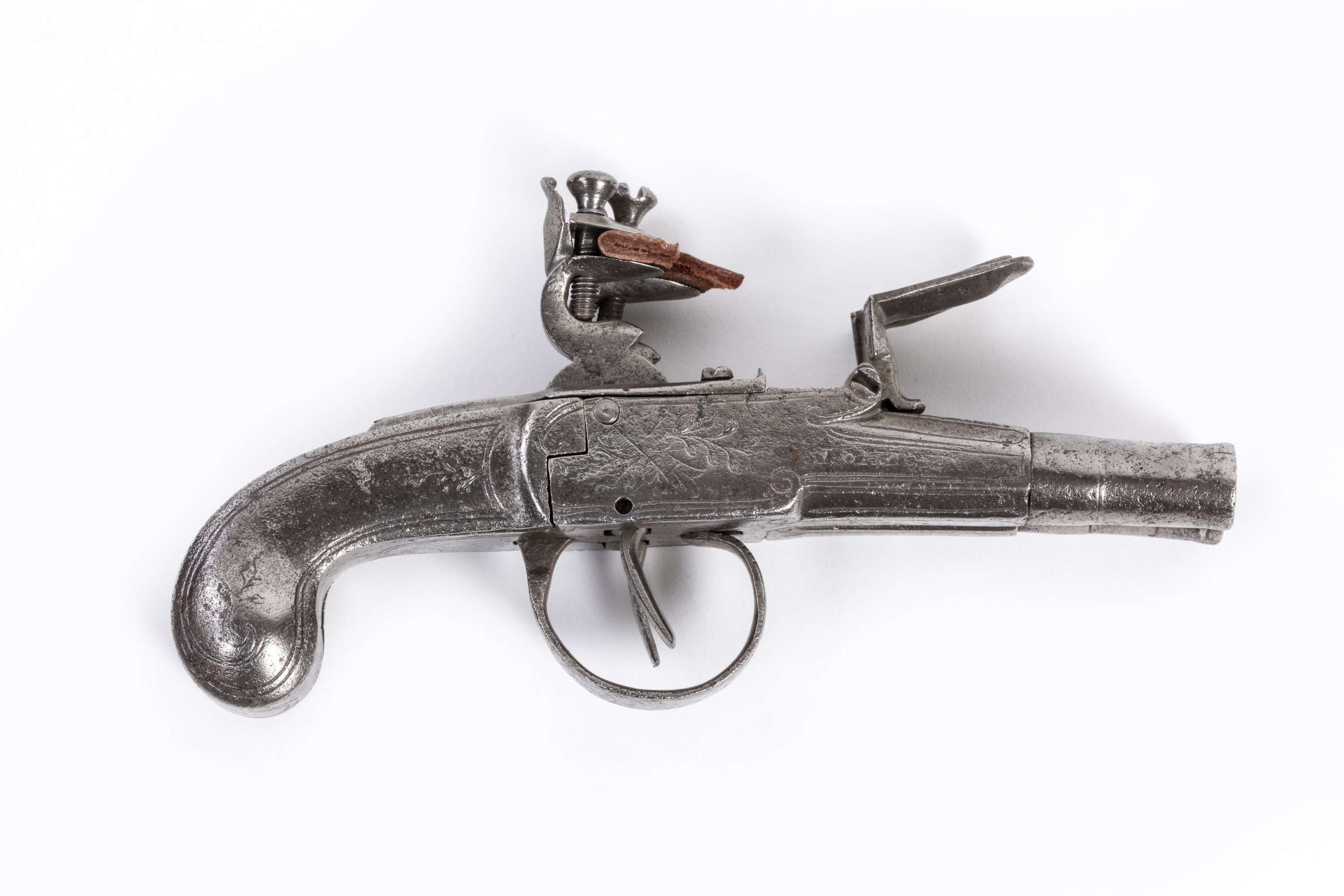 Canons ronds à balles forcées. Coffre gravé « LONDON », queue de culasse frappée 43 . Crosse décorée en suite.