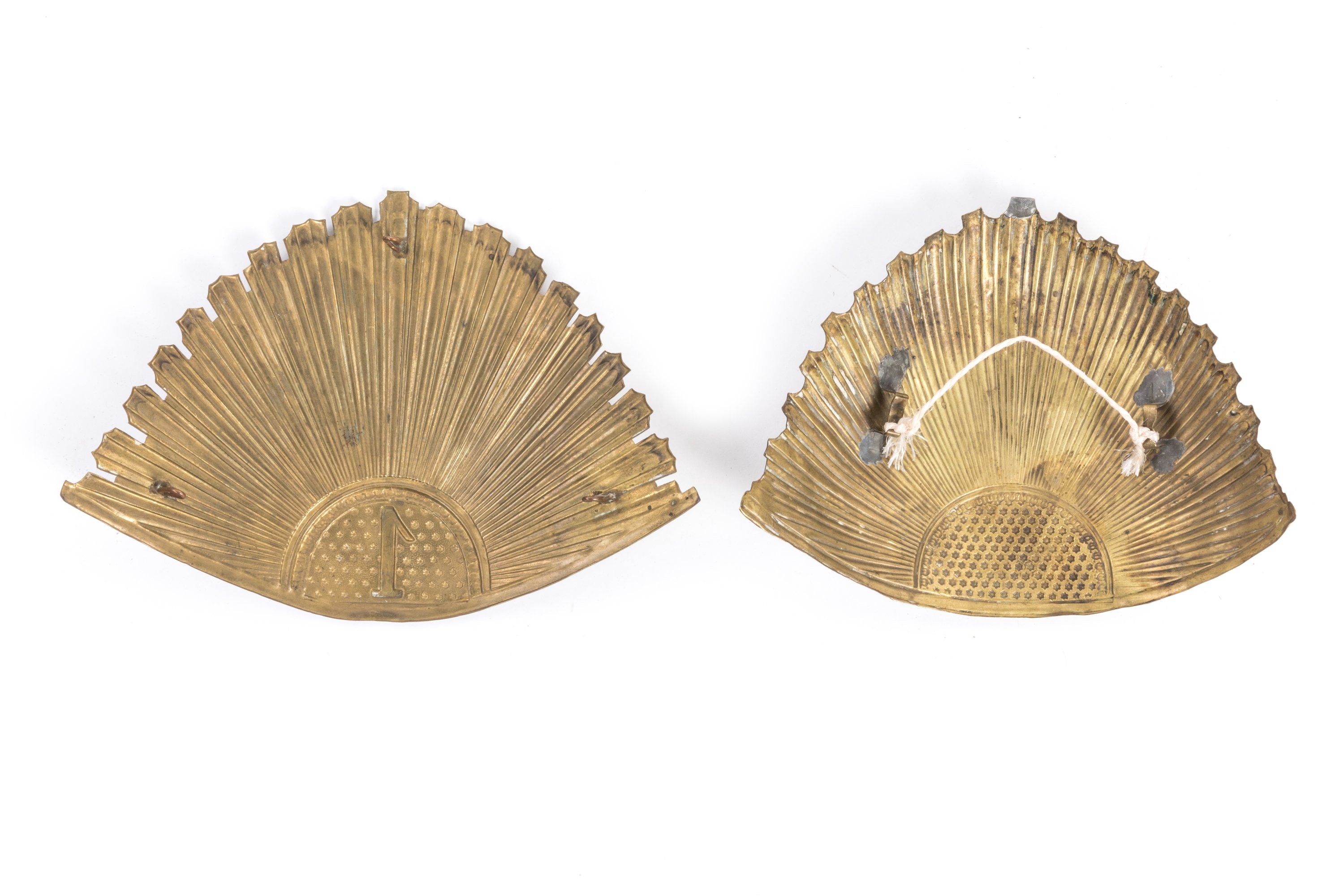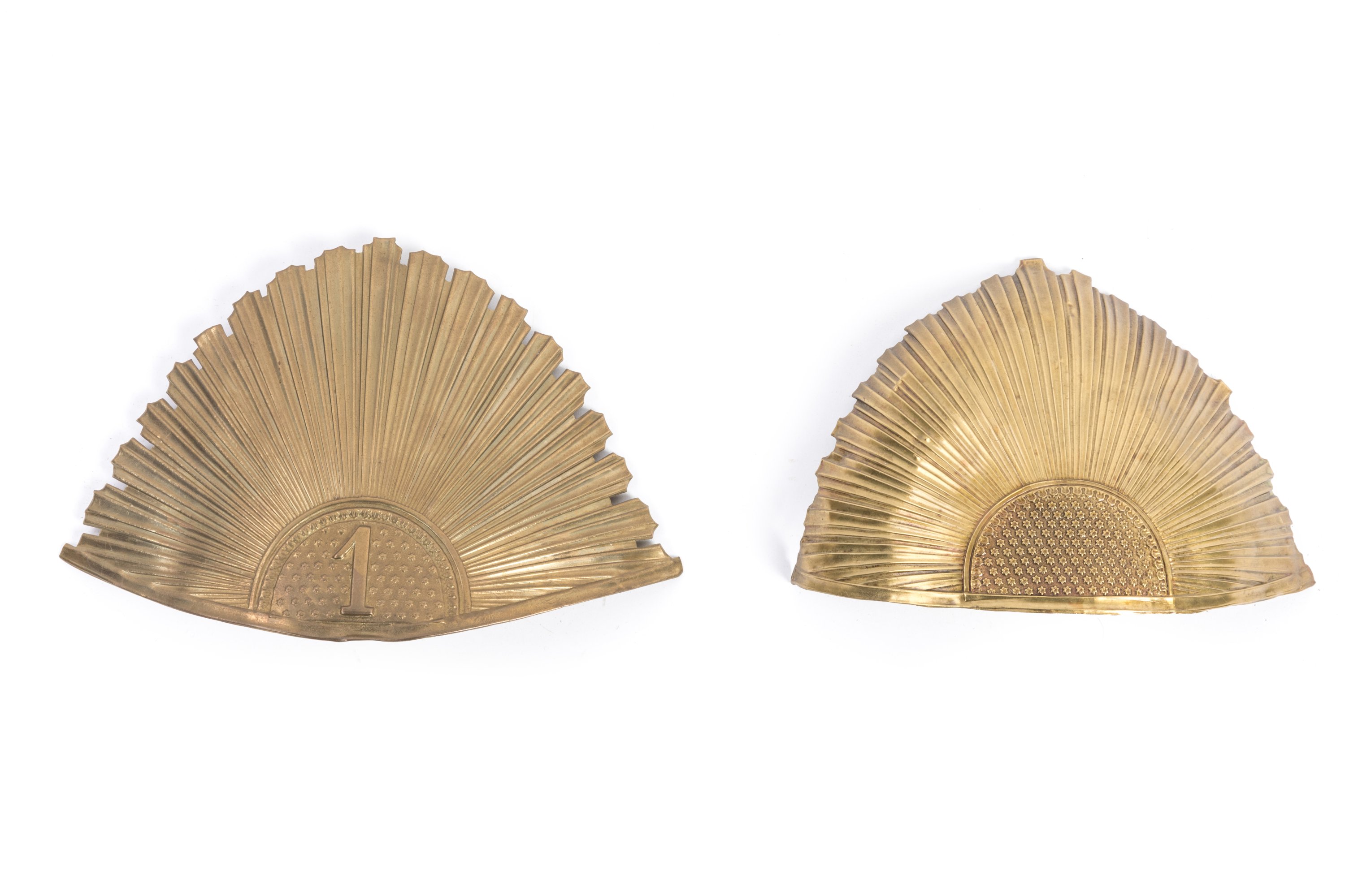 - en laiton, rayonnante, à décor de fleurettes au centre. Sans numéro.