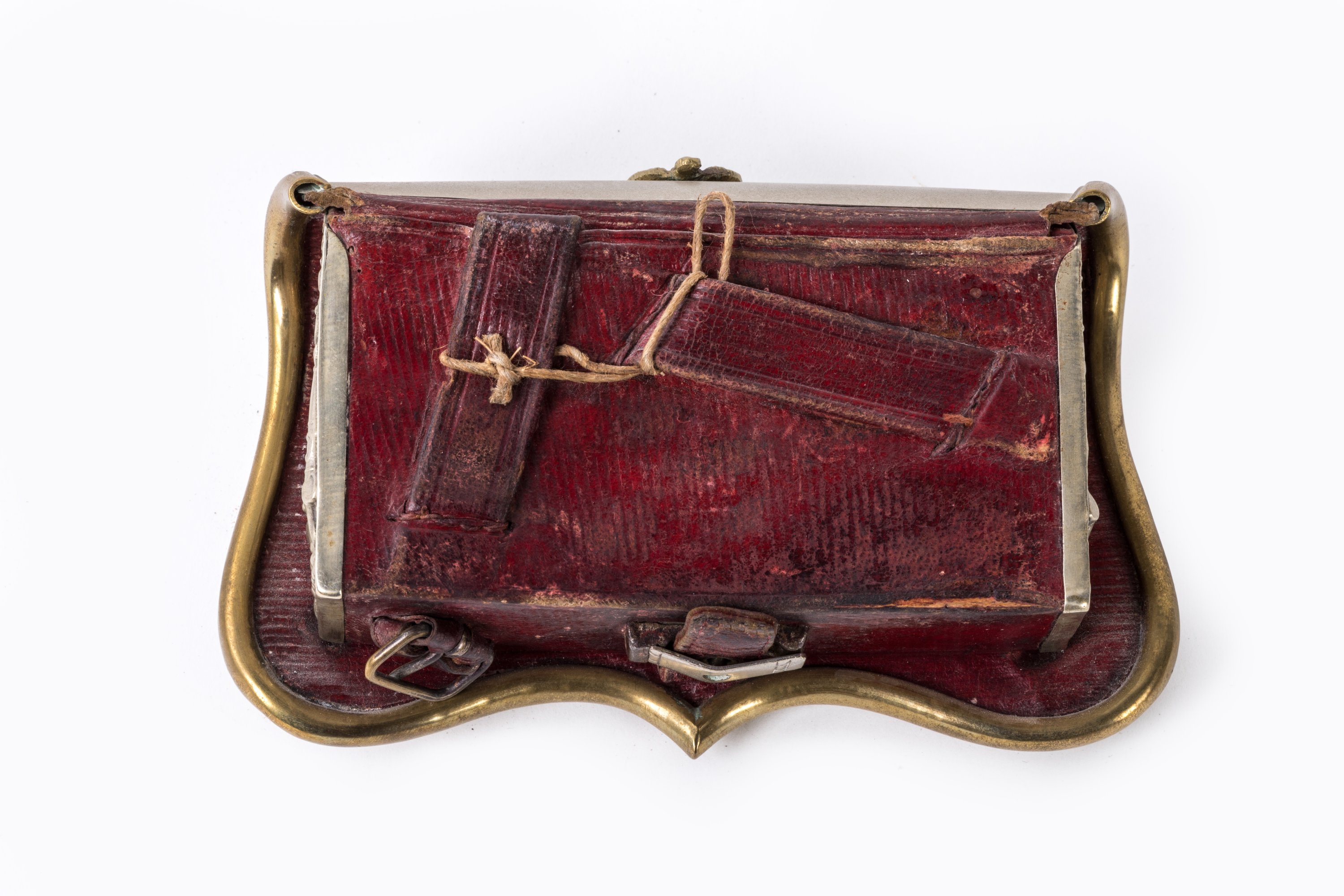 en maroquin rouge, à garnitures en métal argenté et doré, aux armes d'Autriche et au chiffre de François Joseph Ier. Côtés à décor de trophées d’armes.