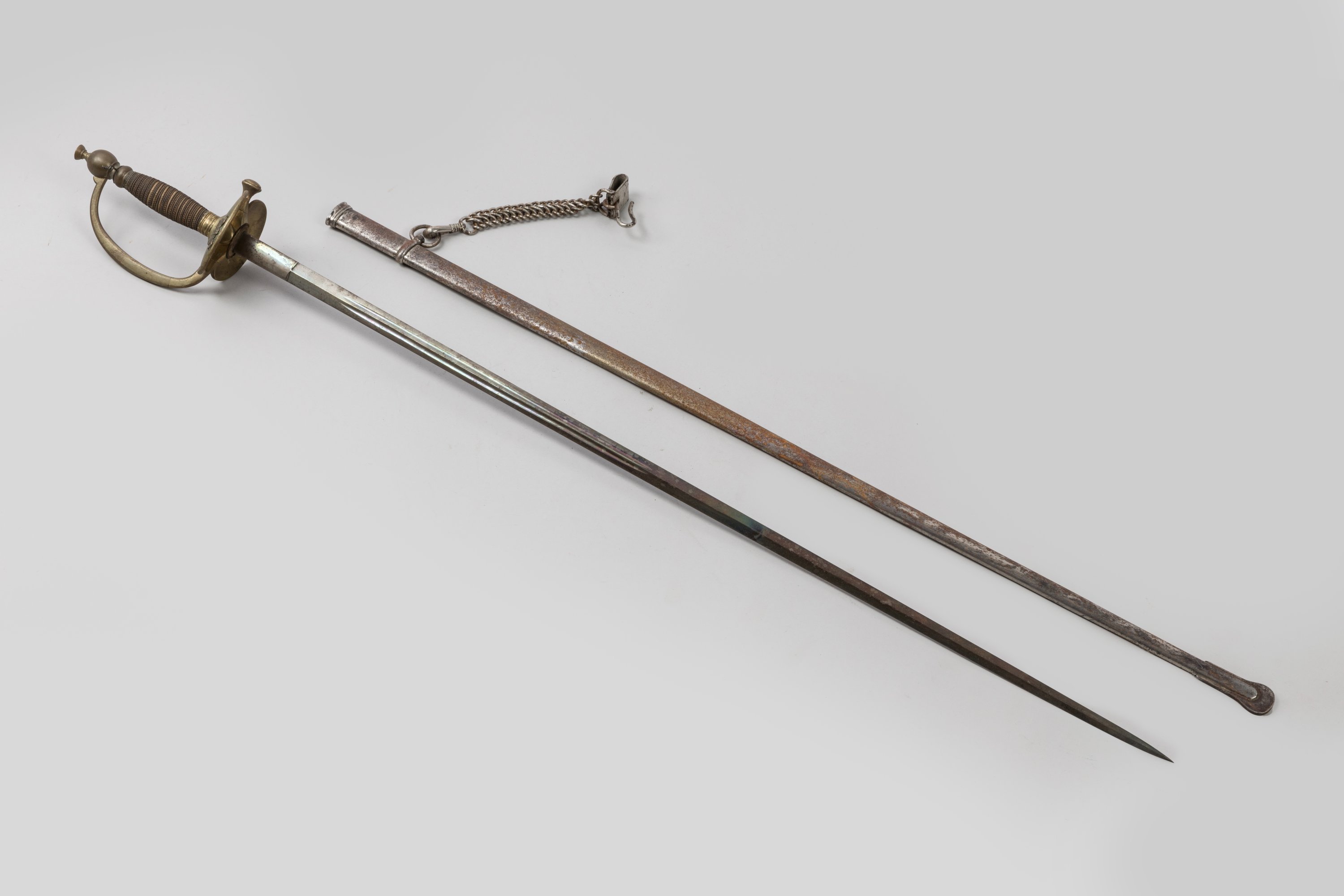 Avec son mousqueton porte-épée à anneaux « gourmette ».