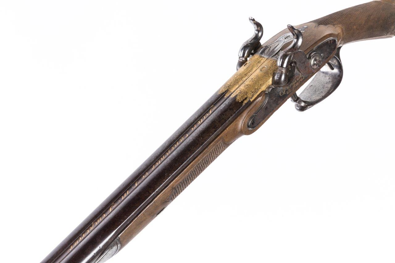 Fusil de chasse double à silex transformé à percussion