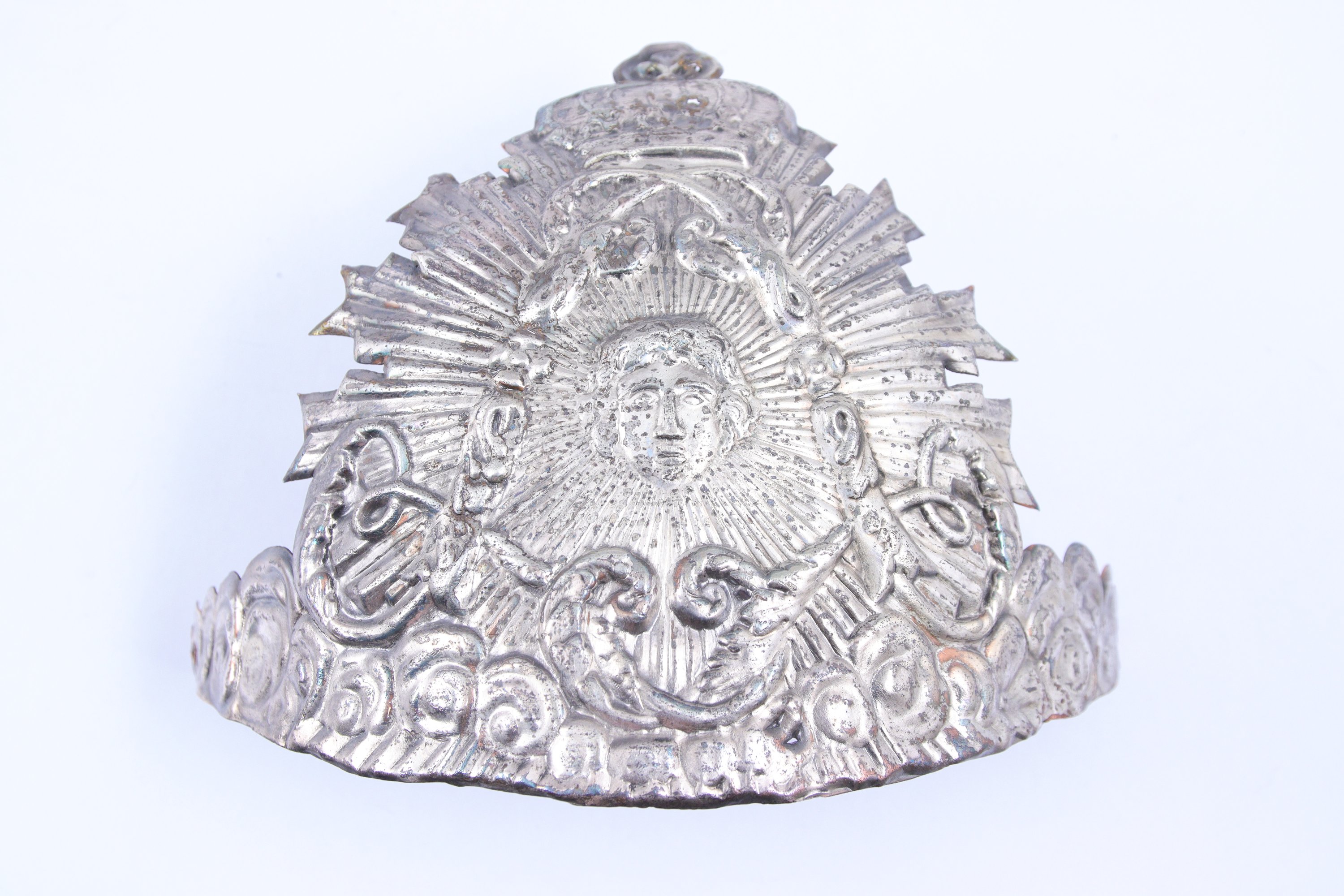- Bandeau de casque de garde du corps 1er modèle. En cuivre argenté. Epoque 1ère Restauration. E.M. (repercée).