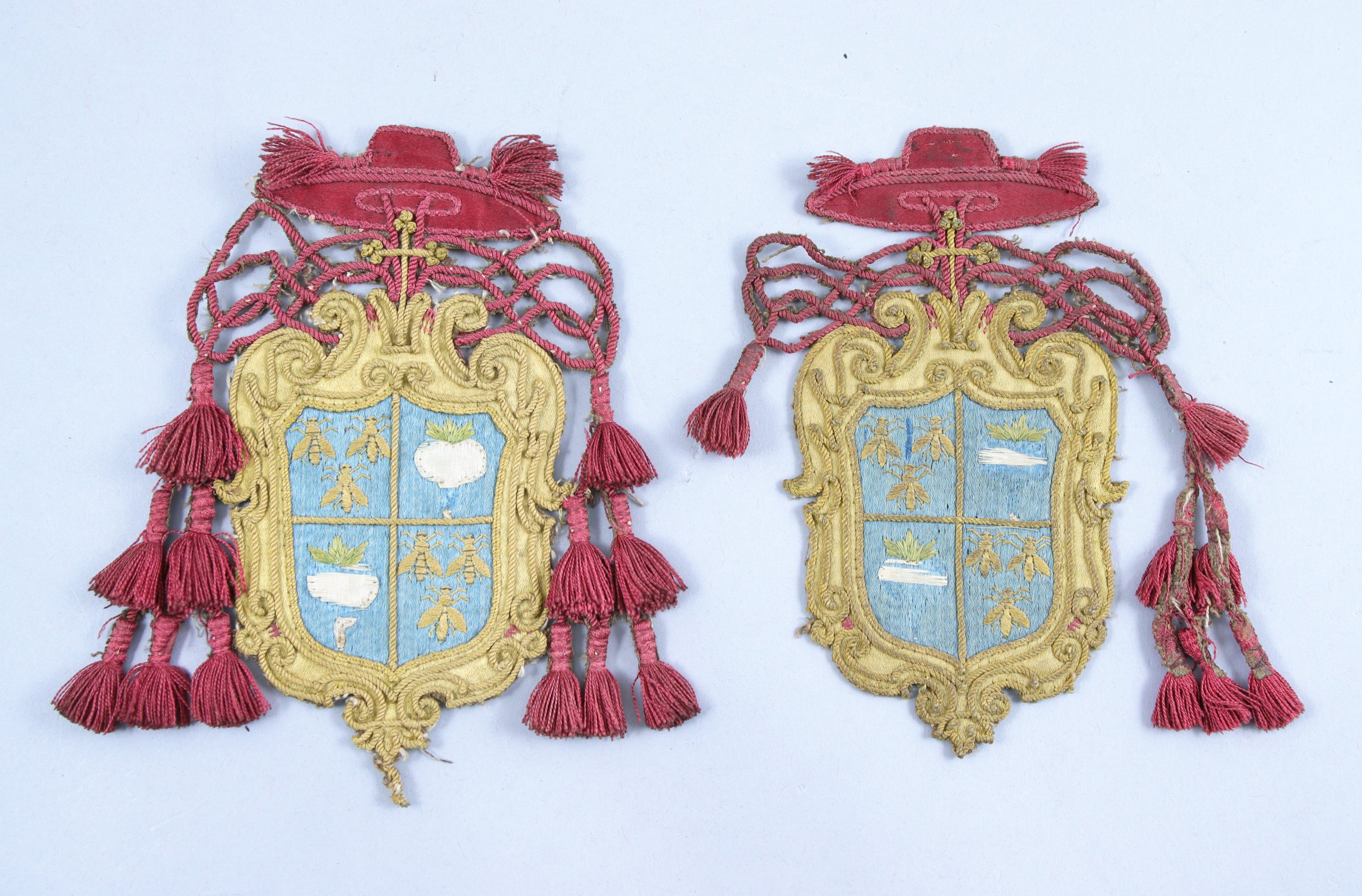 - Deux petits écus brodés aux armes du Cardinal Francesco Angelo Rapaccioli (1608-1657).