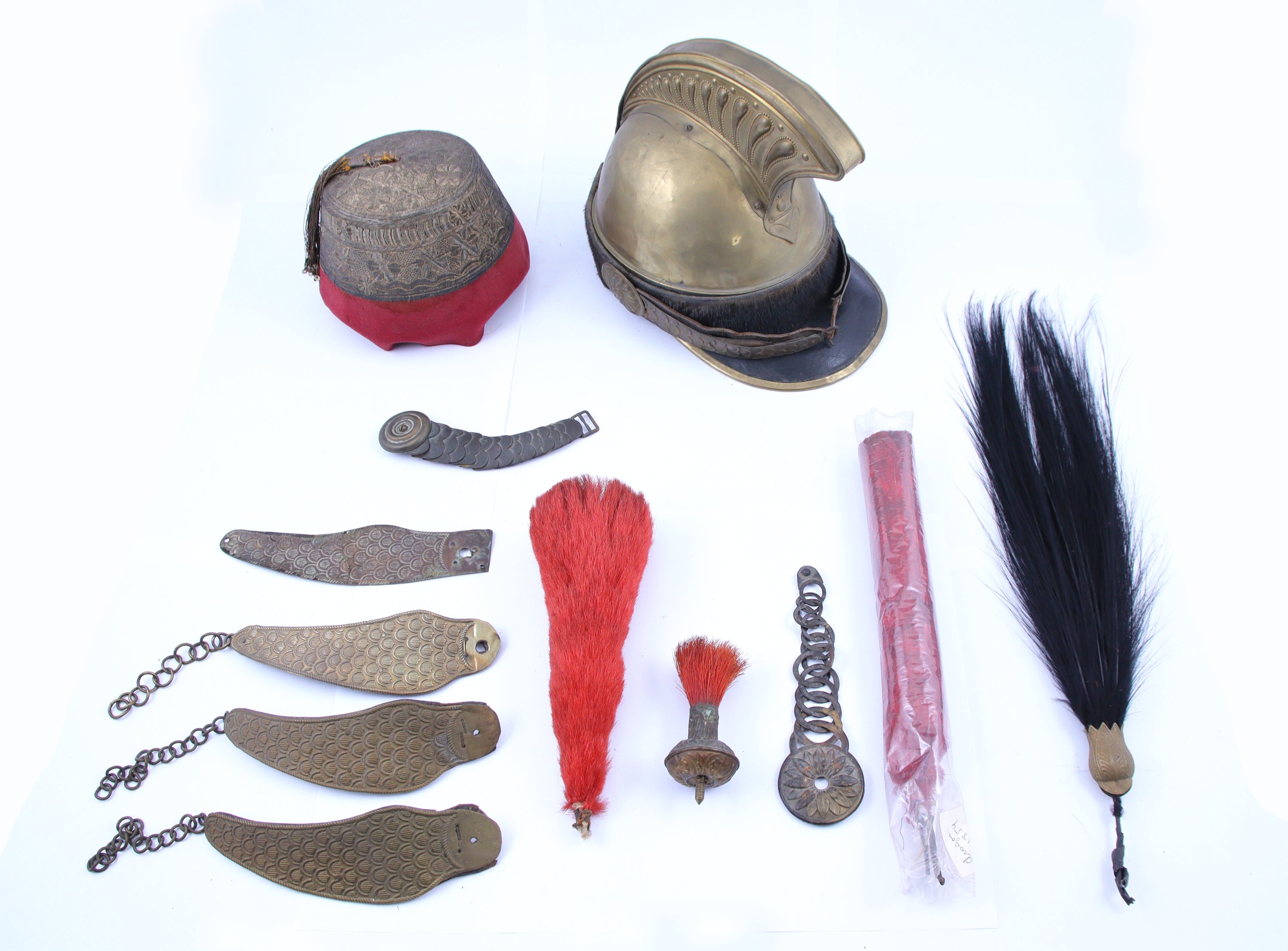 - Coiffe intérieure pour casque à cimier d’officier, en cuir décoré au petit fer ;