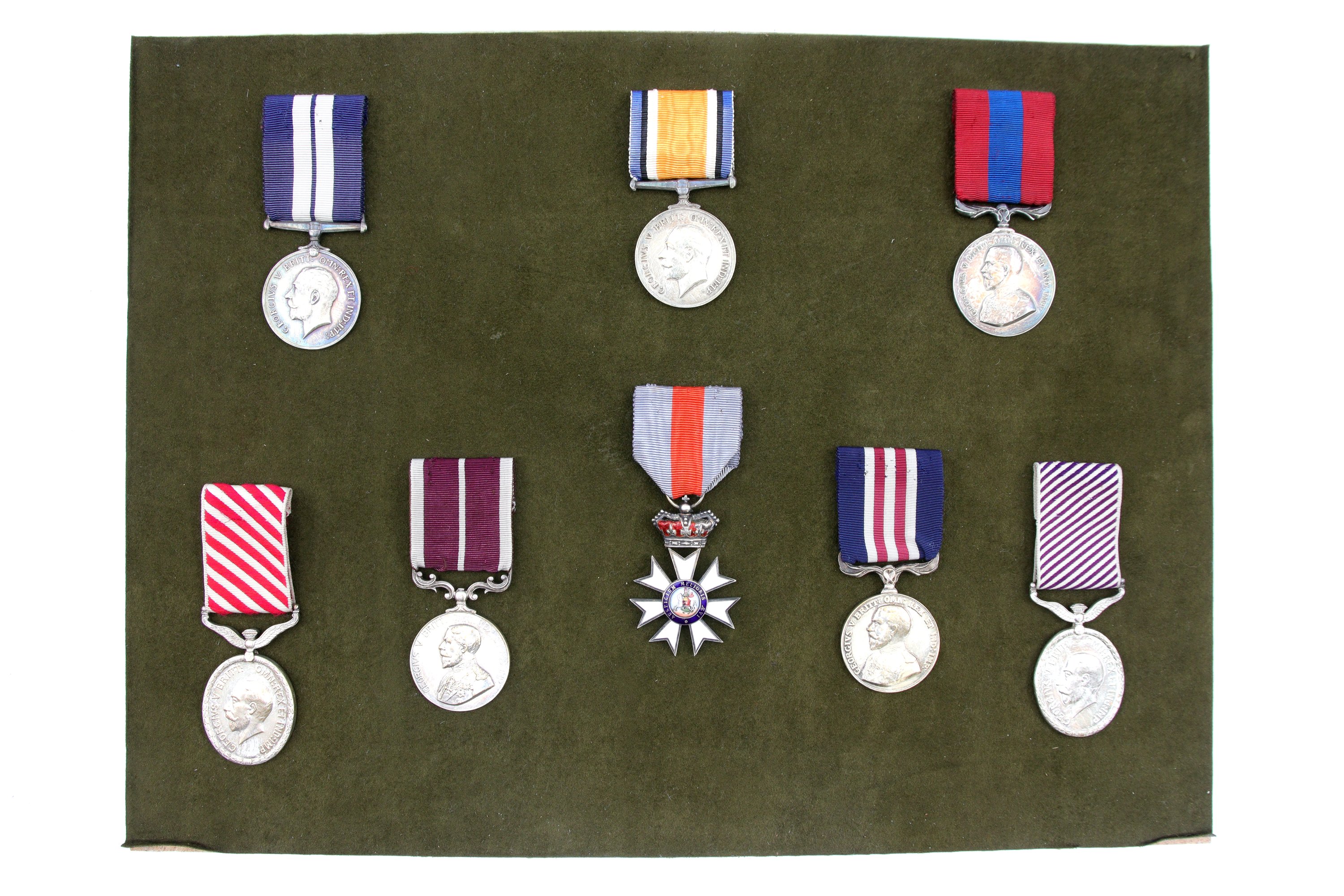 - Sept de fabrication tardive, en bronze argenté « 14-18 MEDAL », « FOR DISTINGUISHED CONDUCT IN THE FIELD, FOR COURAGE, FOR MERITORIOUS SERVICE". Rubans.