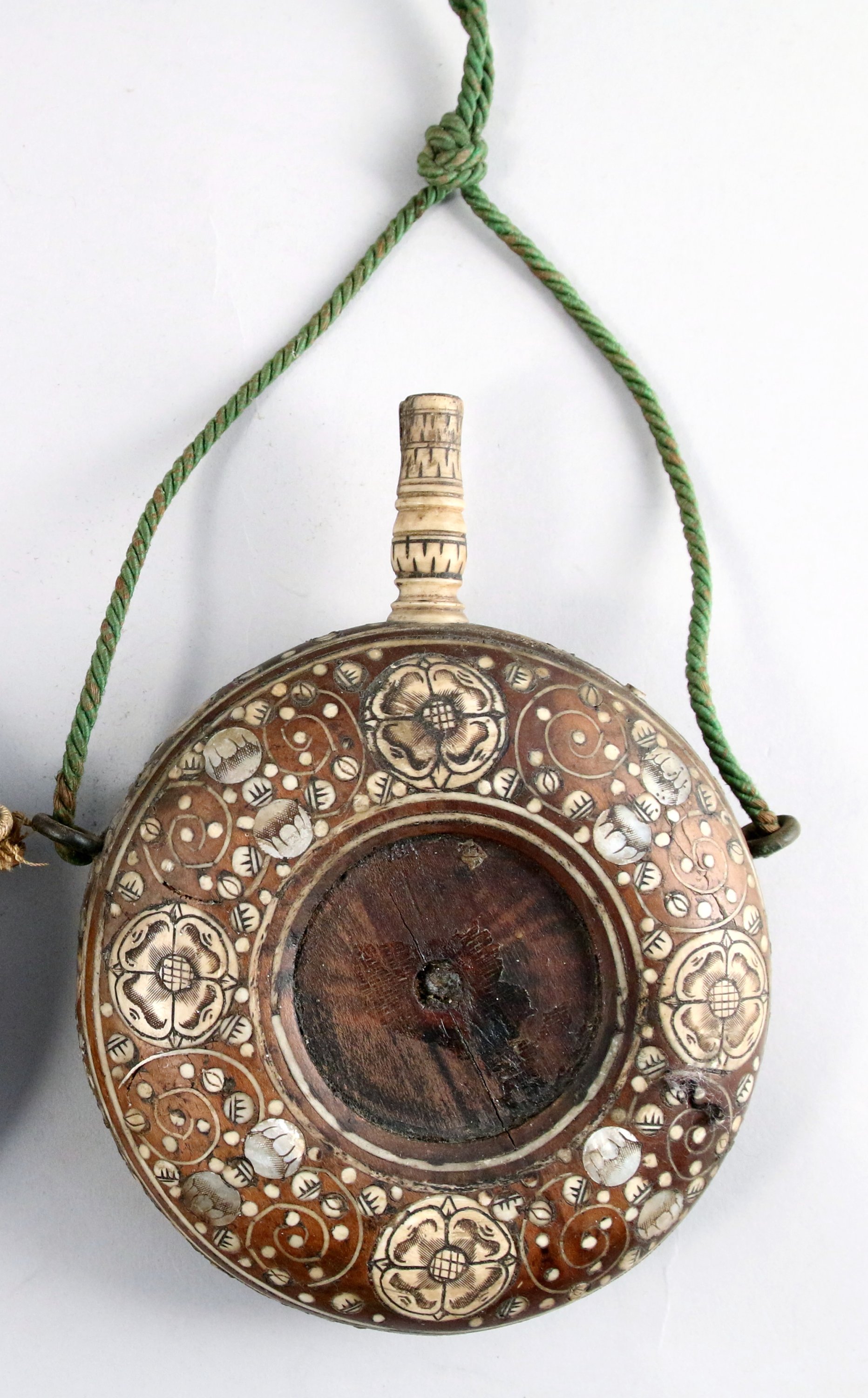de forme circulaire, à décor d'incrustations d'os gravé et de nacre à motifs quadrifeuilles et rinceaux.