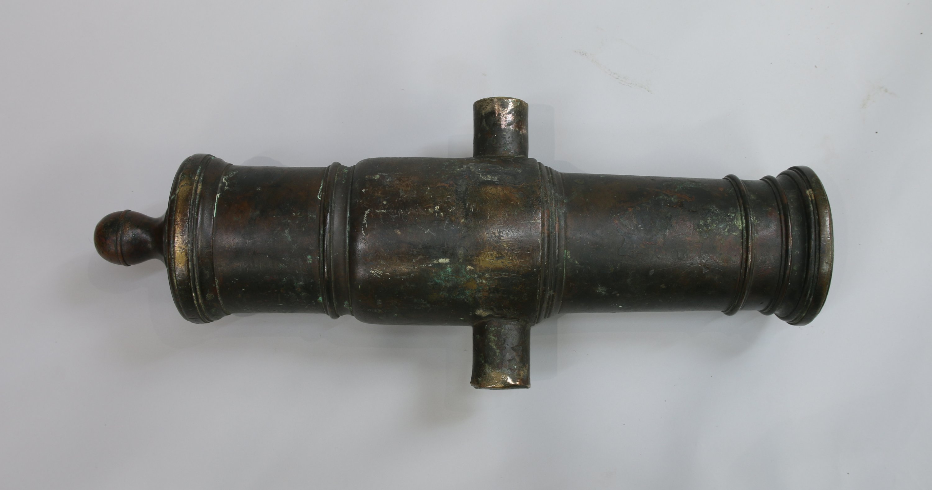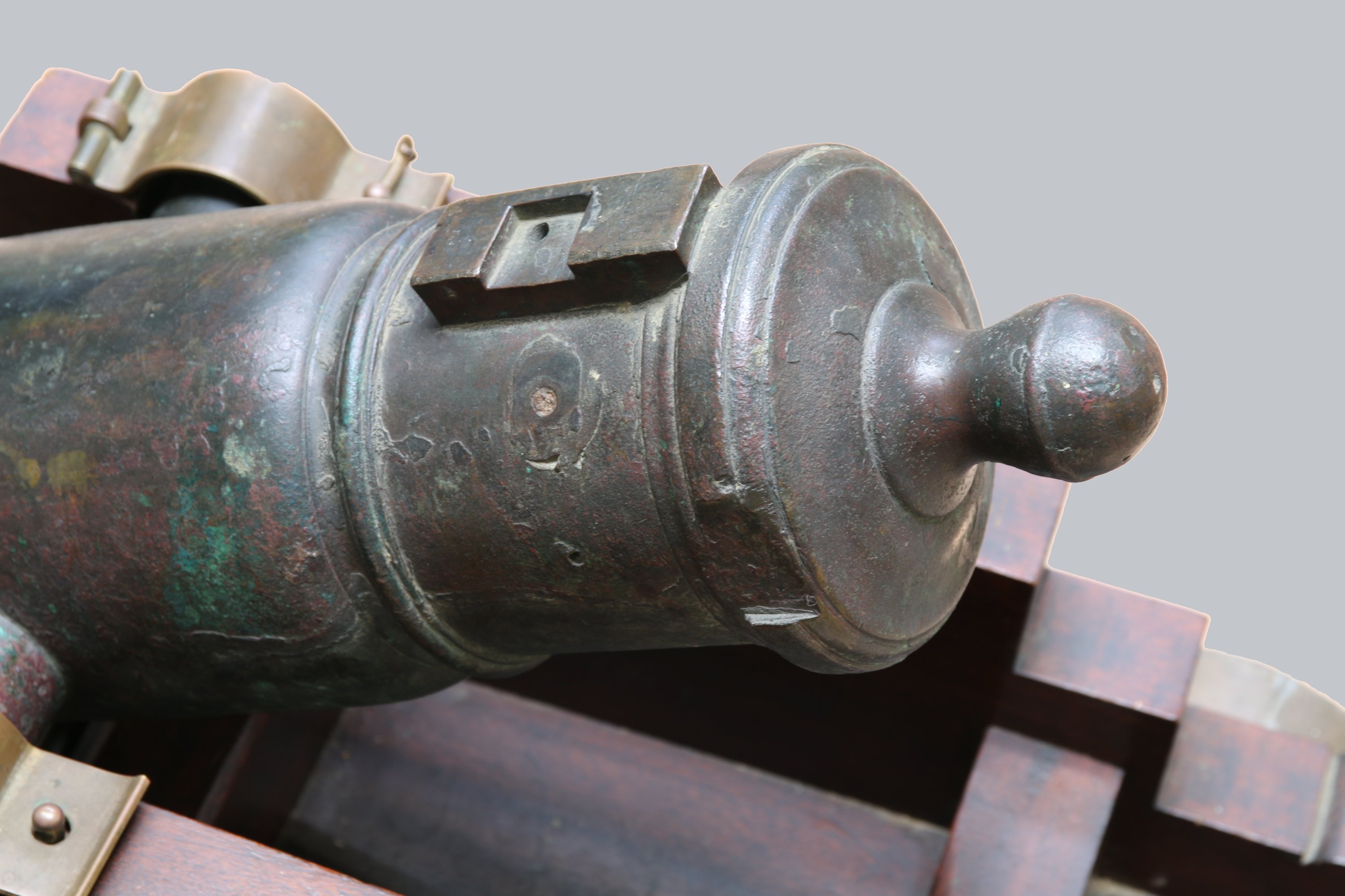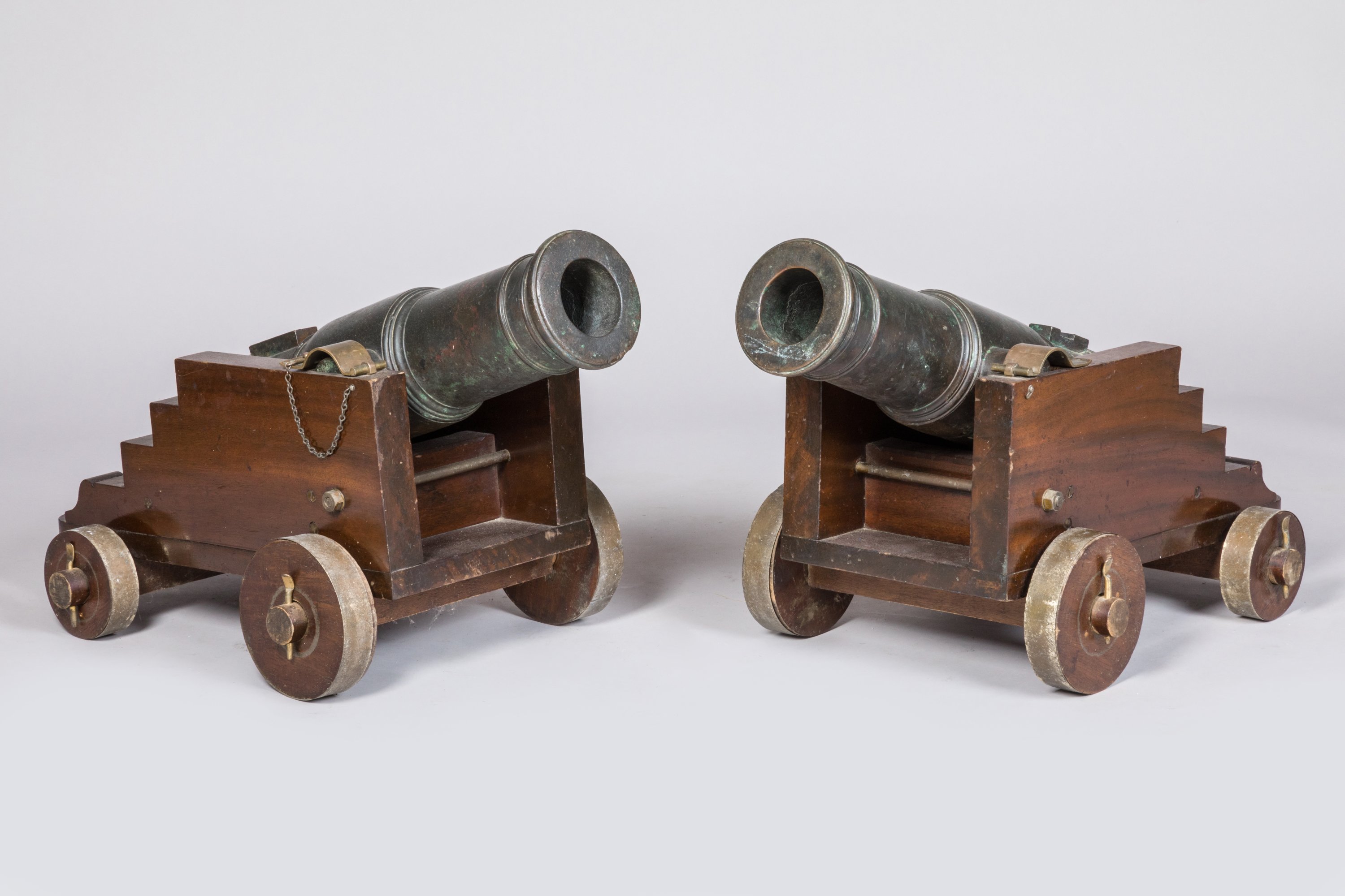 Montés sur des affûts postérieurs, quatre roues en bois cerclées de cuivre.