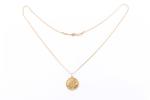 Présenté dans une monture en or jaune 750 millièmes et chaîne à mailles serpent.
