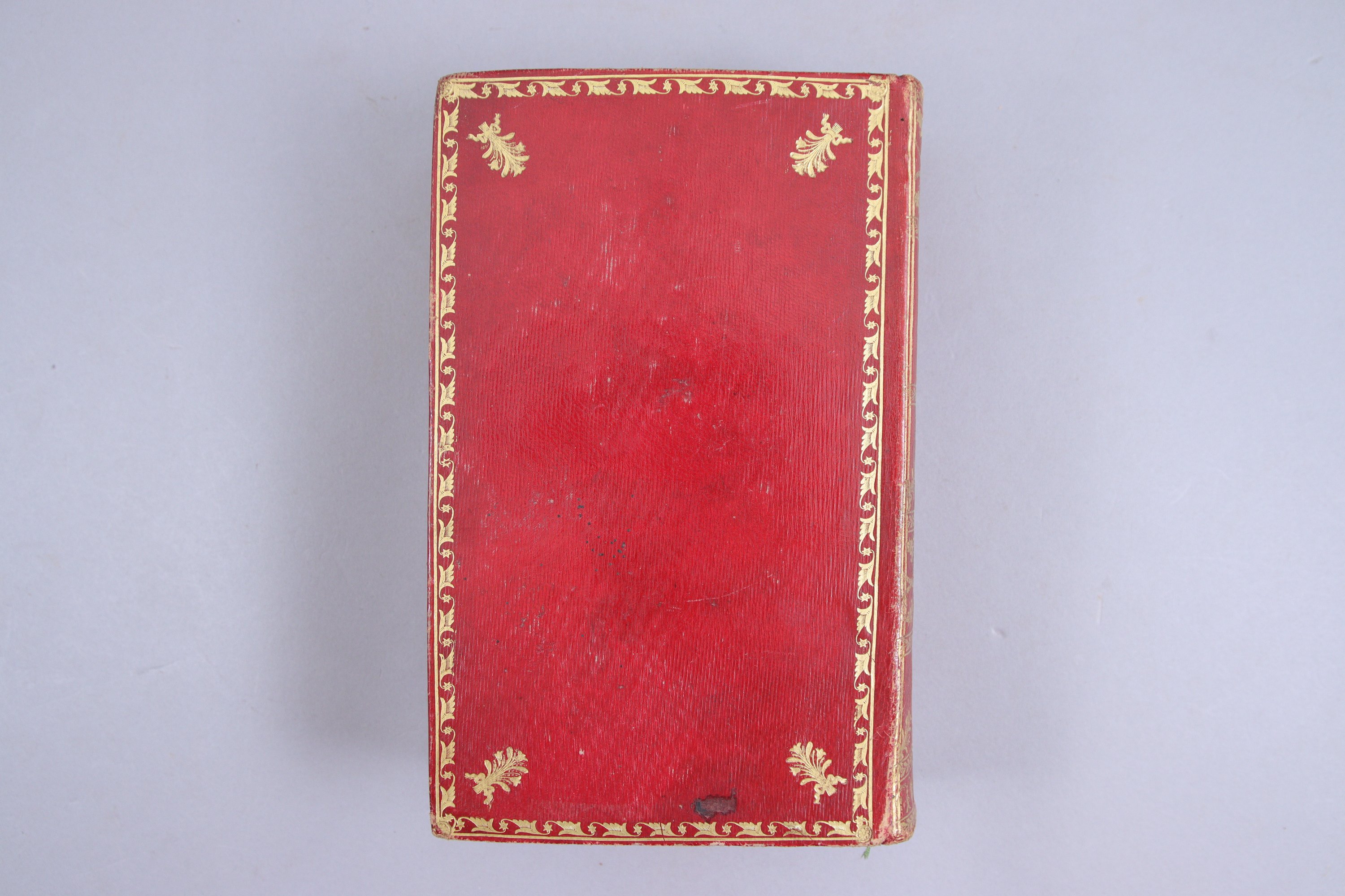 Fort in-8, 962 pages. Pleine basane maroquinée rouge, roulette d'encadrement à décor floral, fleurons d'angle ; dos très orné avec répétition de fleurs de lys et de couronnes royales. Toutes tranches dorées.