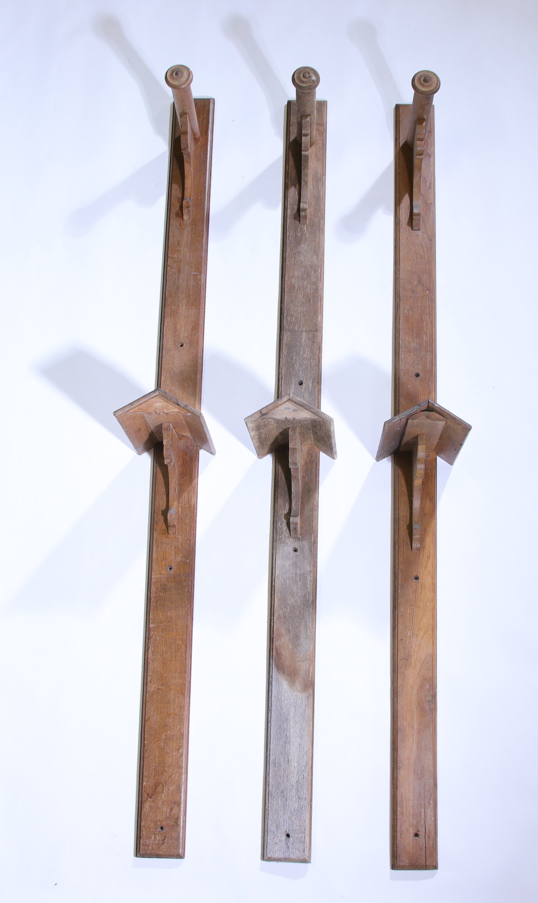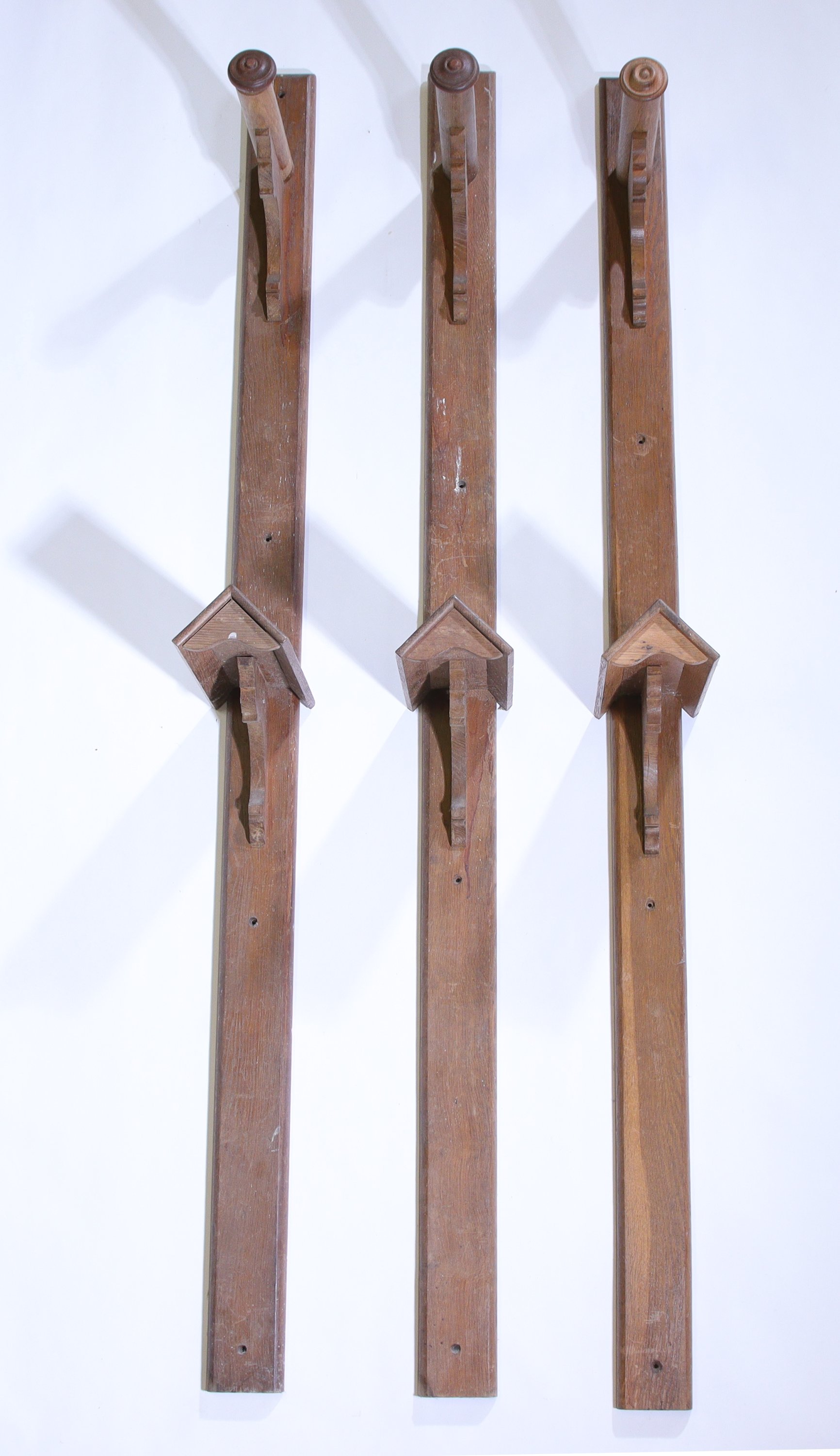 en bois naturel, dont cinq de grande taille. Au centre du socle, le porte-selle en forme de toit, et dans la partie supérieure un point d'accroche pour le harnachement.
