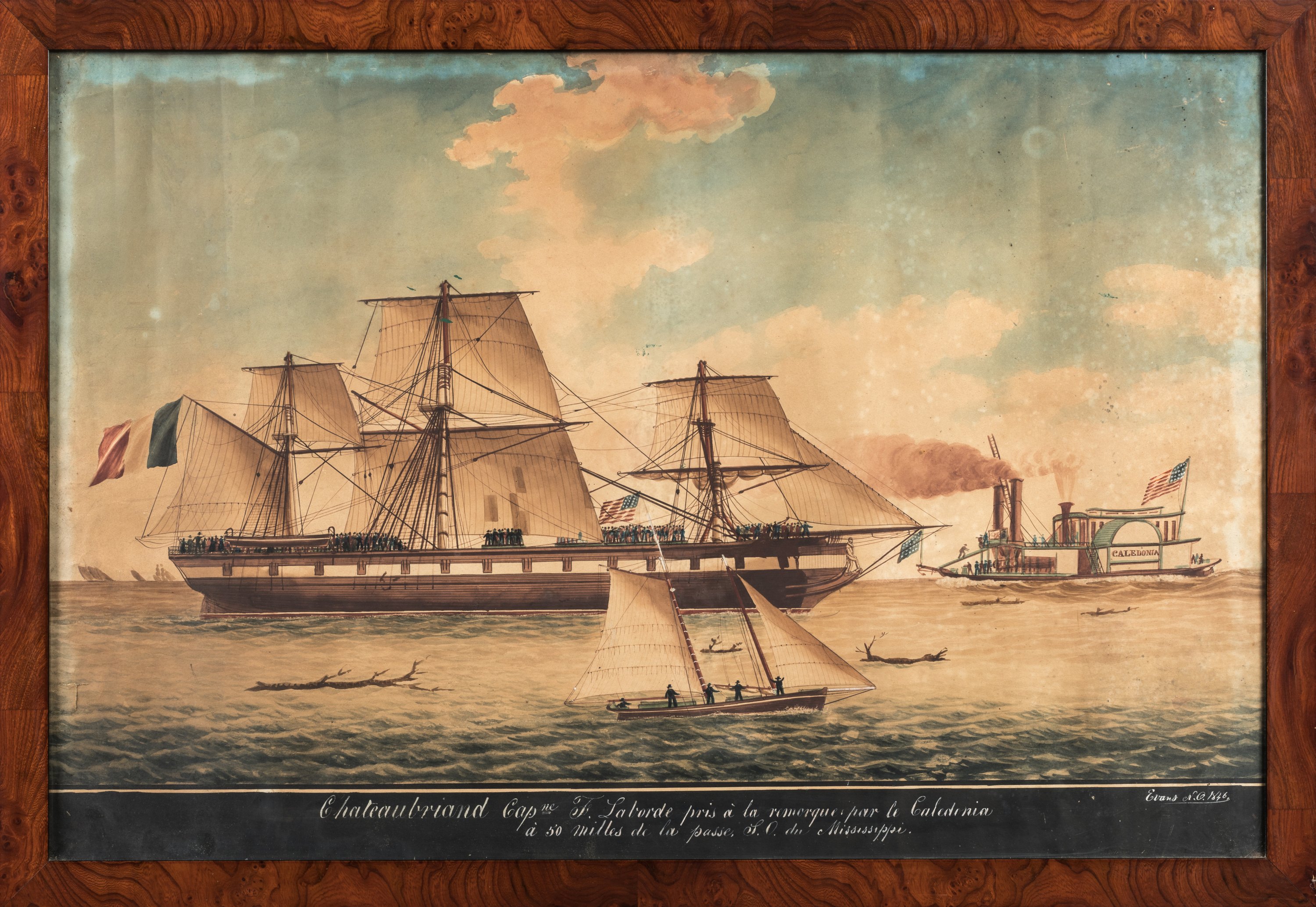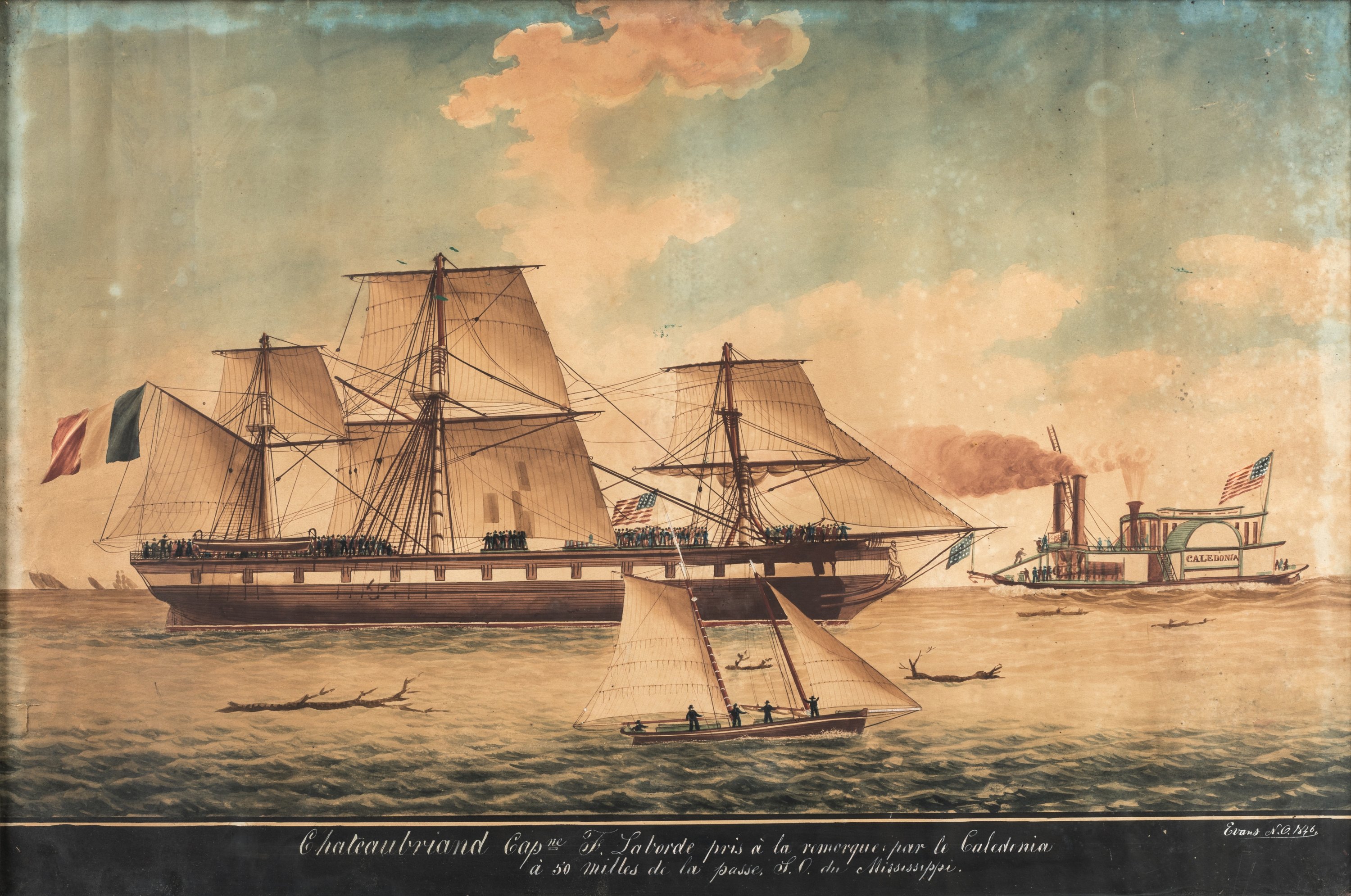 - "Chateaubriand Capne F. Laborde pris à la remorque par le Caledonia à 50 miles de la passe SO du Mississipi", signé "Evans", située "NO" pour New Orleans et datée "1846".