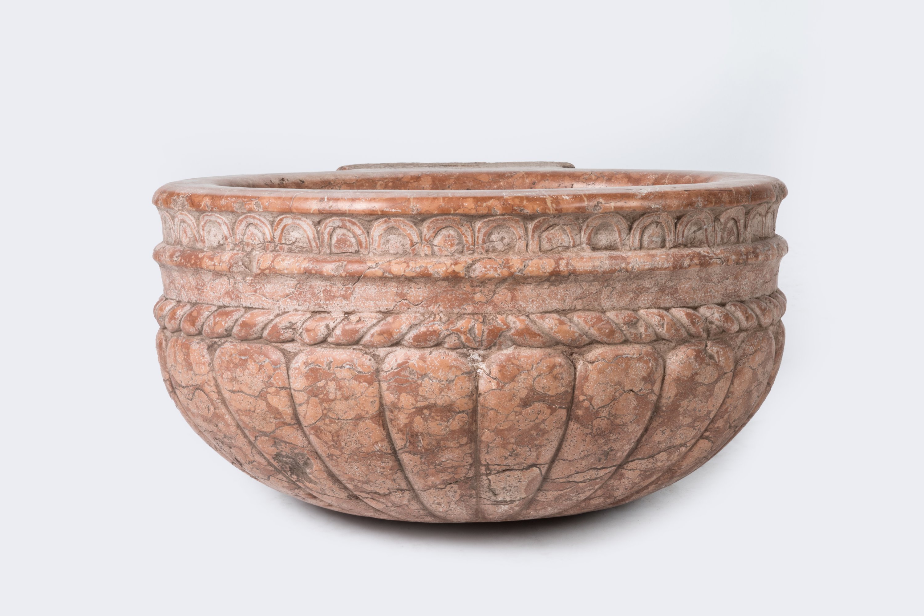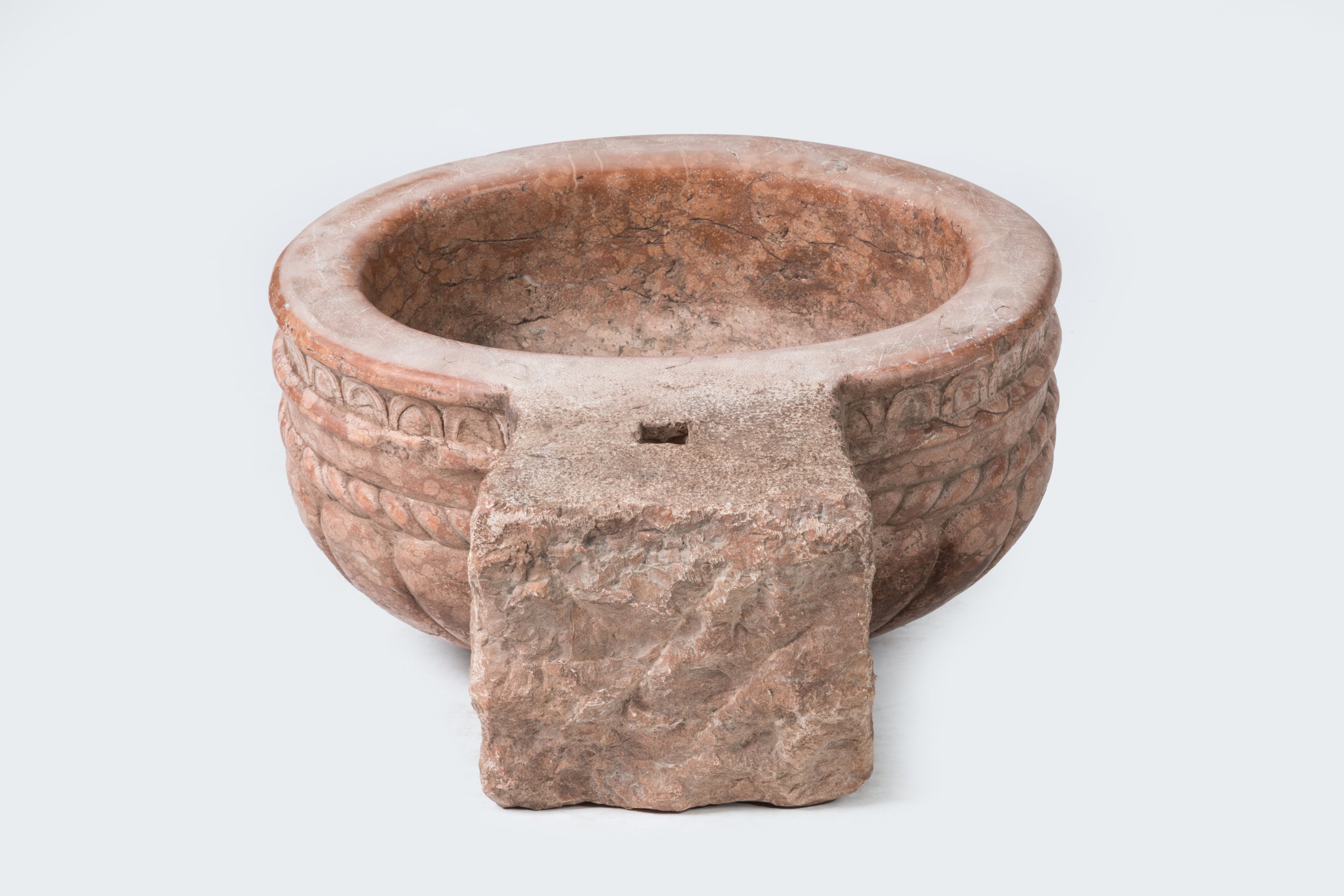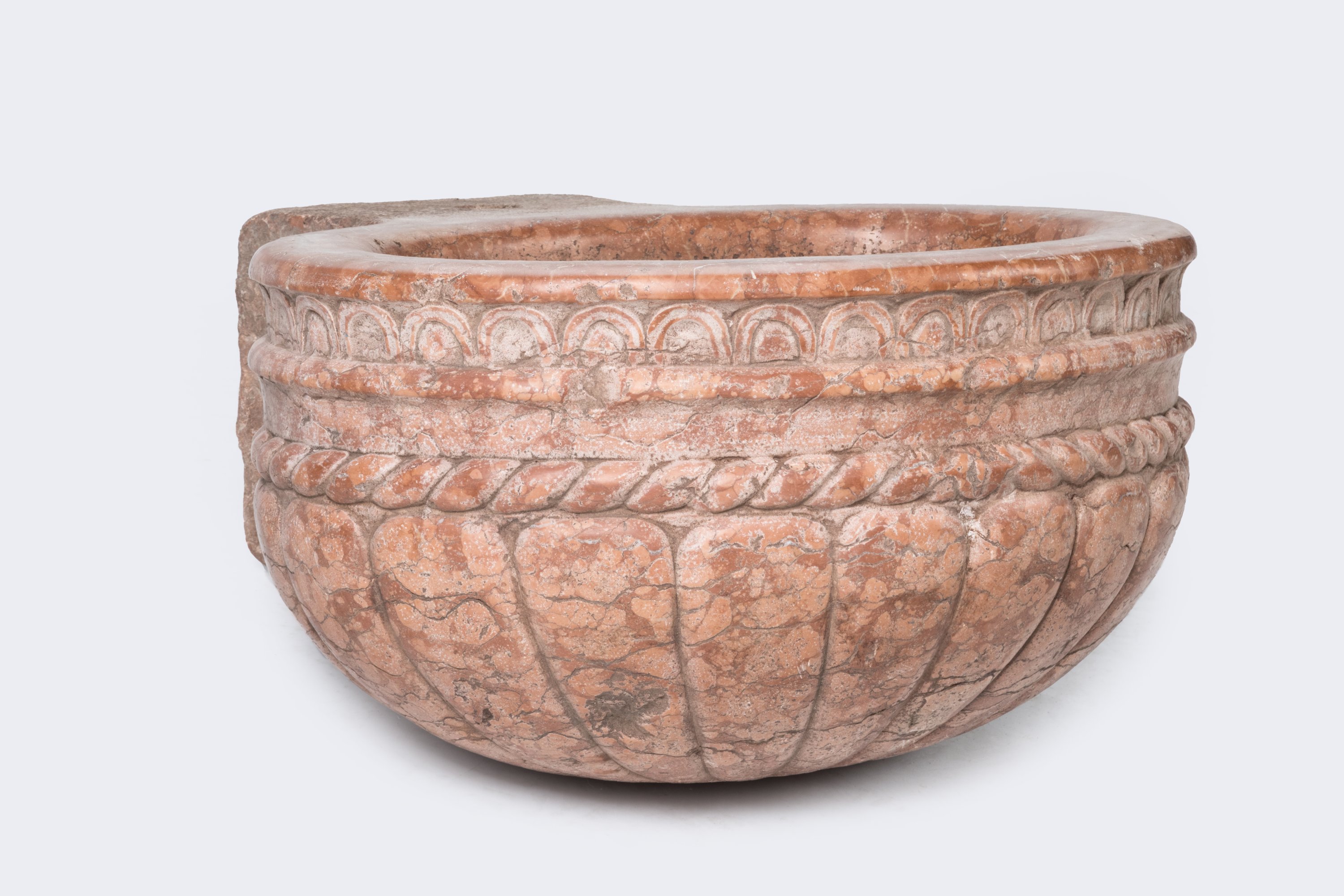 en marbre de Vérone, au culot godronné et le bord souligné d’une frise d’oves.