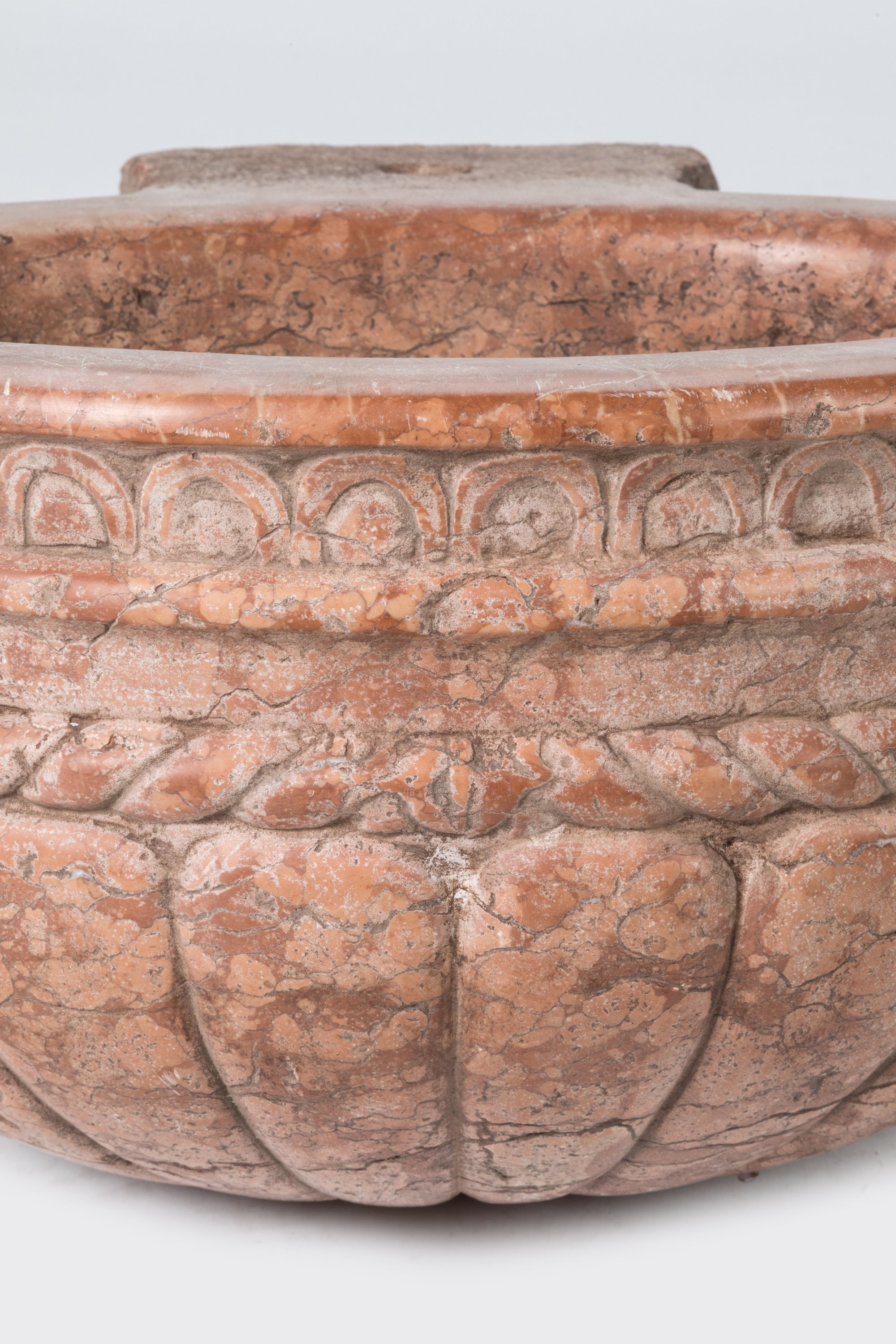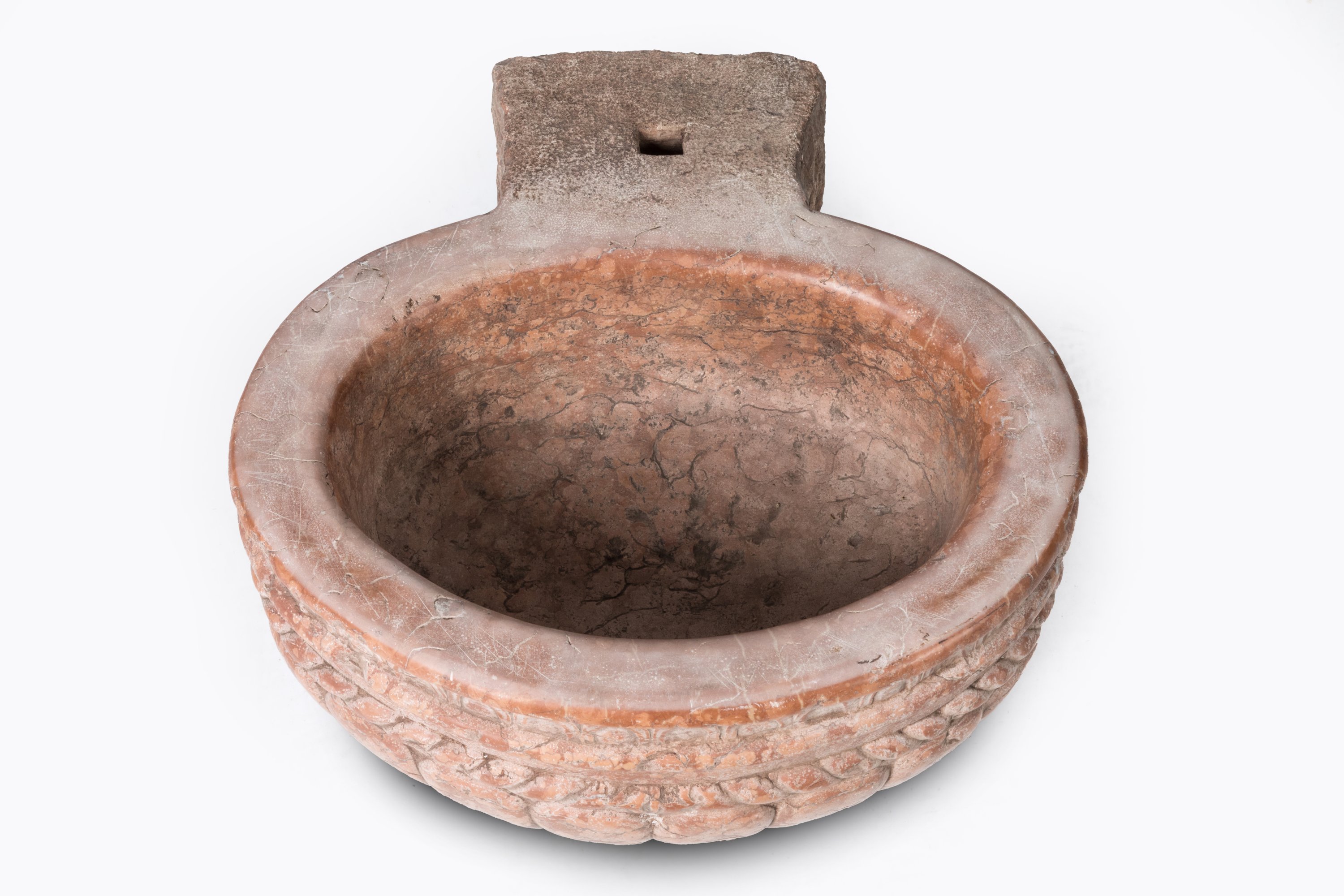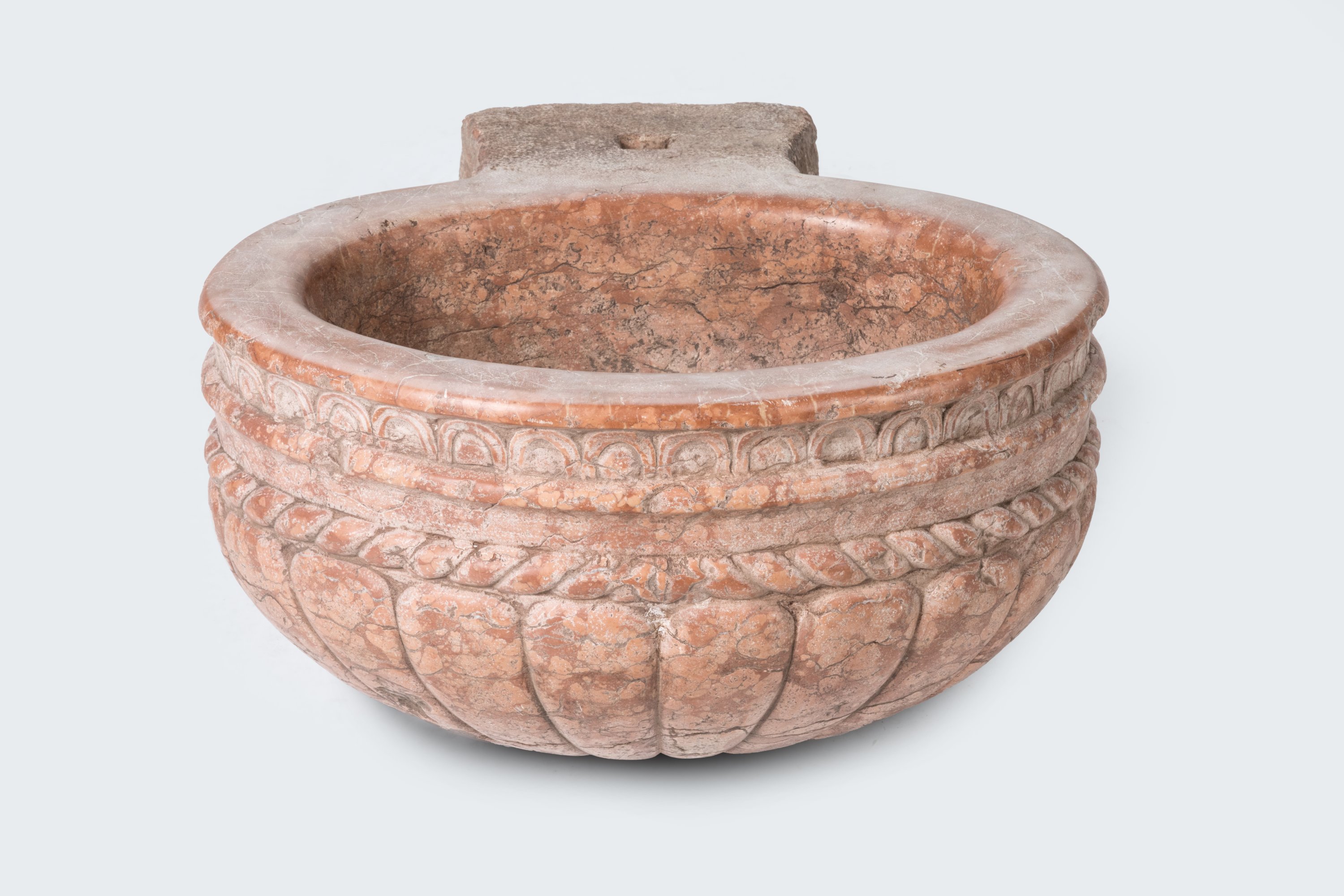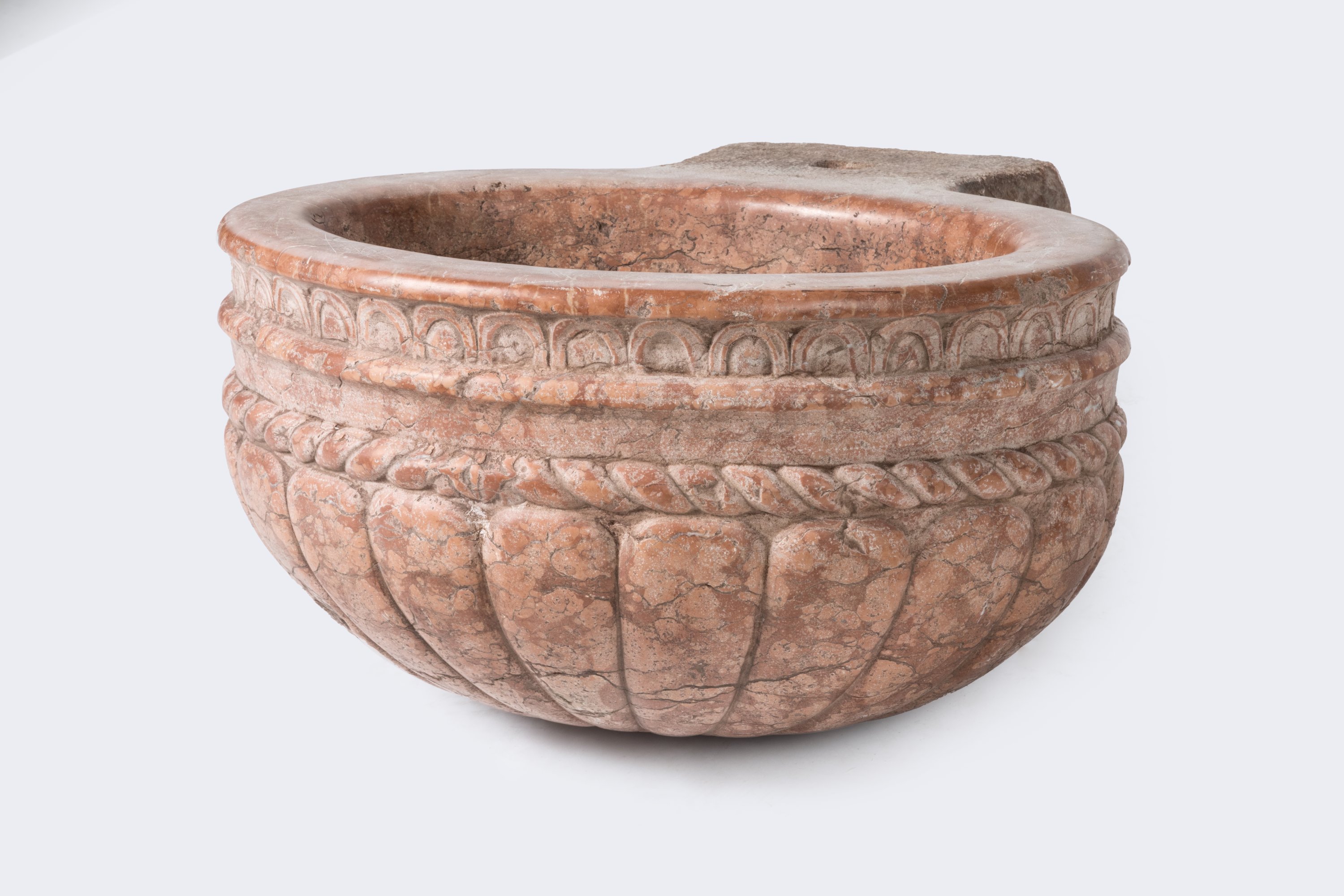 en marbre de Vérone, au culot godronné et le bord souligné d’une frise d’oves.