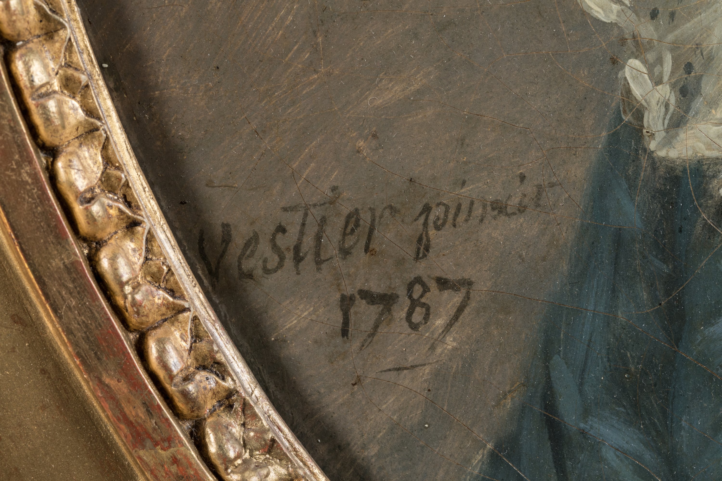 Antoine Vestier, 1787. A portrait of Amable de Fontanges. Signed and dated. In a Louis XVI giltwood frame.