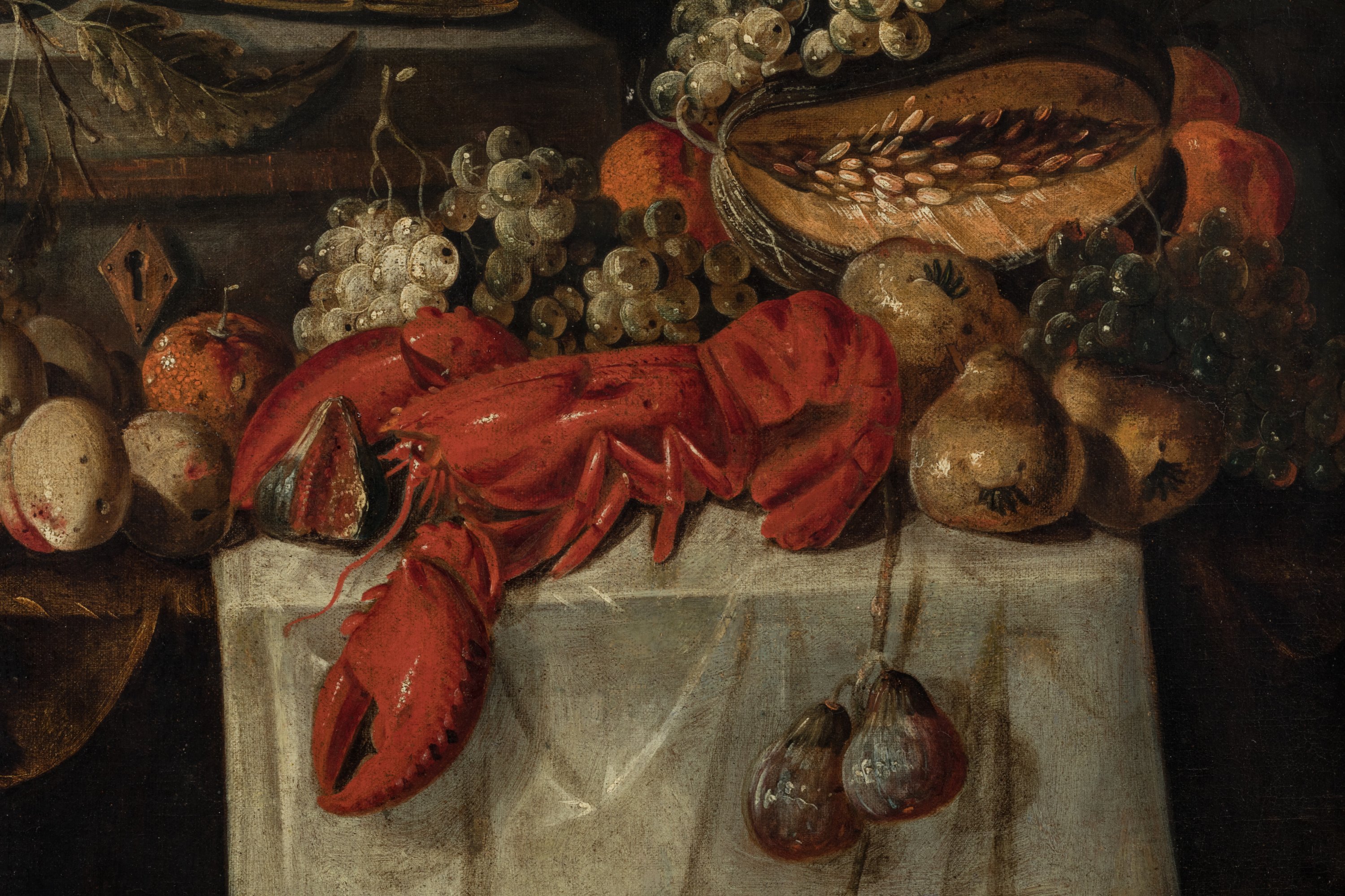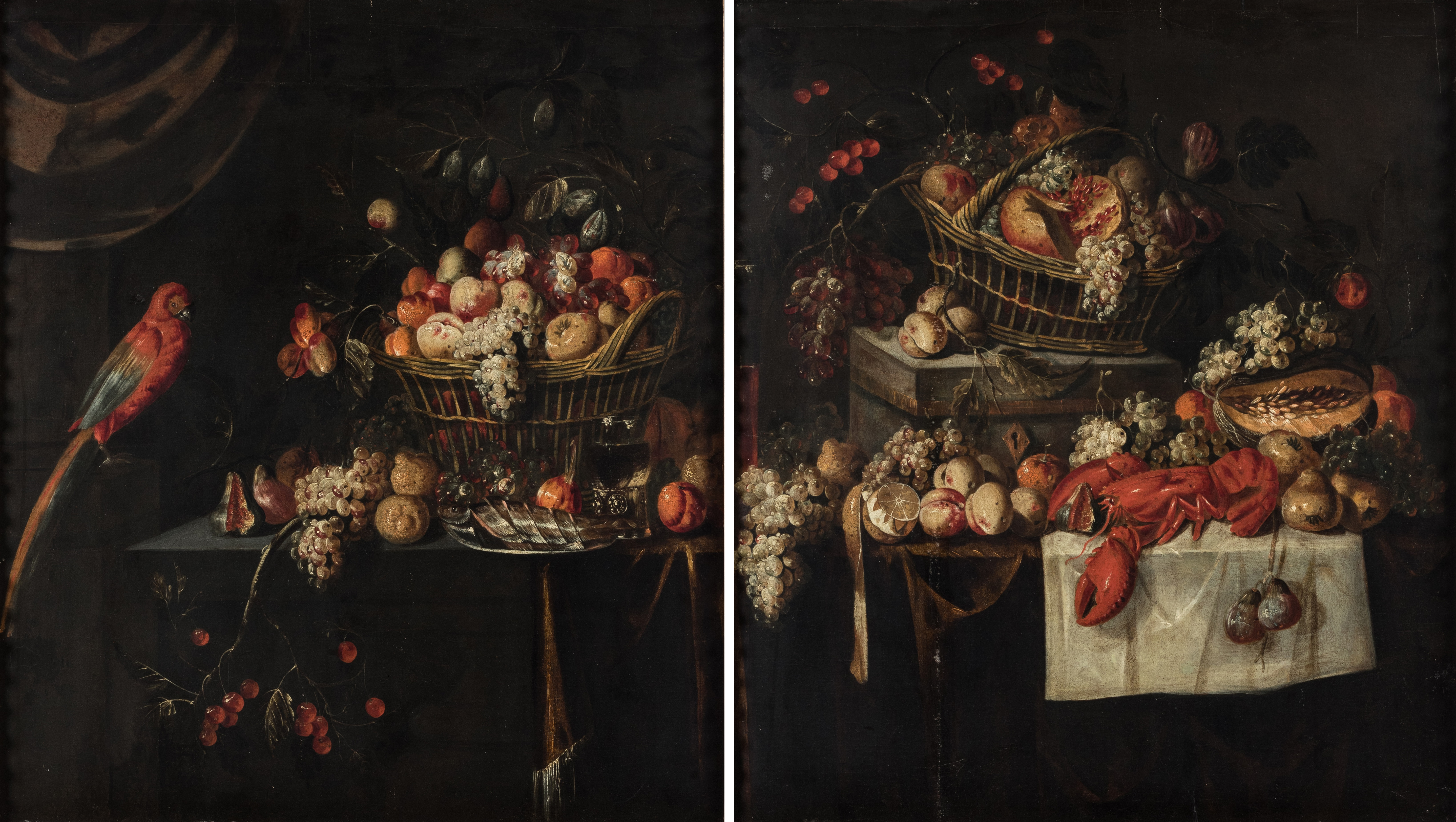 Flemish School, ca. 1670. A pair of still life paintings by a follower of Jan Davidszoon de Heem. In red and gilt lacquered wood frames.