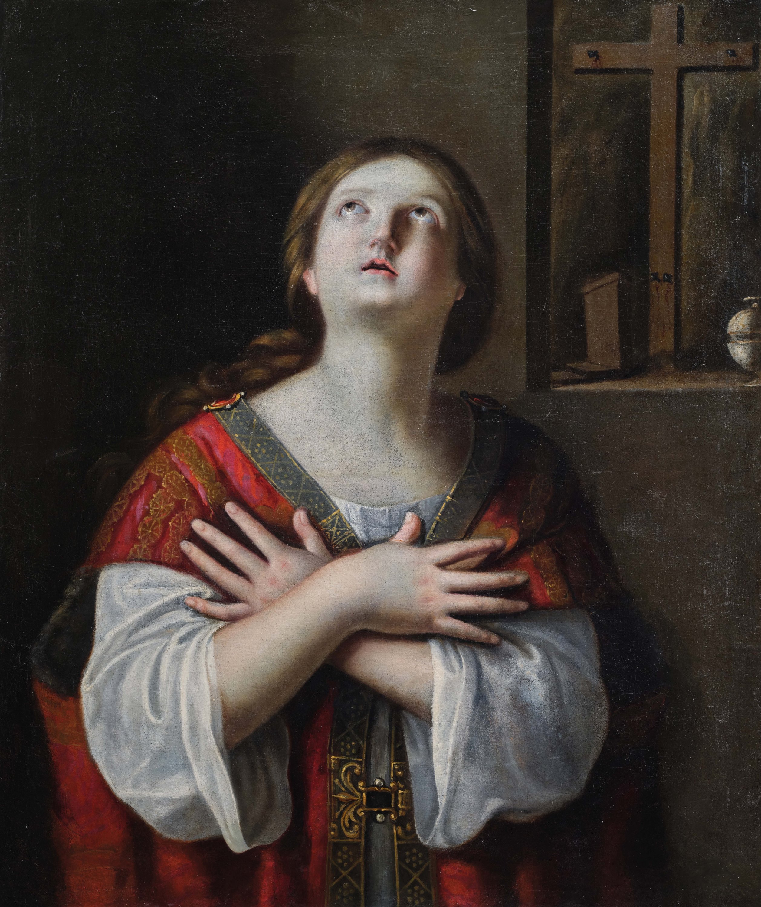 French School, ca. 1640. By the entourage of Nicolas Mignard. A painting of Saint Mary Magdalene at prayer.