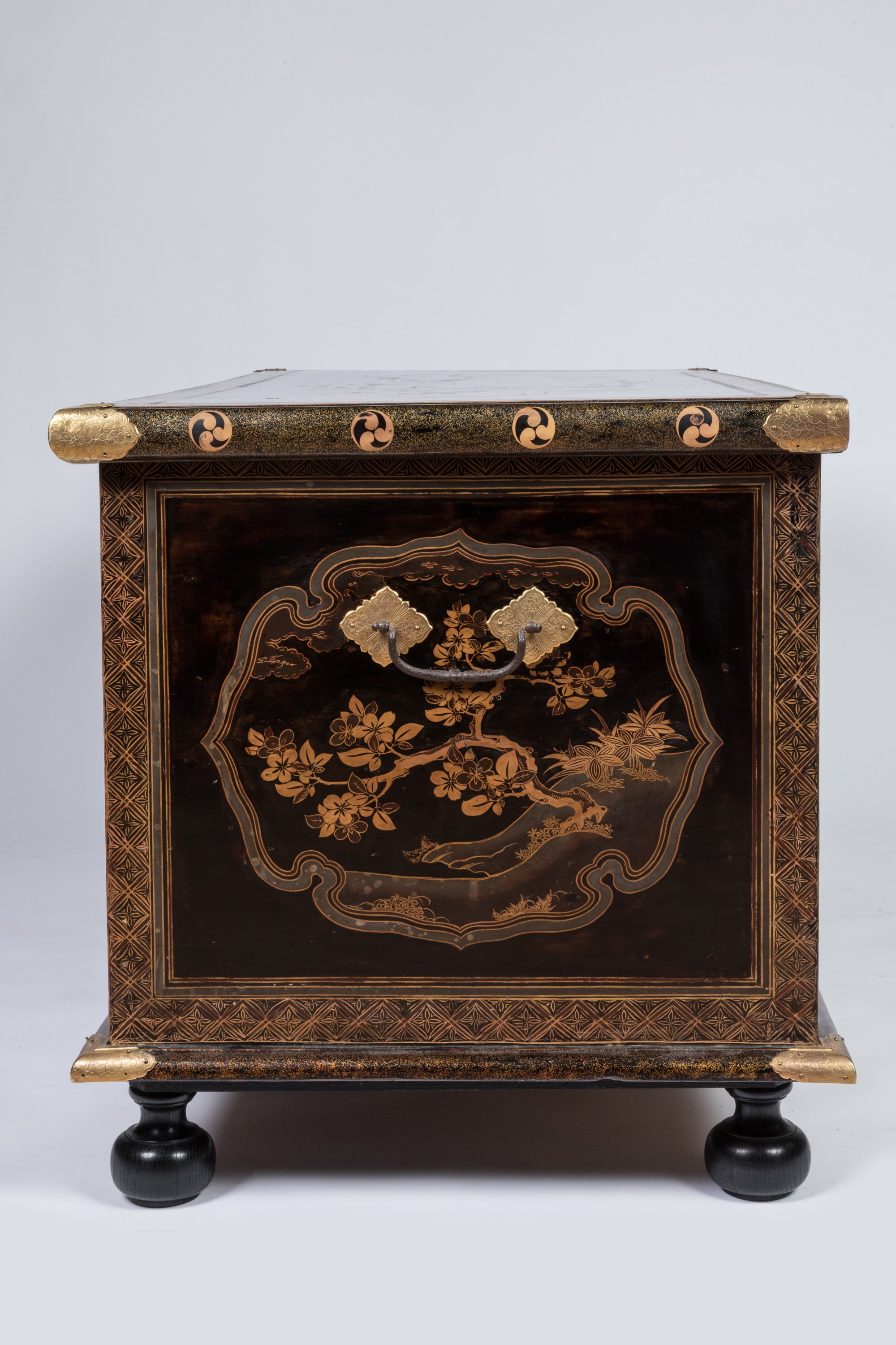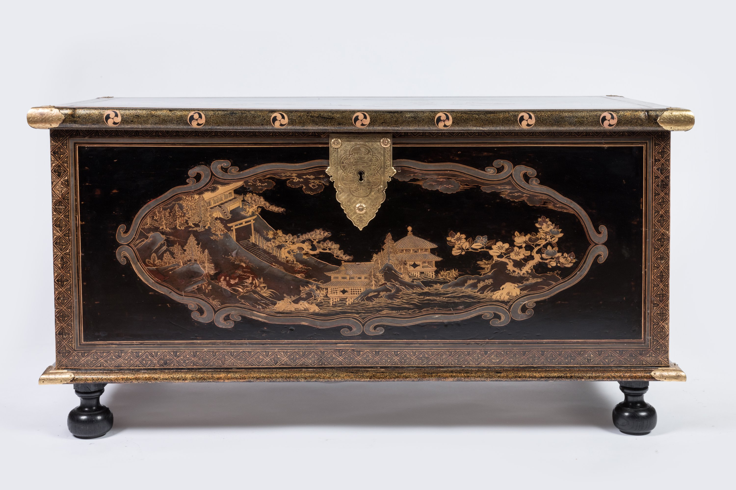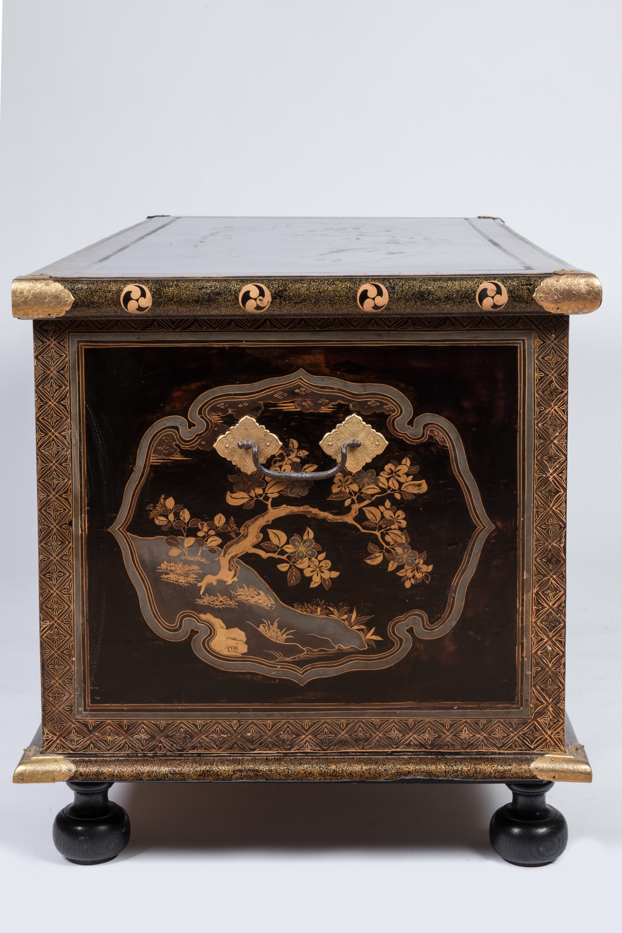 Japan, Edo-Period. A Transition style lacquer chest. Brass mounts. European lock. Identical to a chest kept in the Royal Collections of Denmark since the 17th century.