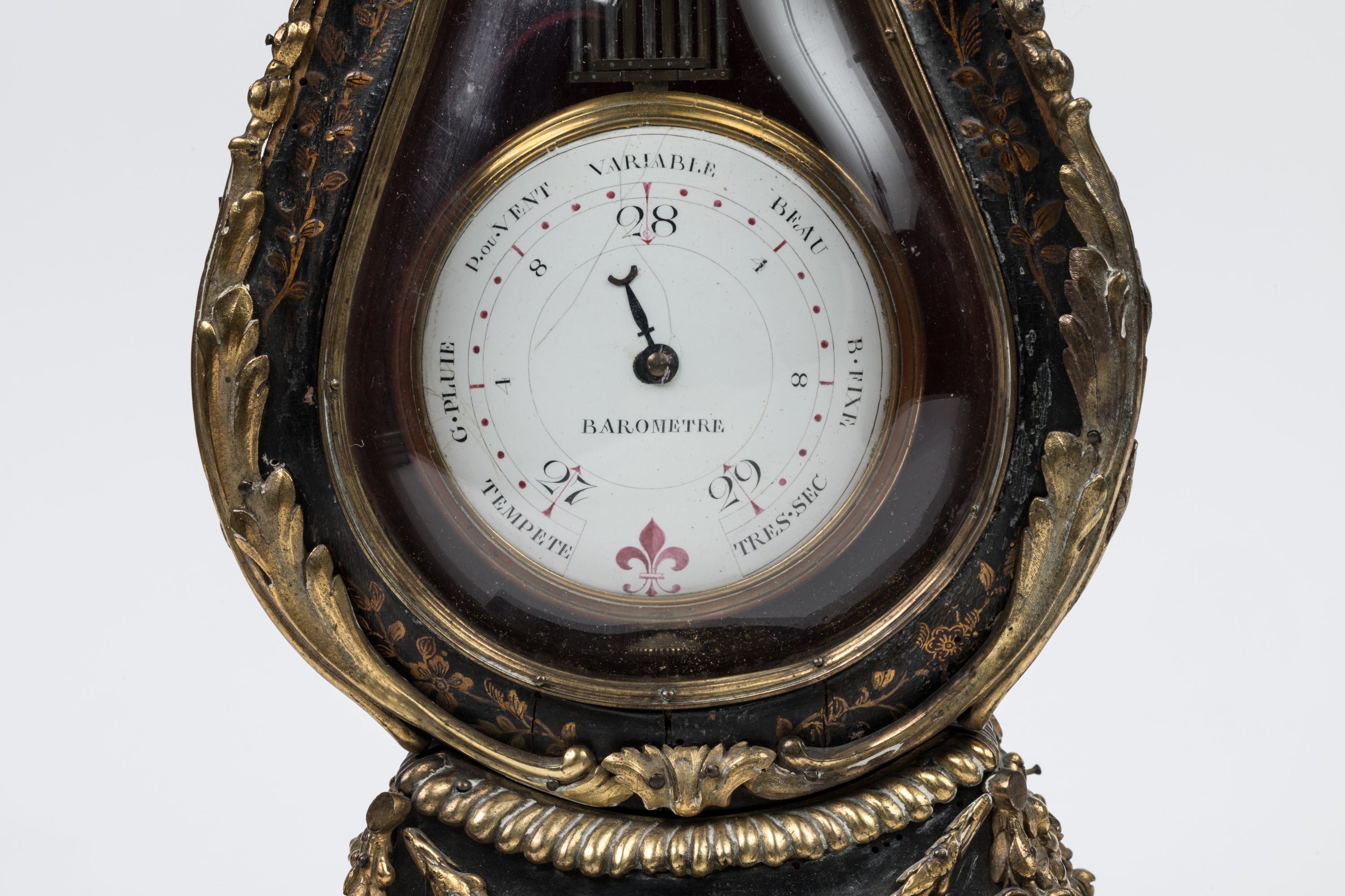 (restaurations, accidents et manques dans le vernis, les aiguilles du baromètre manquantes)