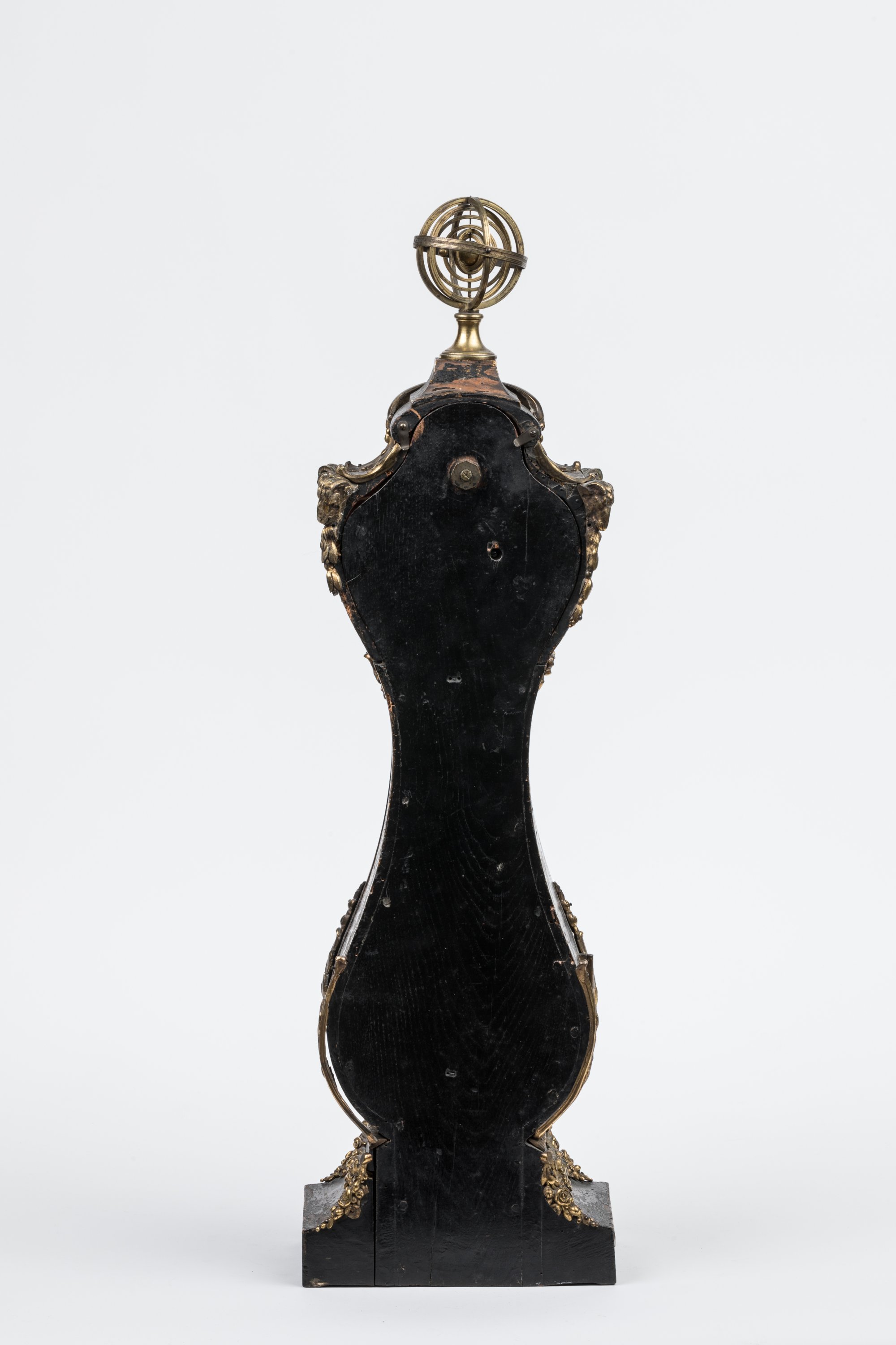 en vernis parisien à l'imitation de la laque de Chine. De forme violonnée, à décor de fleurs et de pagodes chinoises, il est surmonté d'une sphère armillaire en bronze doré. Le cadran supérieur servant d'horloge émaillé blanc est signé "Imbert l'Ainé", il indique les heures en chiffres romains et les minutes en chiffres arabes.