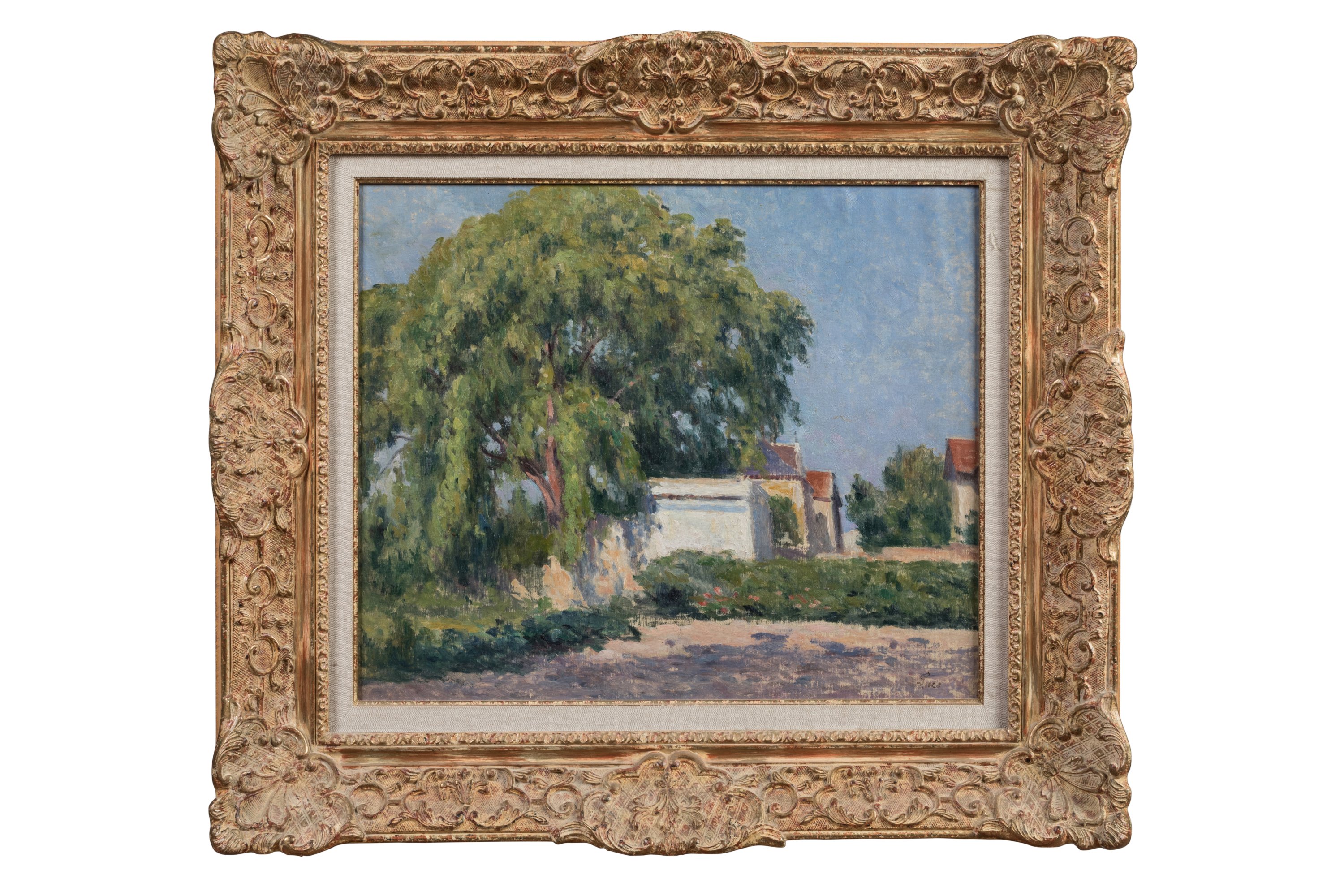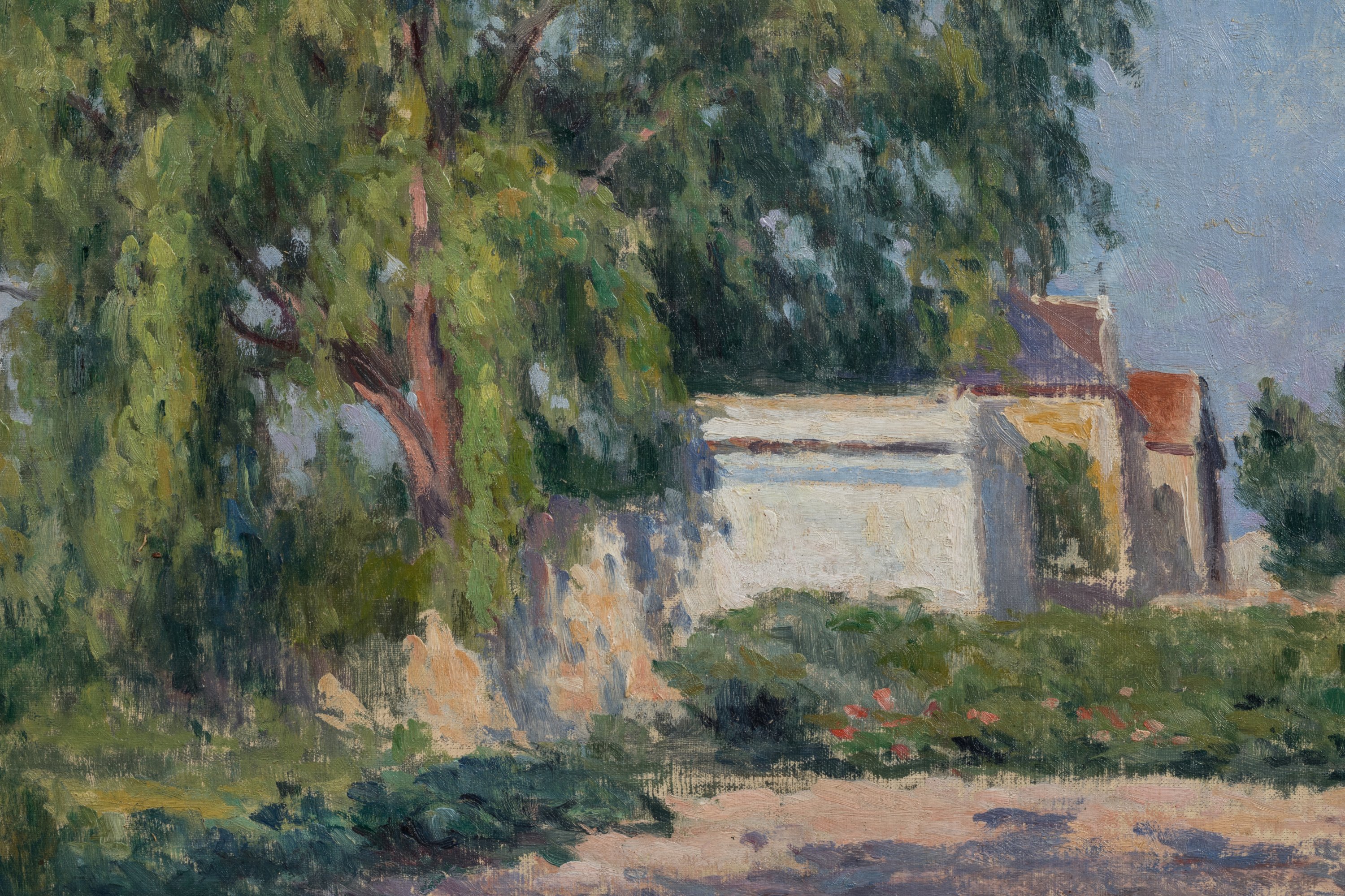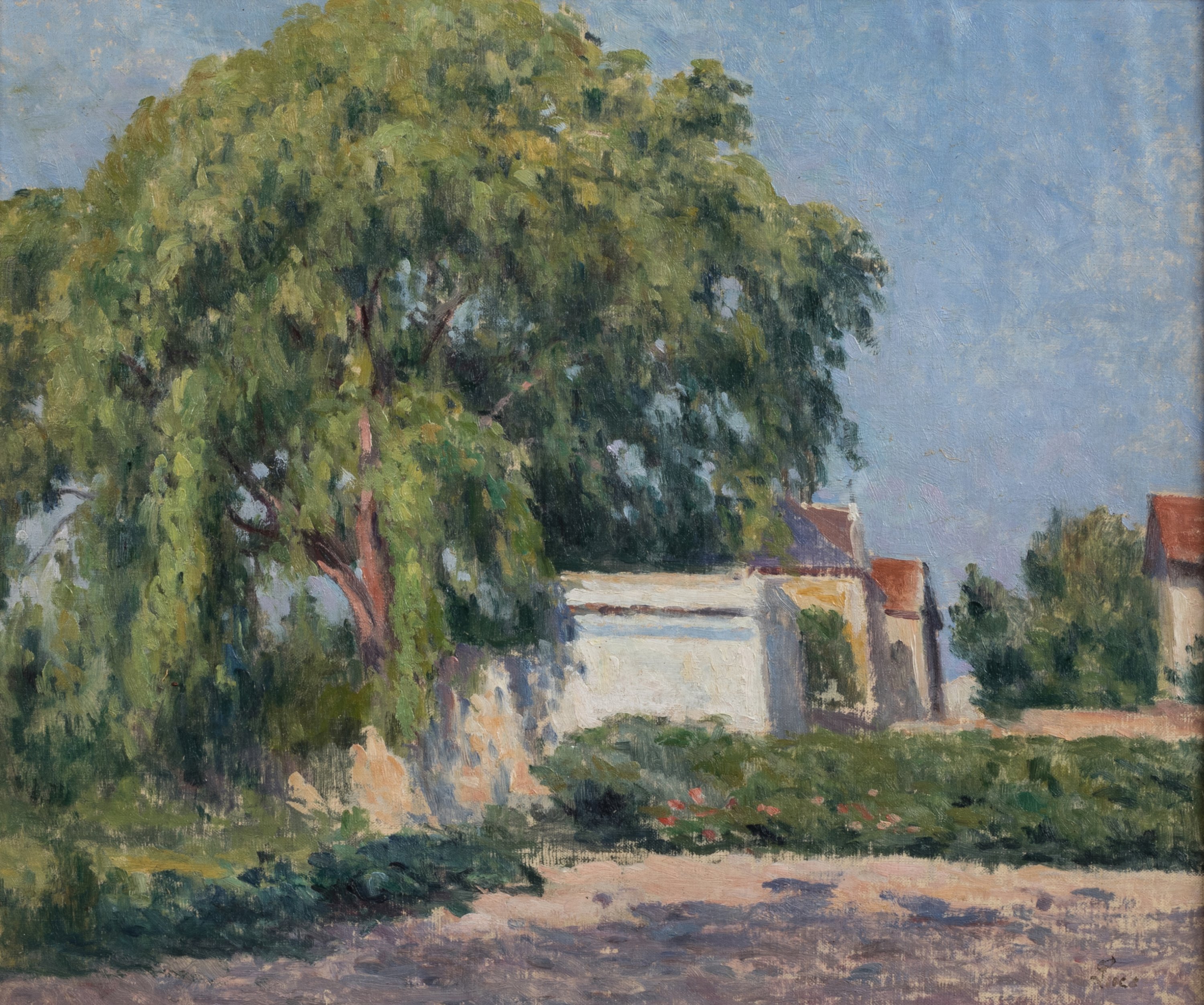 Maximilien Luce traduit ici l’atmosphère de la fin d’un après-midi d’été passé dans le jardin d’un ami vers 1902-1903. Si l’œuvre invite à la contemplation, elle offre aussi le témoignage des liens unissant le peintre à Alexandre Charpentier. Sculpteur, peintre, ébéniste et graveur, Charpentier lui ouvre au moins à deux reprises les portes de son jardin du hameau Boileau (Denise Bazetoux, op.cit., p. 63, n°52). Installant en 1900 son atelier à Auteuil, au 102 de la rue Boileau, Luce peint donc ici en voisin le jardin de son ami.