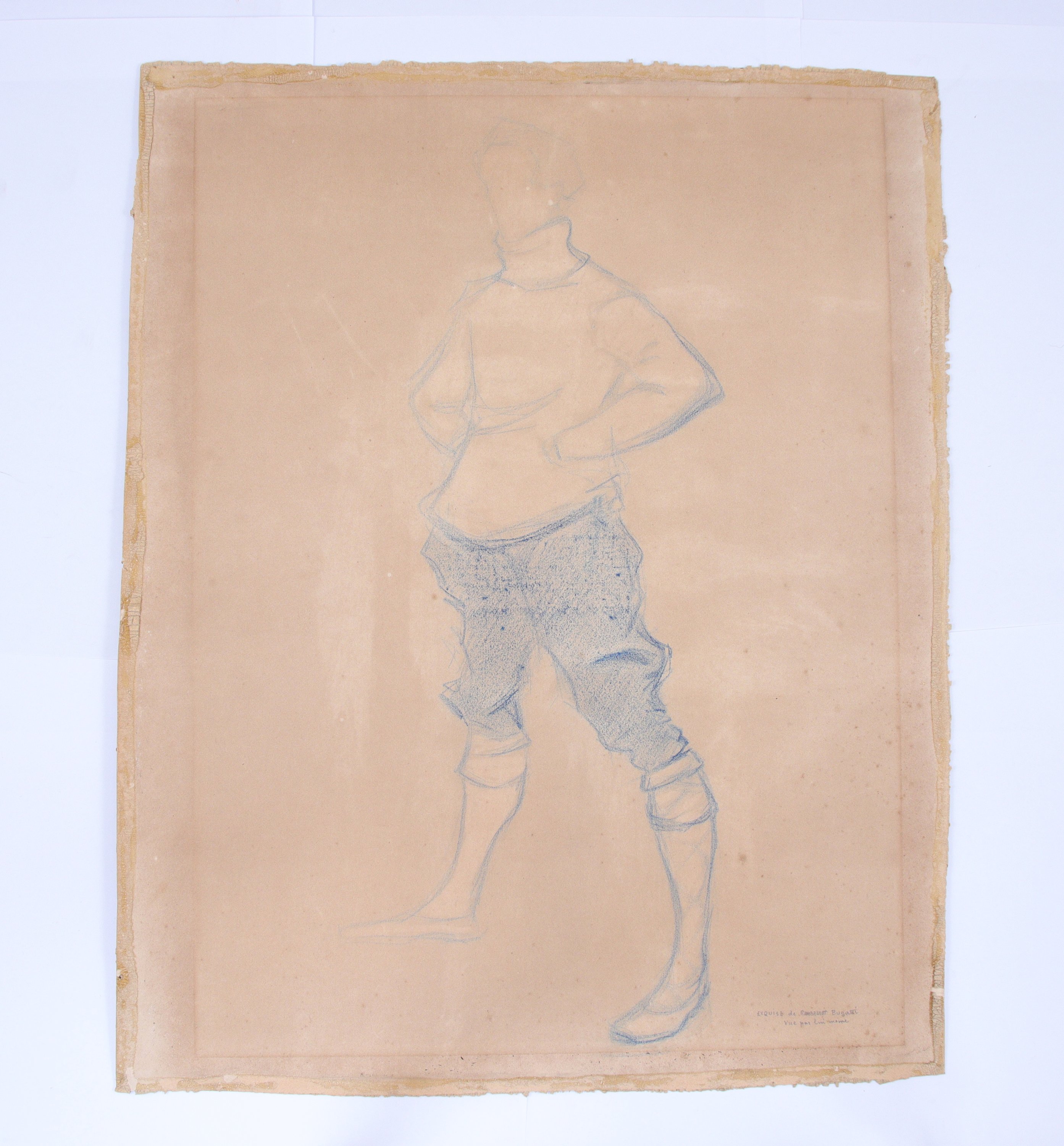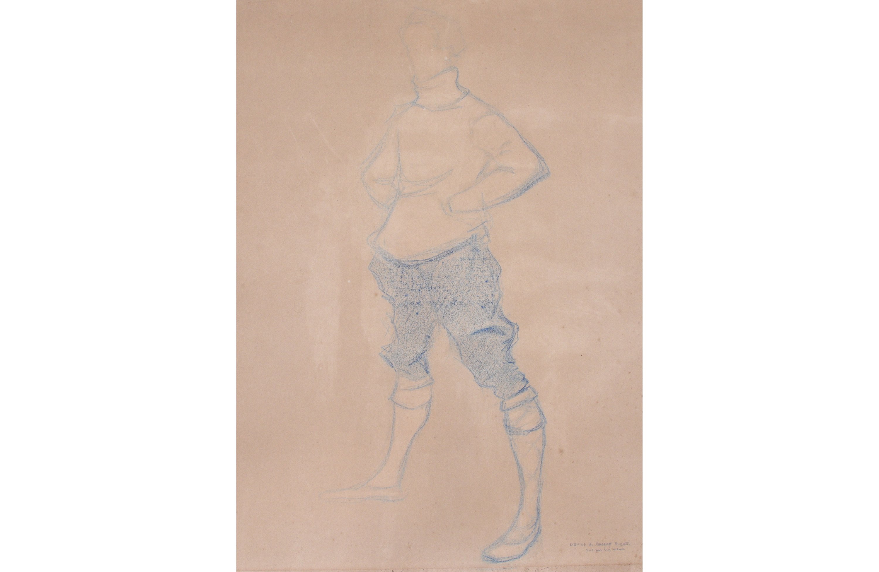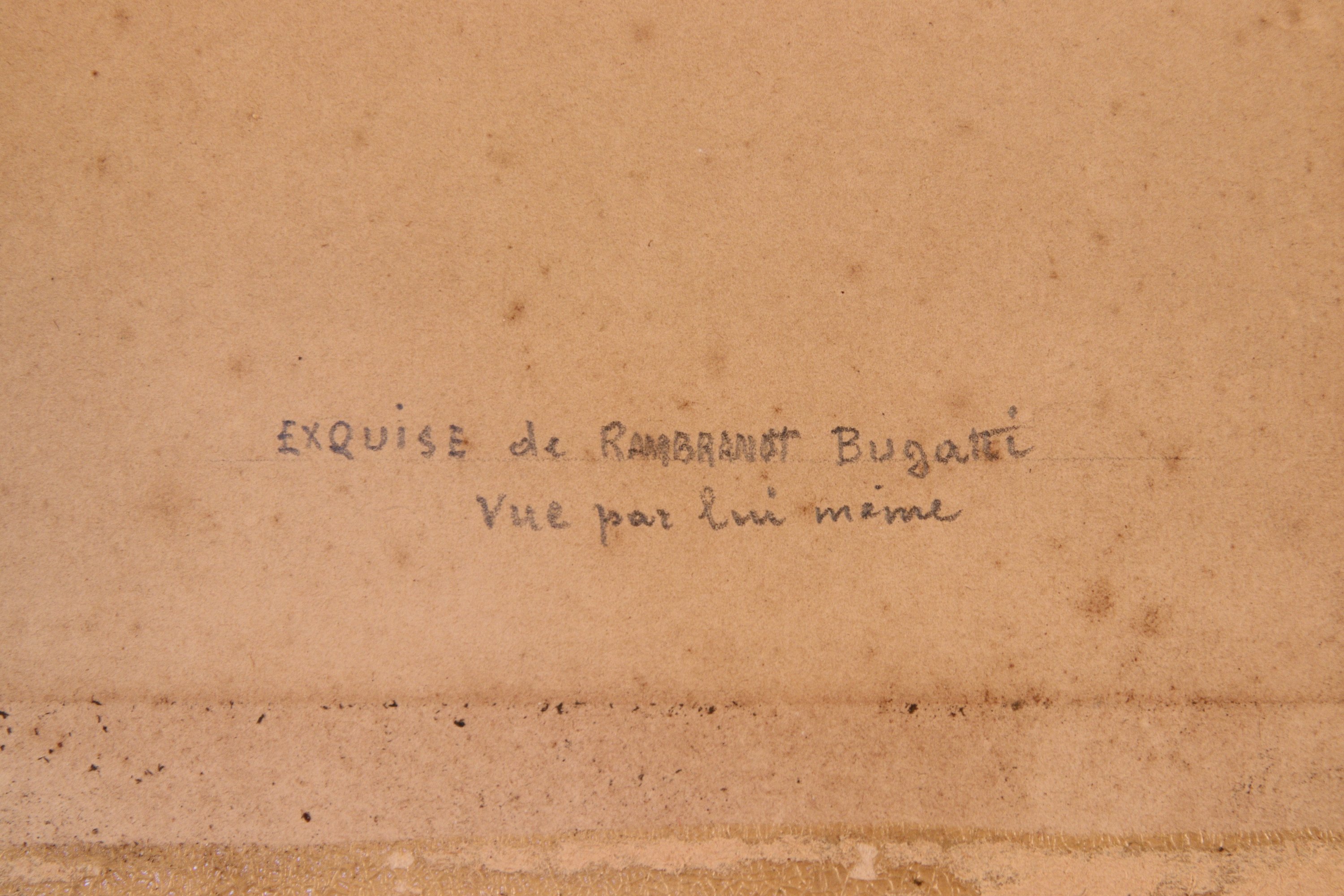 Inscription en bas à droite "esquisse de Rambrandt Bugatti vue par lui même".