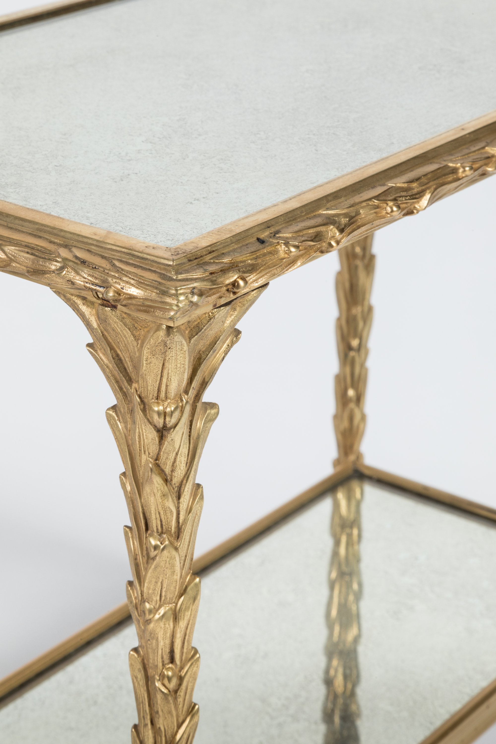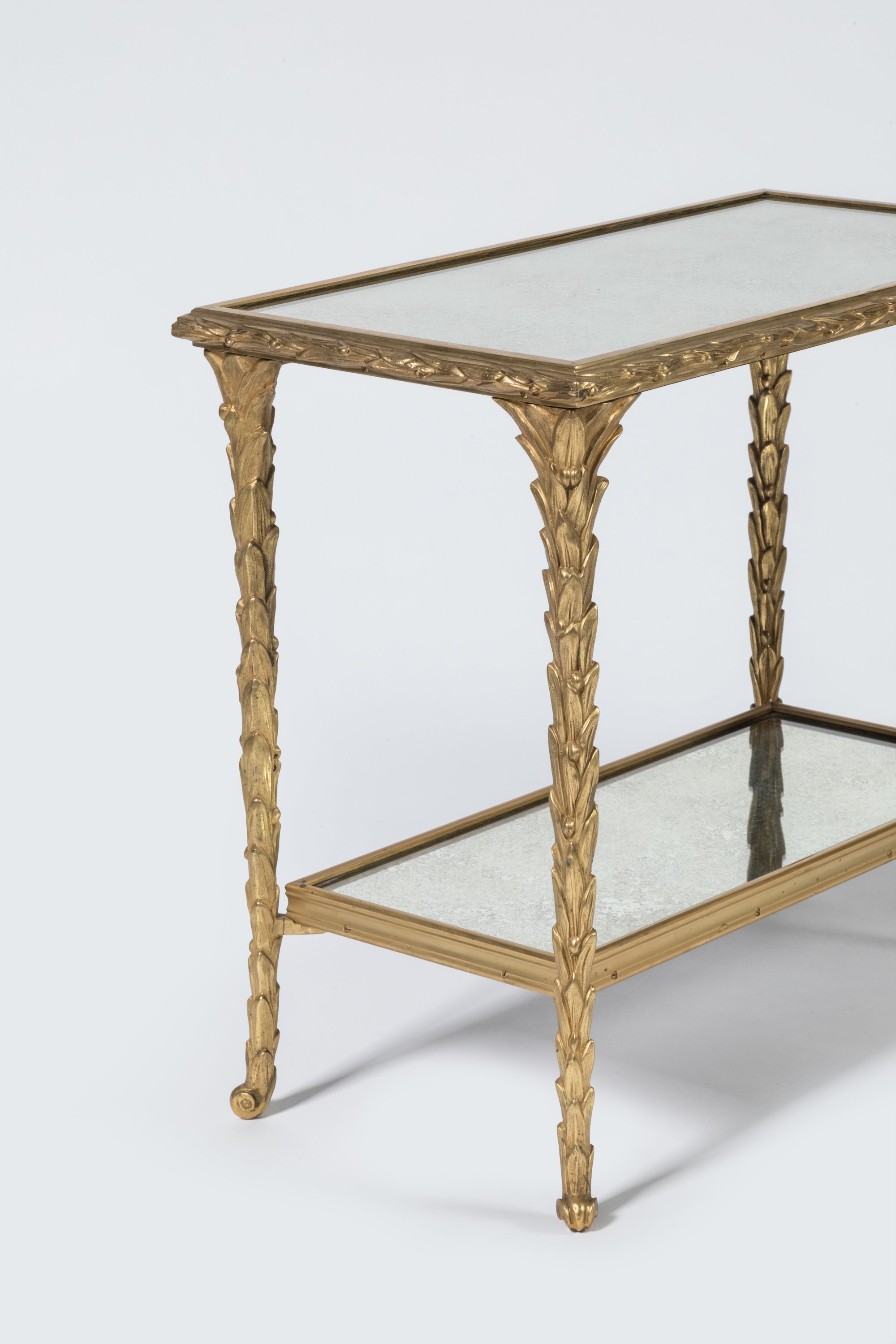 en bronze doré de forme rectangulaire à deux plateaux foncés de miroirs. Ils reposent sur quatre pieds terminés en enroulements.