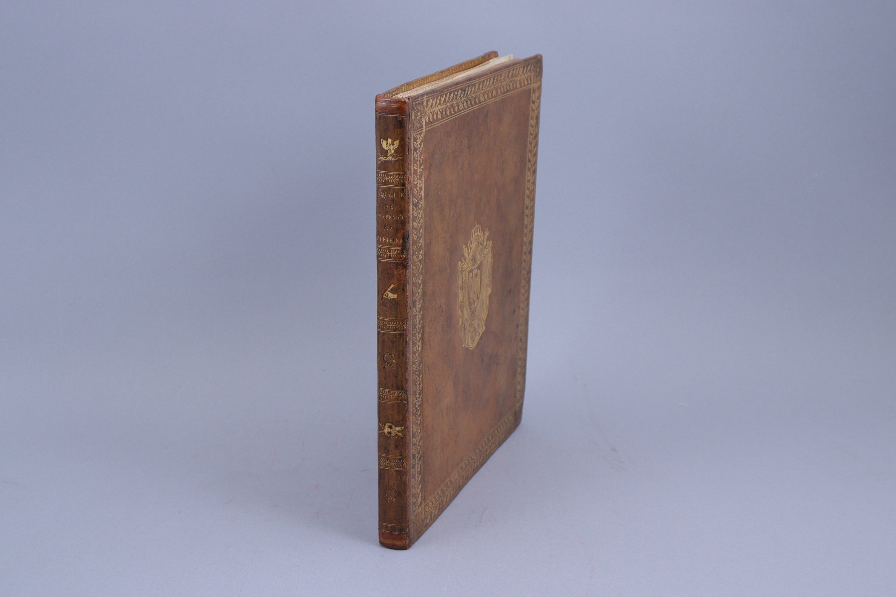 Bel exemplaire aux armes de l'Empereur, à grandes marges, imprimé sur un beau papier vélin. C'est l'un des premiers ouvrages publiés par l'Imprimerie Impériale, et financés par l'état en vue d'assurer à Napoléon une notoriété, vite devenue légendaire.