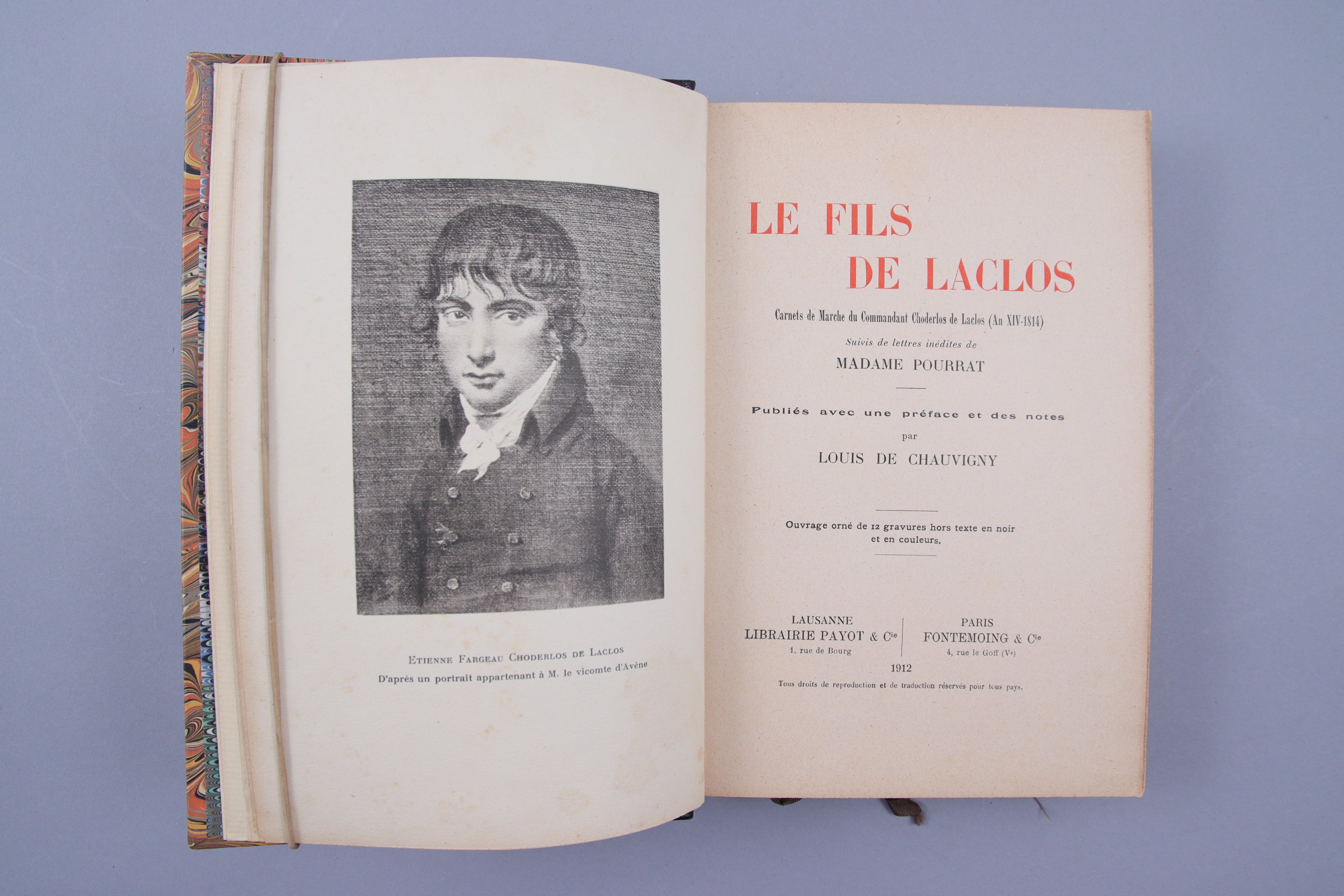 Edition originale. 1 des 300 exemplaires numérotés sur vélin fort. Complet de ses 12 illustrations hors-texte, dont 6 en couleurs. Austerlitz, campagne de Prusse, Eylau, Friedland, Tilsit, campagne d'Allemagne, campagne de France jusqu'au 18 mars 1814, date à laquelle Choderlos est tué d'une balle à la tête.