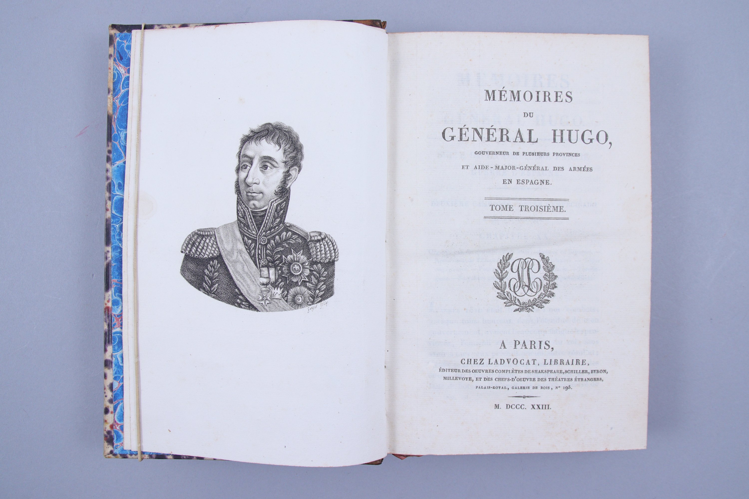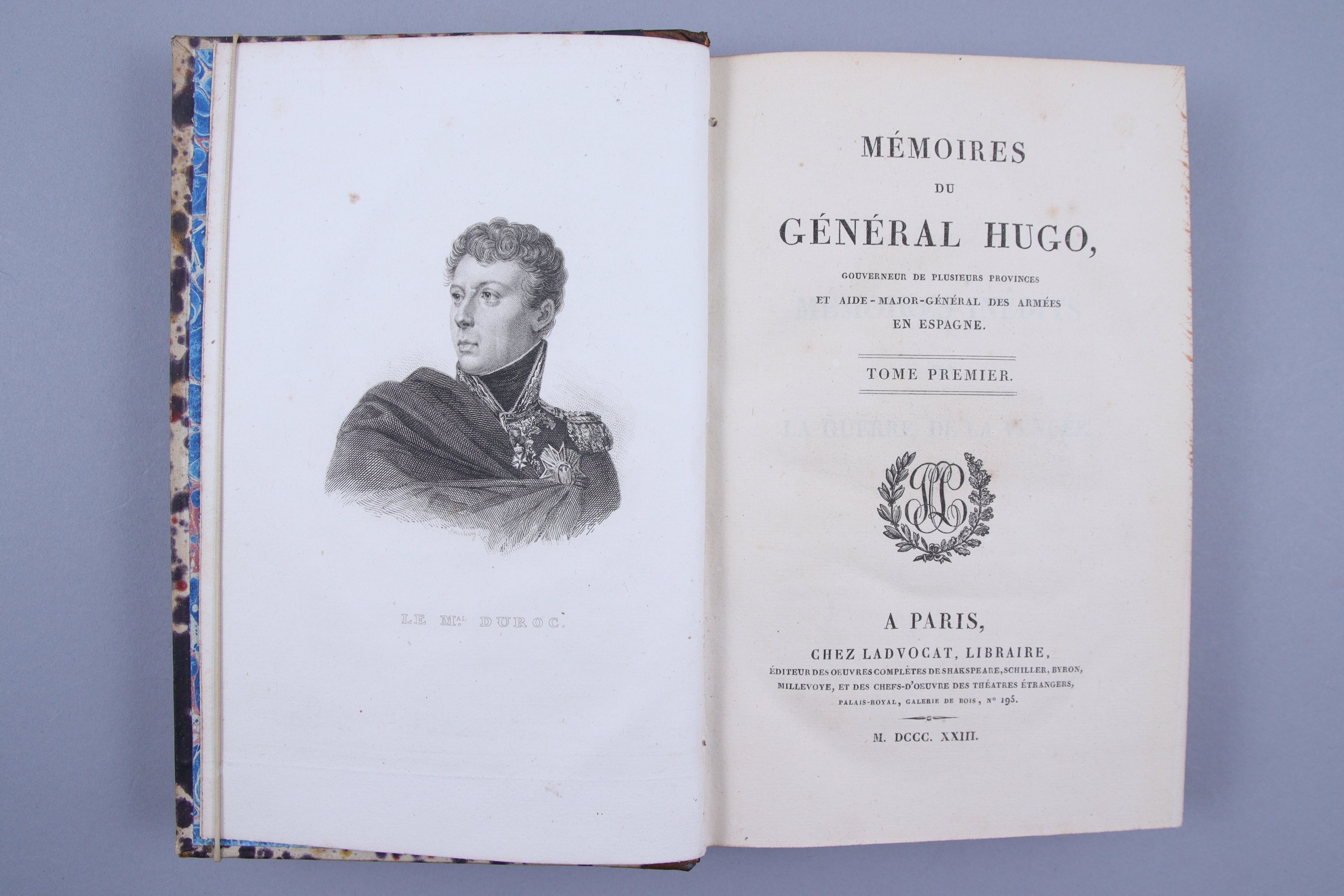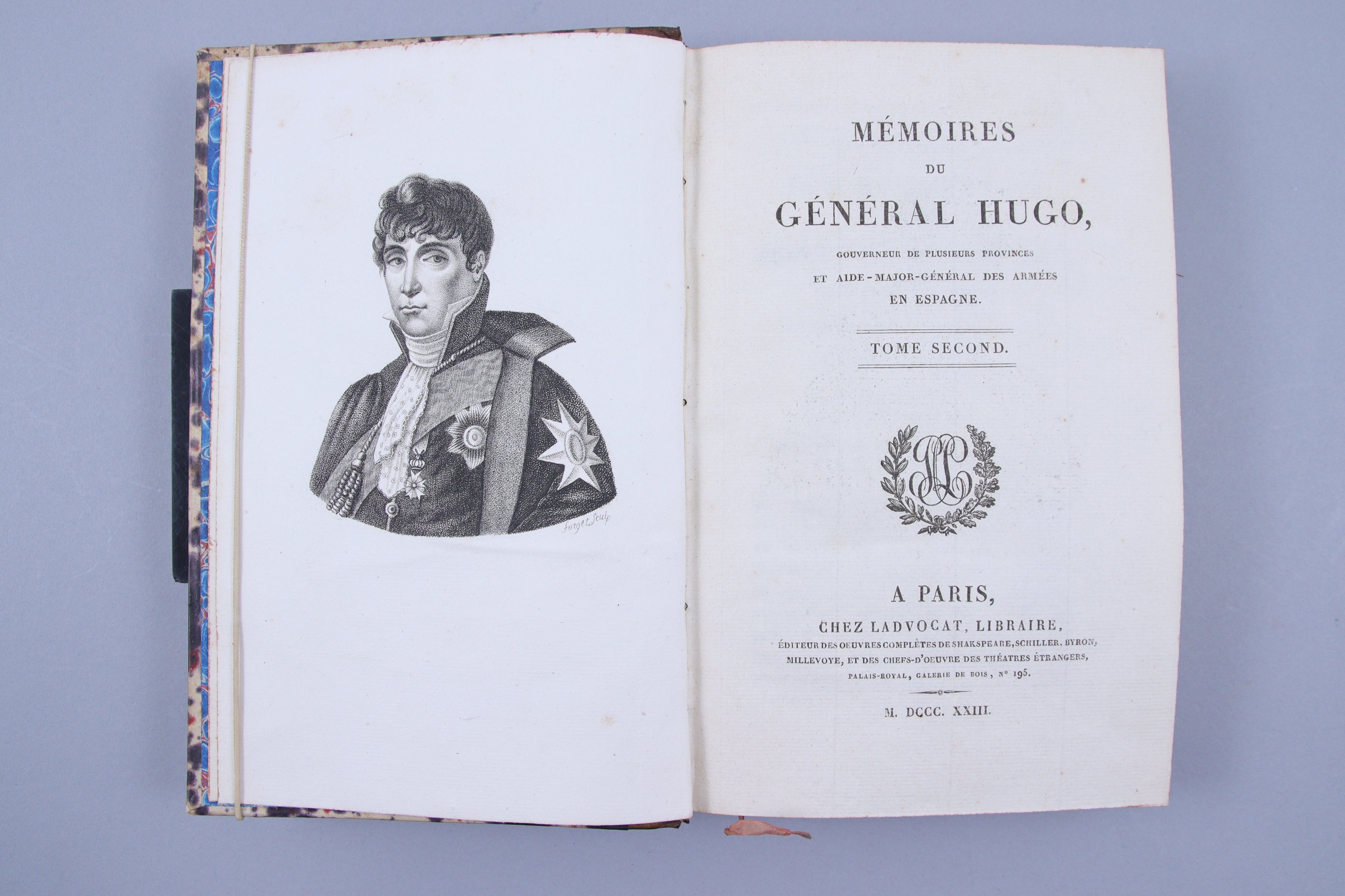 Bon exemplaire exempt de rousseurs de l'édition originale des "Mémoires du père de Victor Hugo, dont l'intérêt en dehors de la personnalité du général, s'étend à tout ce qui concerne l'Italie napoléonienne (la lutte contre Fra Diavolo, pendu à Naples en 1806) et la guerre d'Espagne". (Tulard, 712