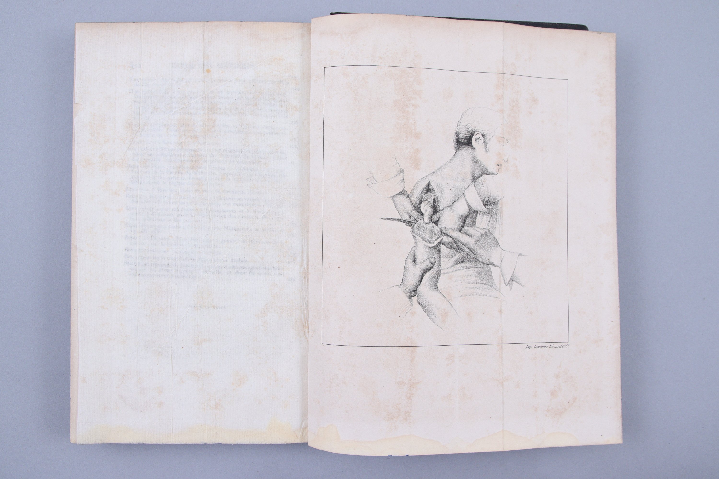 Pour la Relation médicale: 1 volume in-8, plein chagrin vert foncé, encadrements à froid sur les plats, tranches marbrées. Reliure du temps. (Quelques légères rousseurs)