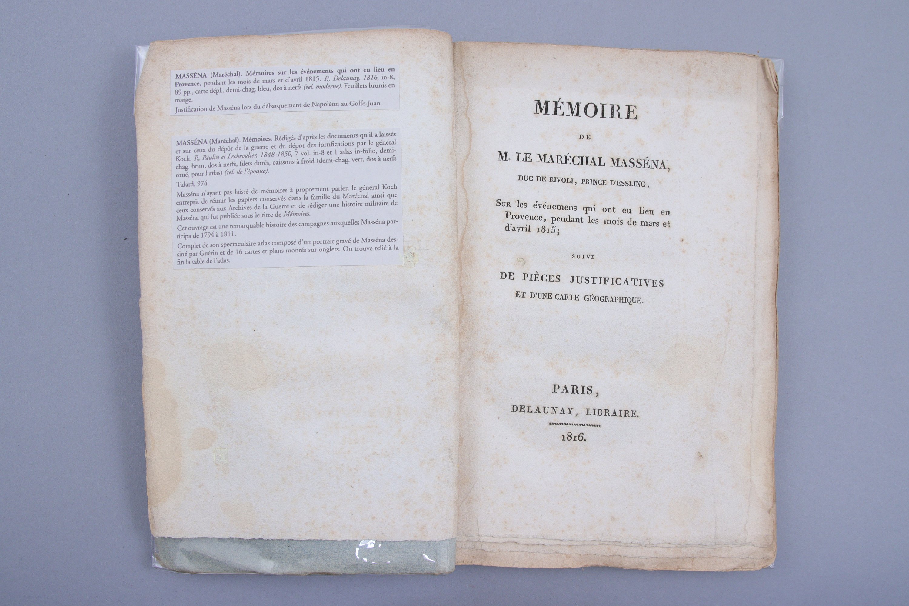 Mémoire de M. le Maréchal Masséna, duc de Rivoli, Prince d'Essling, sur les événements qui ont eu lieu en Provence, pendant les mois de mars et avril 1815 ; suivi de pièces justificatives et d'une carte géographique.