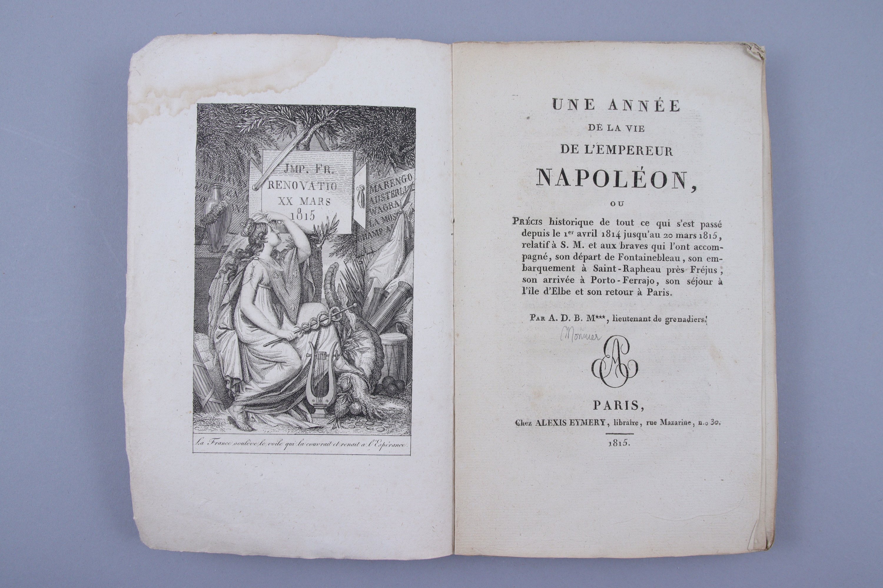 Une année de la vie de l'Empereur Napoléon. Ou précis historique de tout ce qui s'est passé depuis le 1er avril 1814 jusqu'u 20 mars 1815, relatif à S.M. et aux braves qui l'ont accompagné...