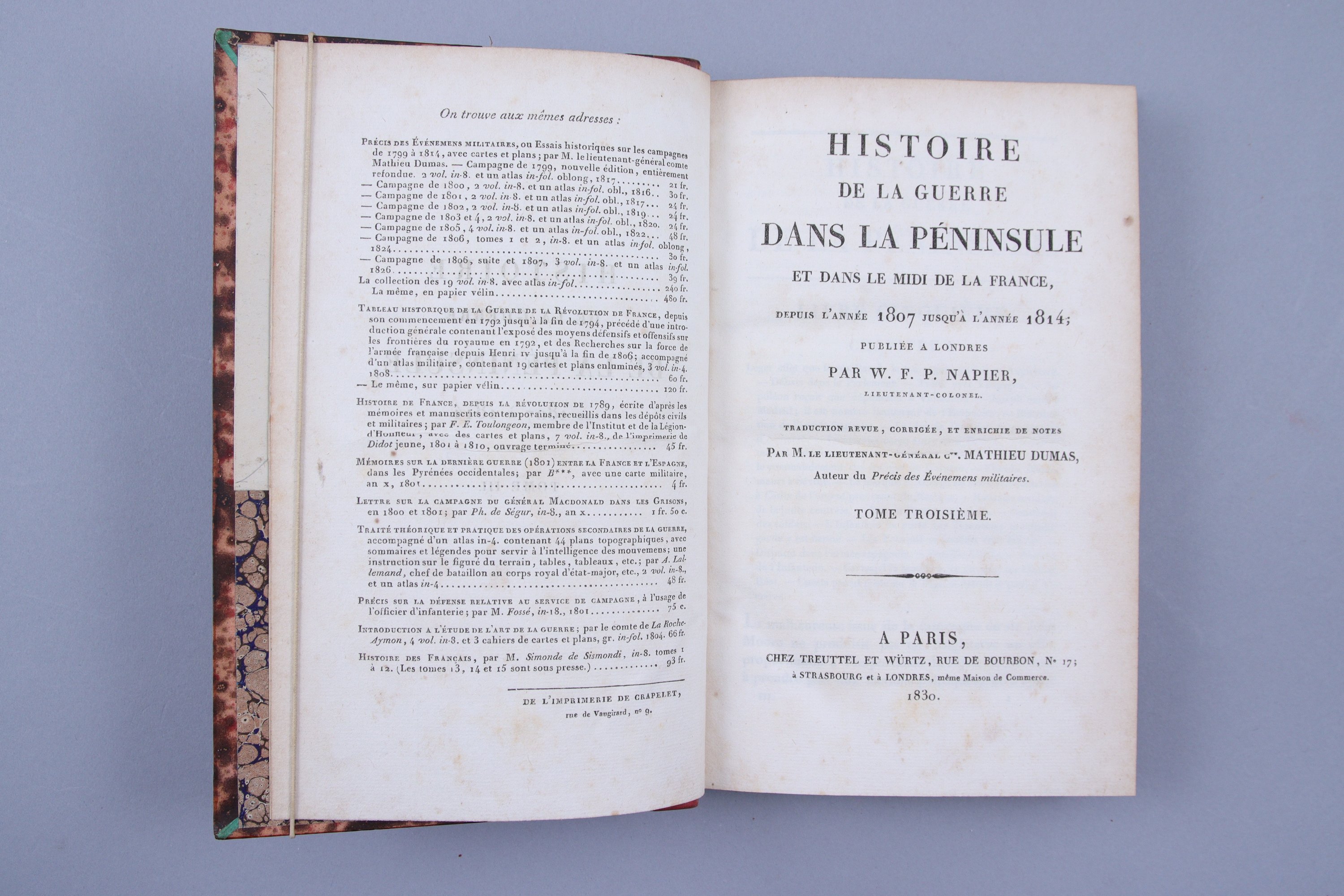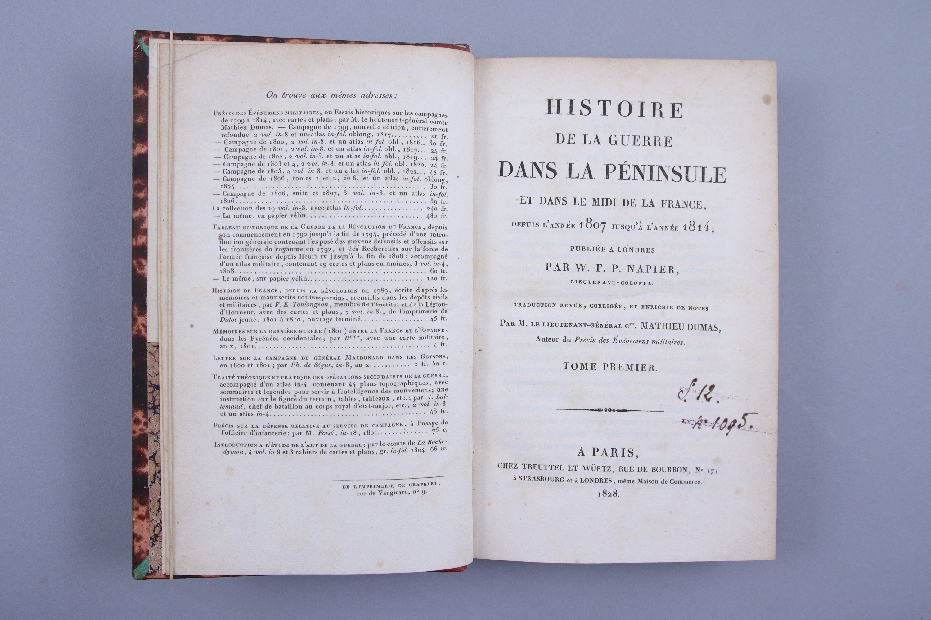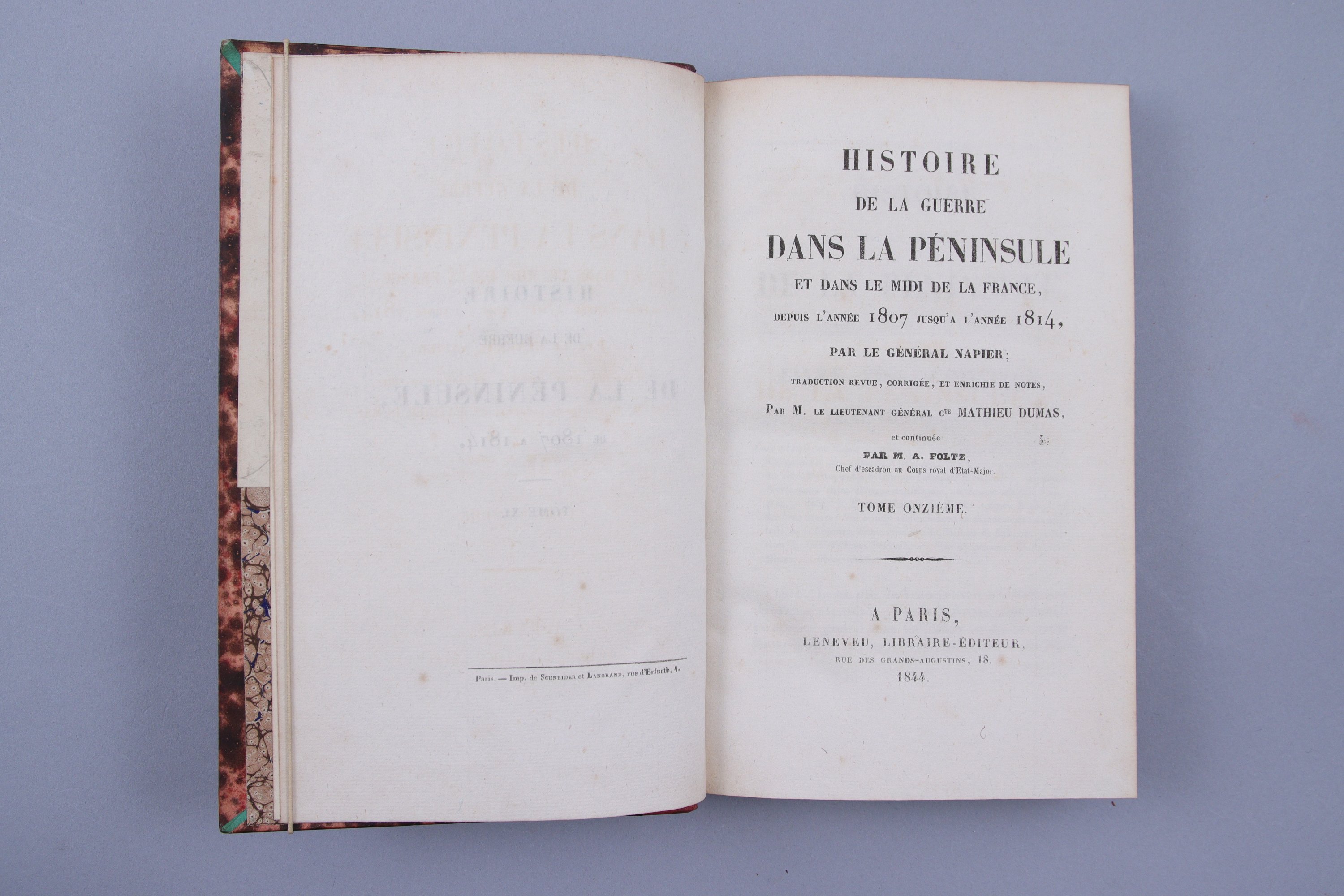 Histoire de la guerre de la Péninsule et dans le Midi de la France, depuis l'année 1807 jusqu'à l'année 1814, publiée à Londres par W.F.P. Napier, lieutenant-colonel. Traduction revue, corrigée et enrichie de notes par M. le Lieutenant-Général Mathieu Dumas. (Tome 1 à 10).