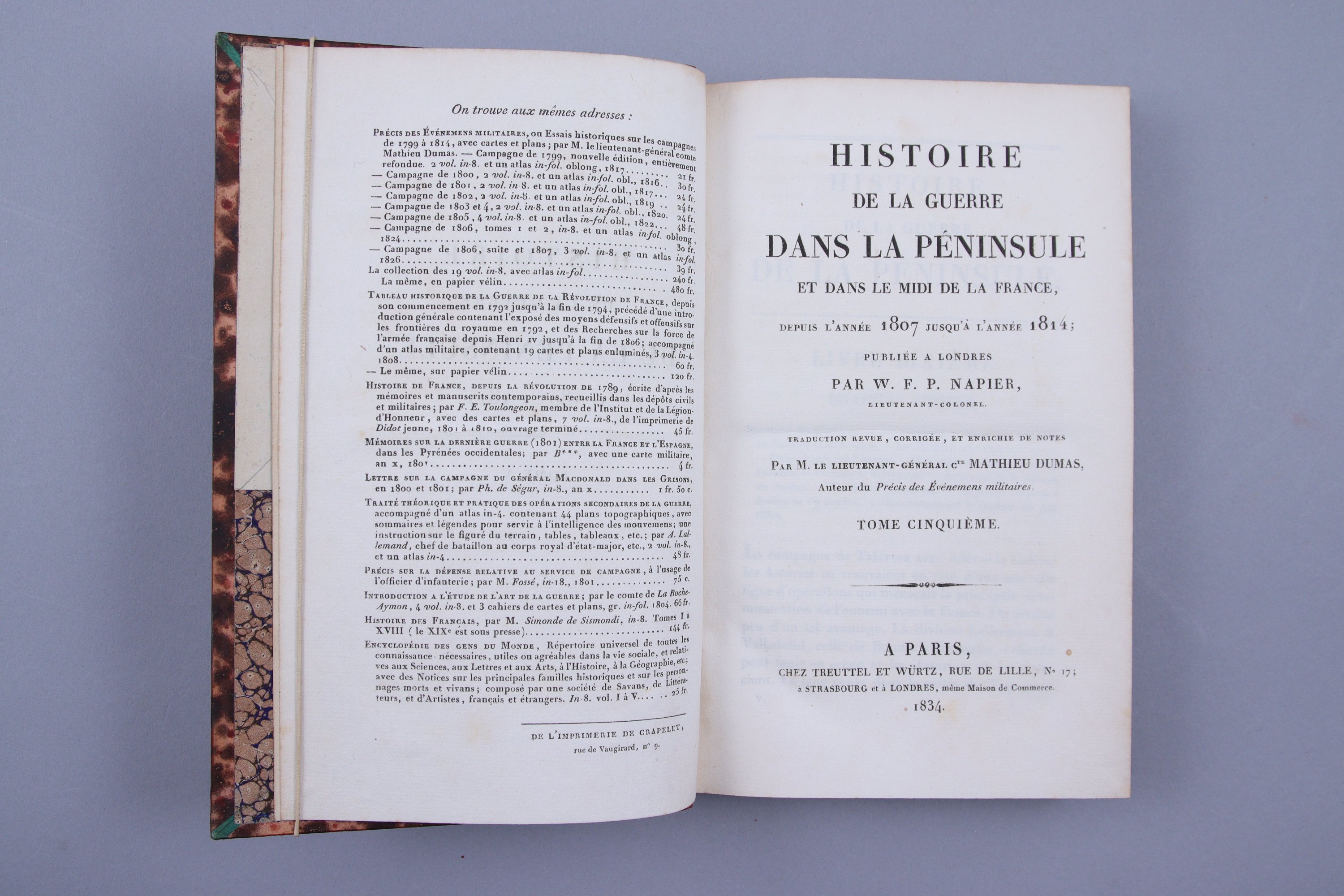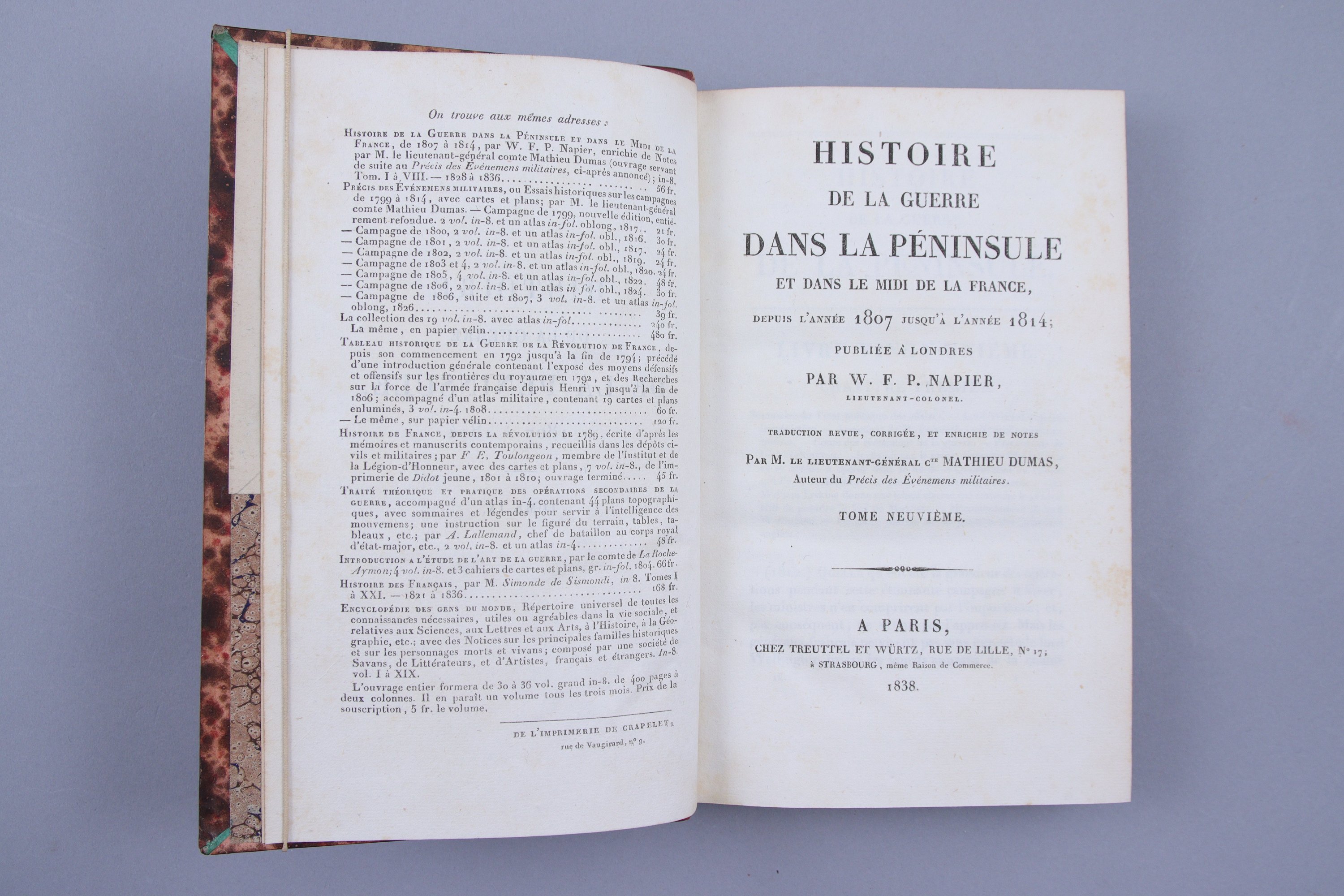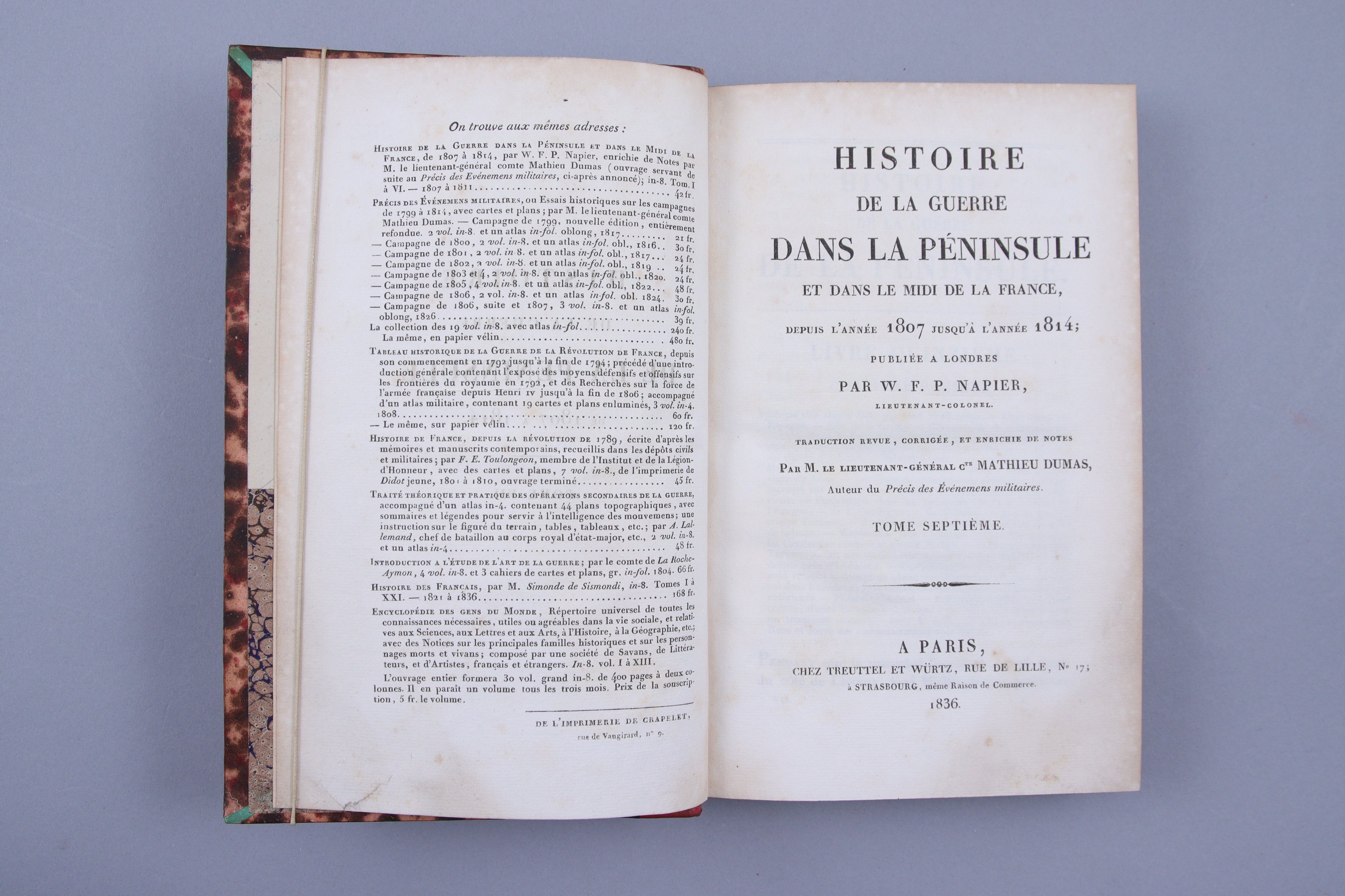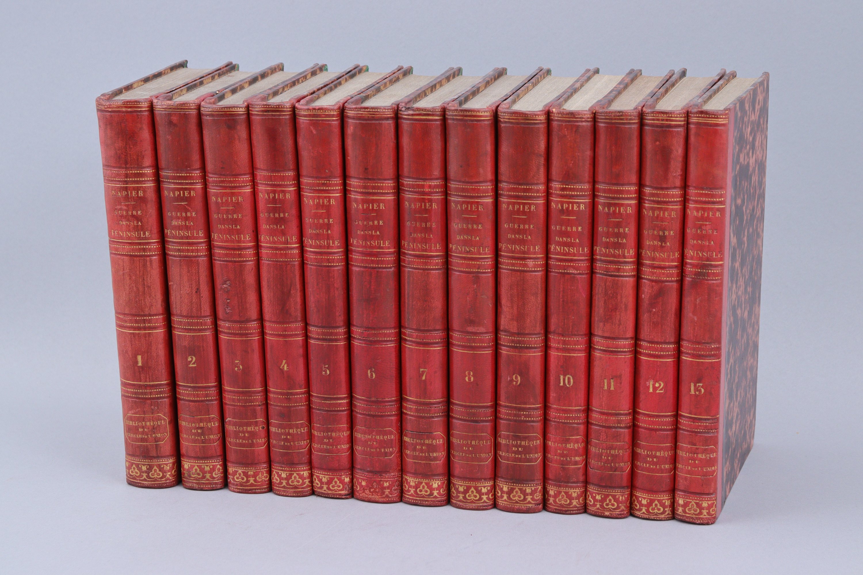 Rare réunion en belles reliures uniformes de ce texte majeur sur la Guerre d'Espagne (ou Campagne d'Espagne) qui opposa l'Espagne des Bourbons, le Portugal et le Royaume Uni à la France du Premier Empire.