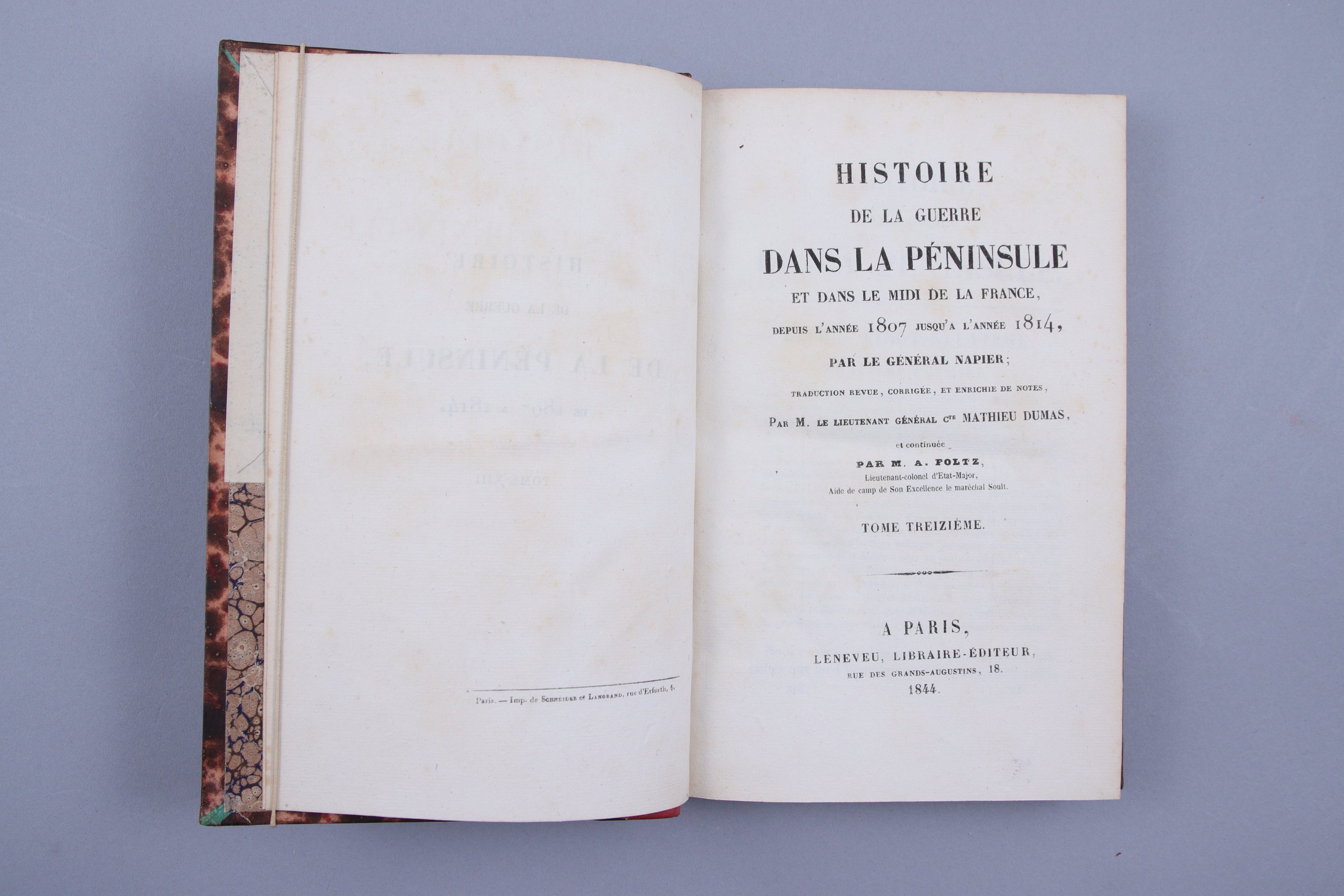 (Suivi par: ) Histoire de la guerre de la Péninsule (...) traduction revue; corrigée et enrichie de notes par M. le Lieutenant-Général Dumas, et continuée par M.A. Foltz, Chef d'Escadron au Corps Royal d' Etat Major. (Tomes 11, 12, 13).