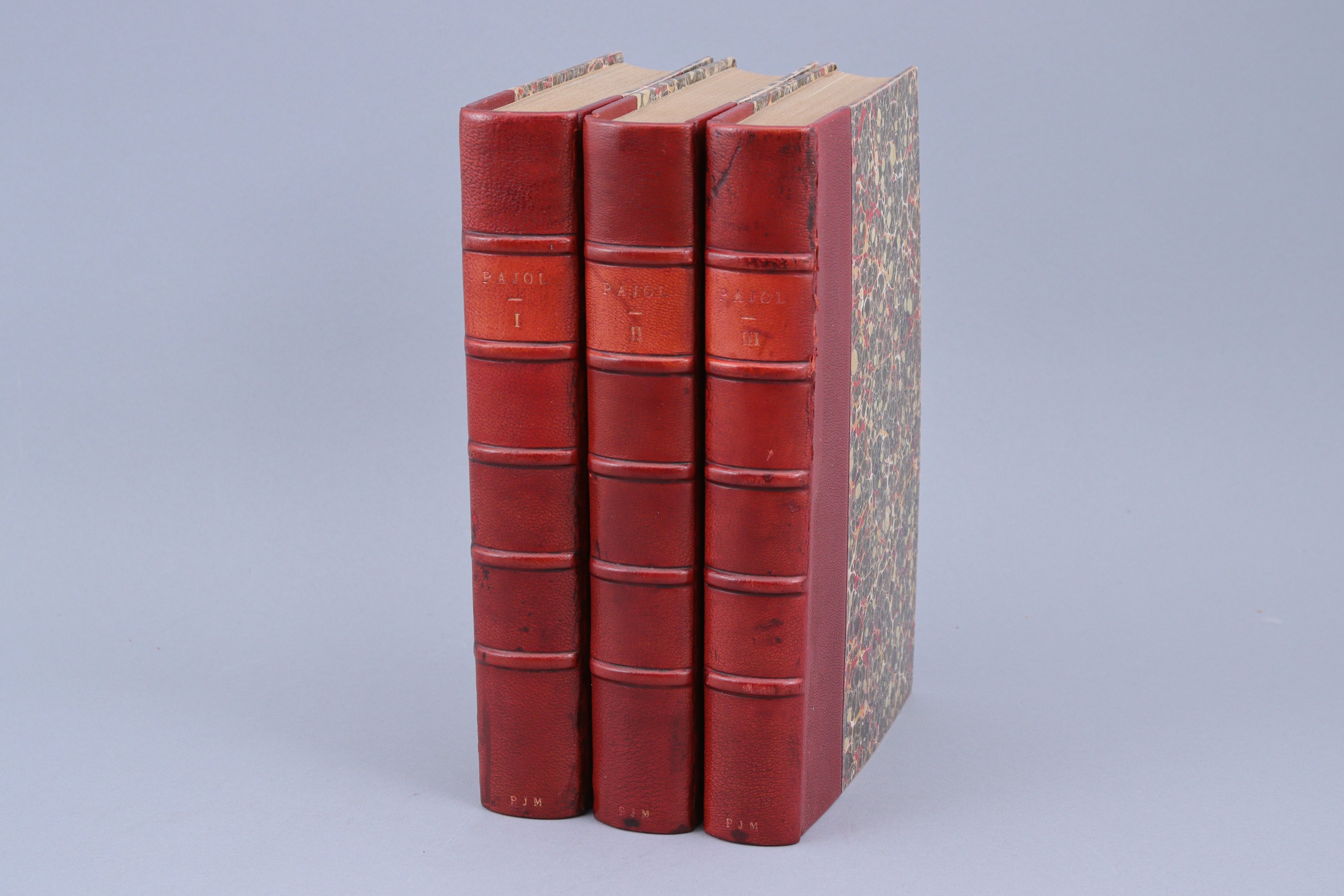 3 forts vol. in-8, Plus de 1200 pages. Portrait-frontispice. 1/2 chagrin cerise. Couvertures et dos conservés. Reliure du temps (mors restaurés).