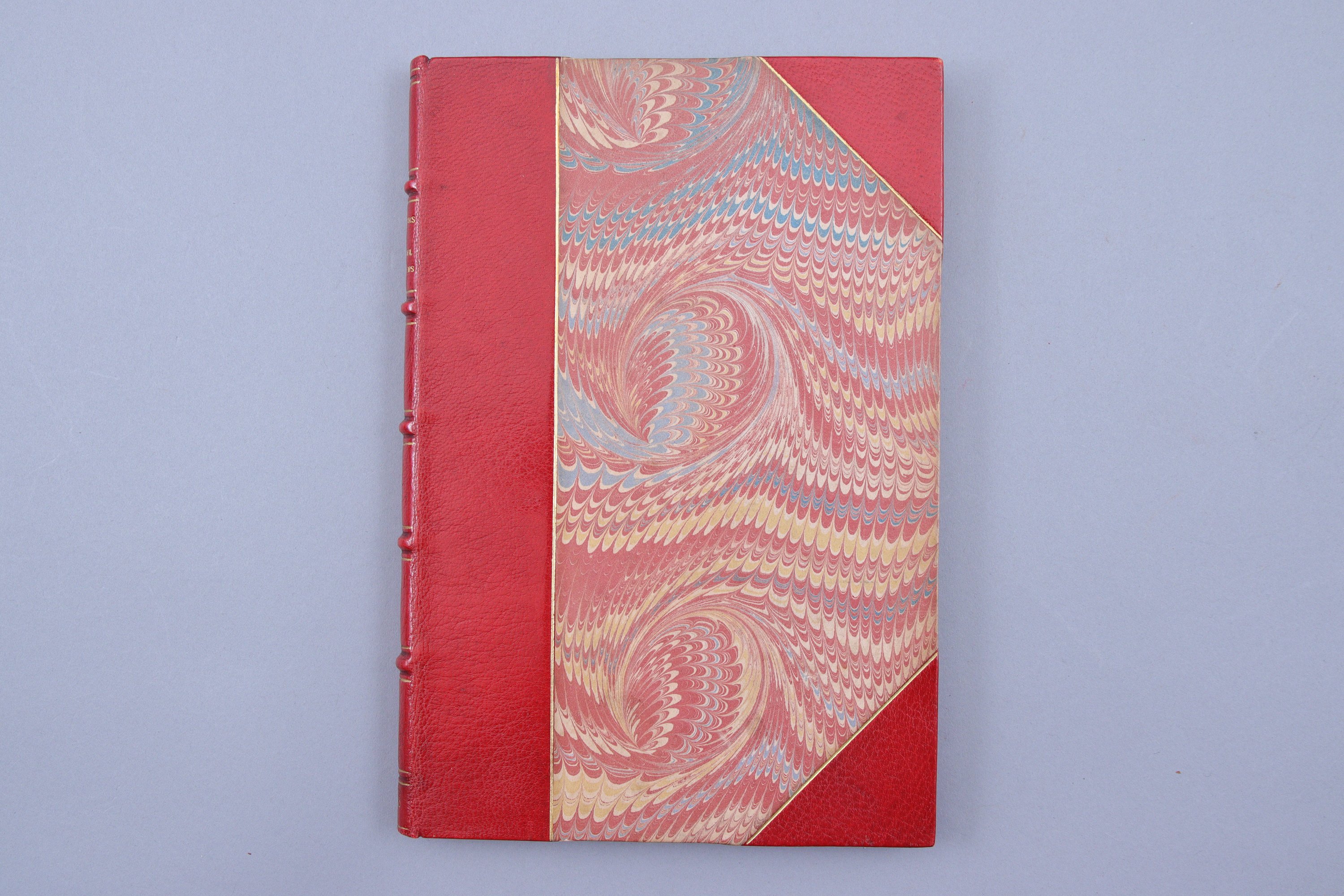 In-8, 135 pages. Portrait photographique en frontispice. 1/2 maroquin cerise à coins. Tête dorée. Reliure du temps signée Roger de Coverly and Sons.