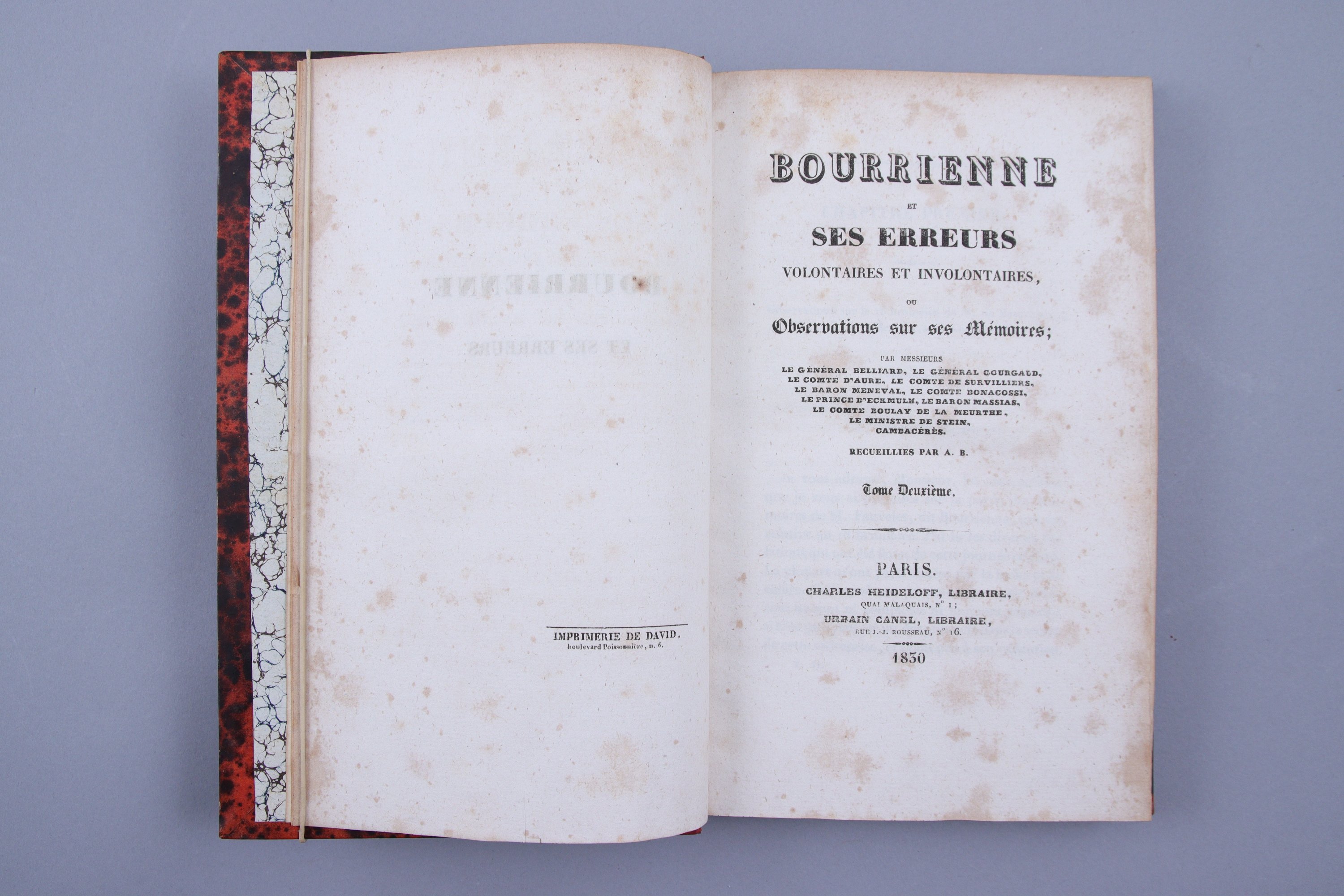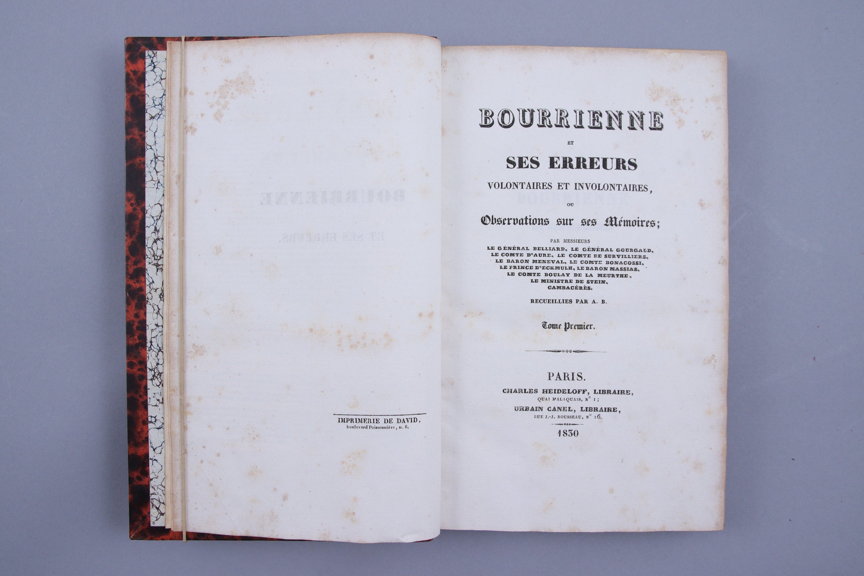 Edition originale de cet ouvrage peu courant qui complète et corrige les Mémoires de Bourrienne parus en 1829, tout en apportant des démentis à certains passages malveillants à l'égard de Napoléon, qui avaient fait scandale. (Tulard, 211)