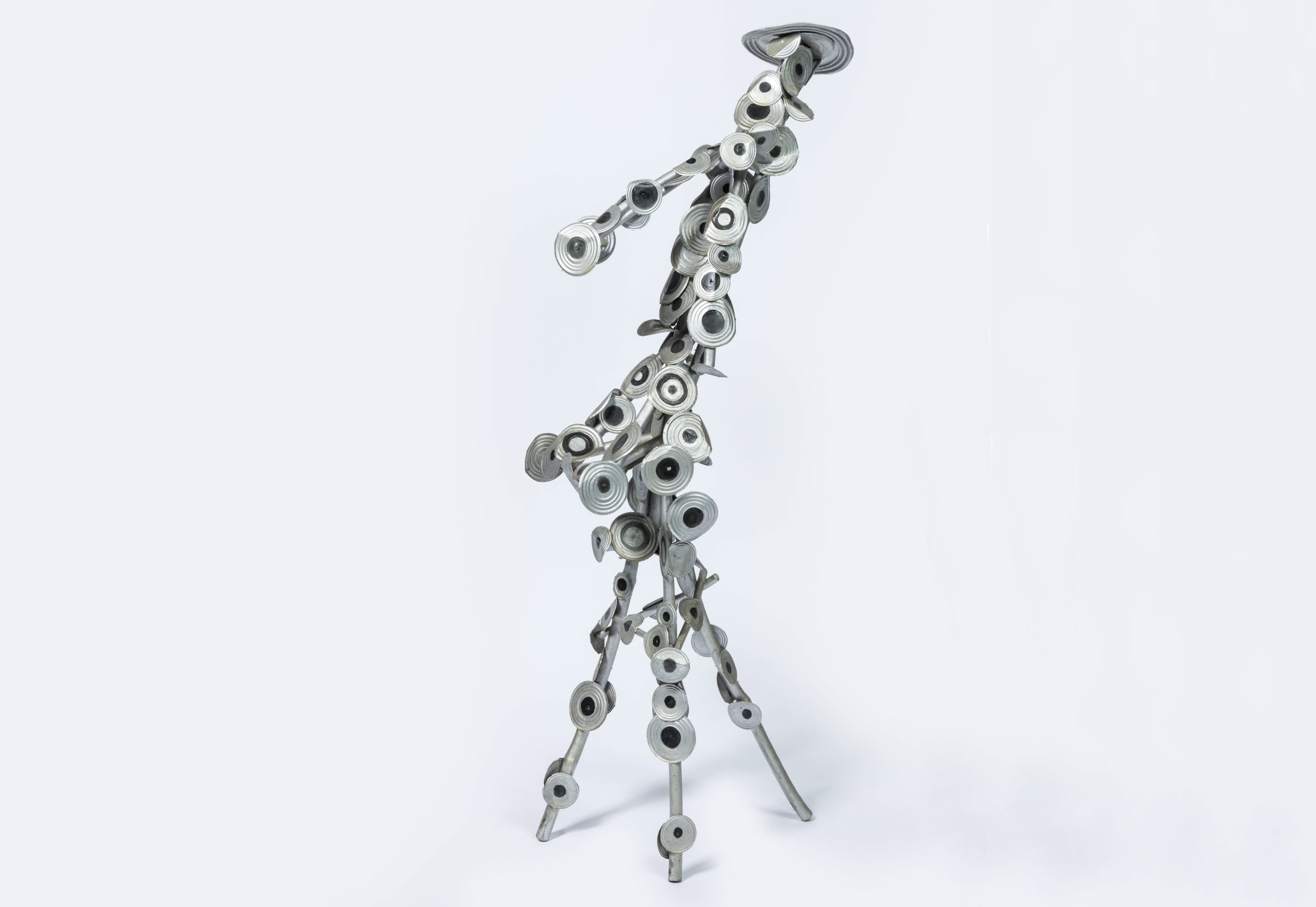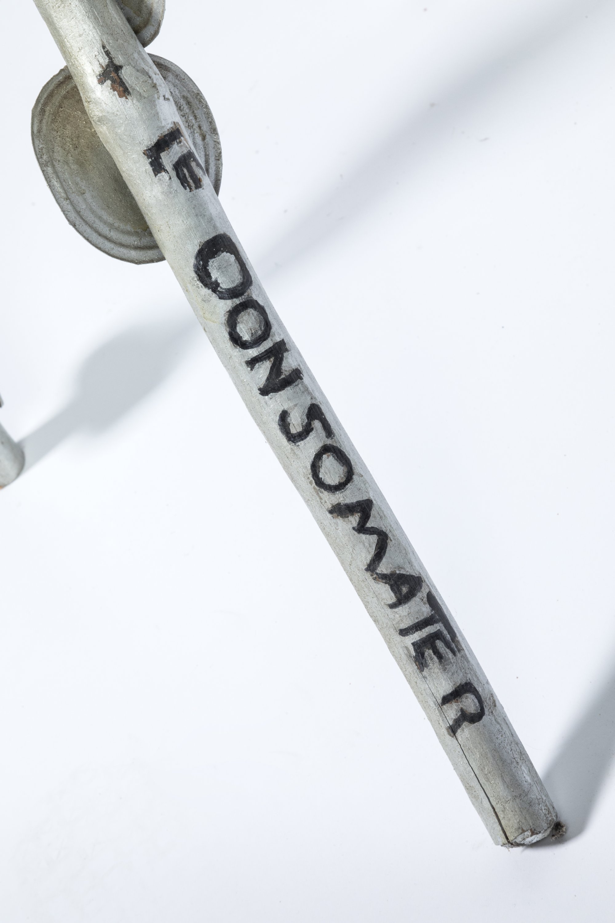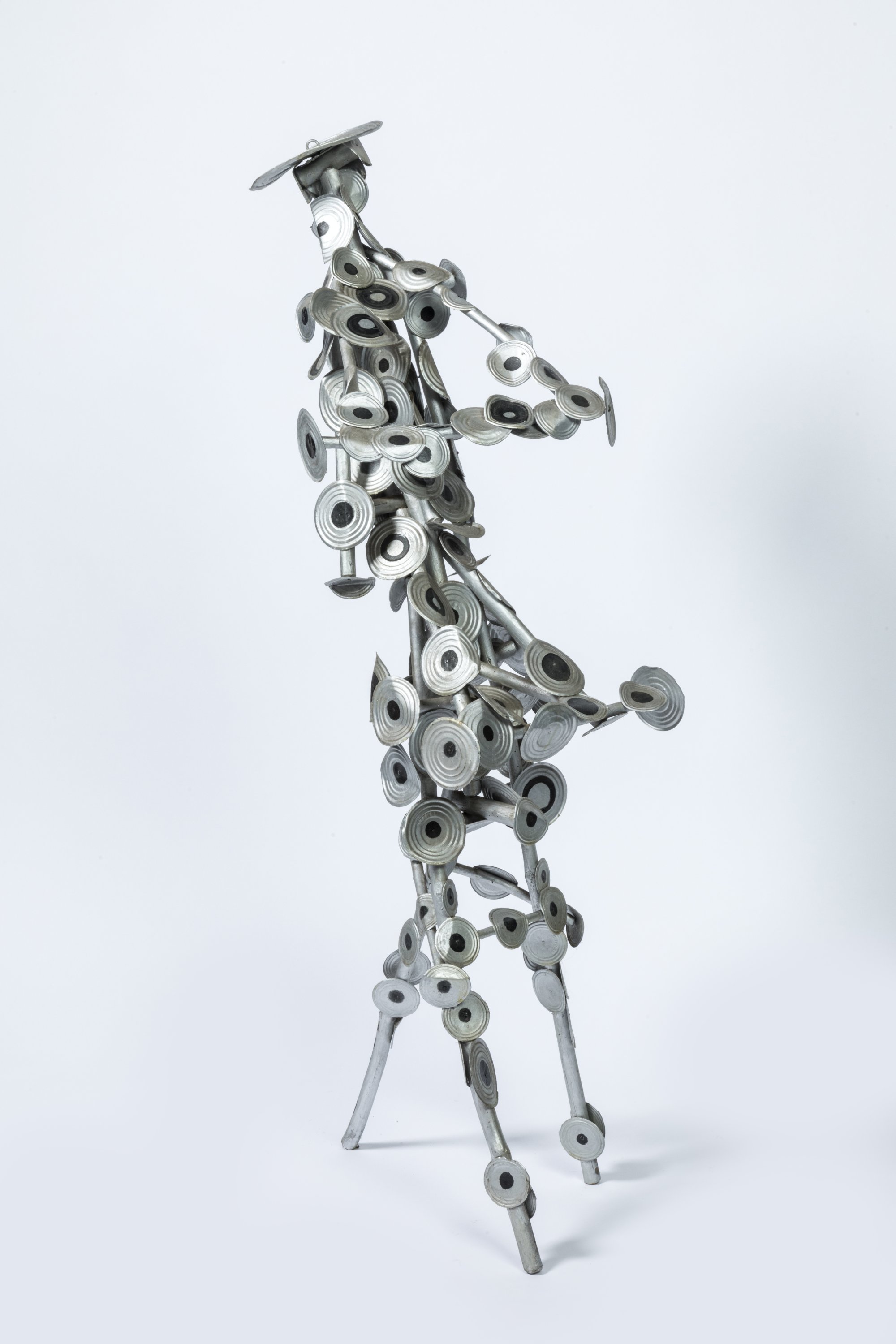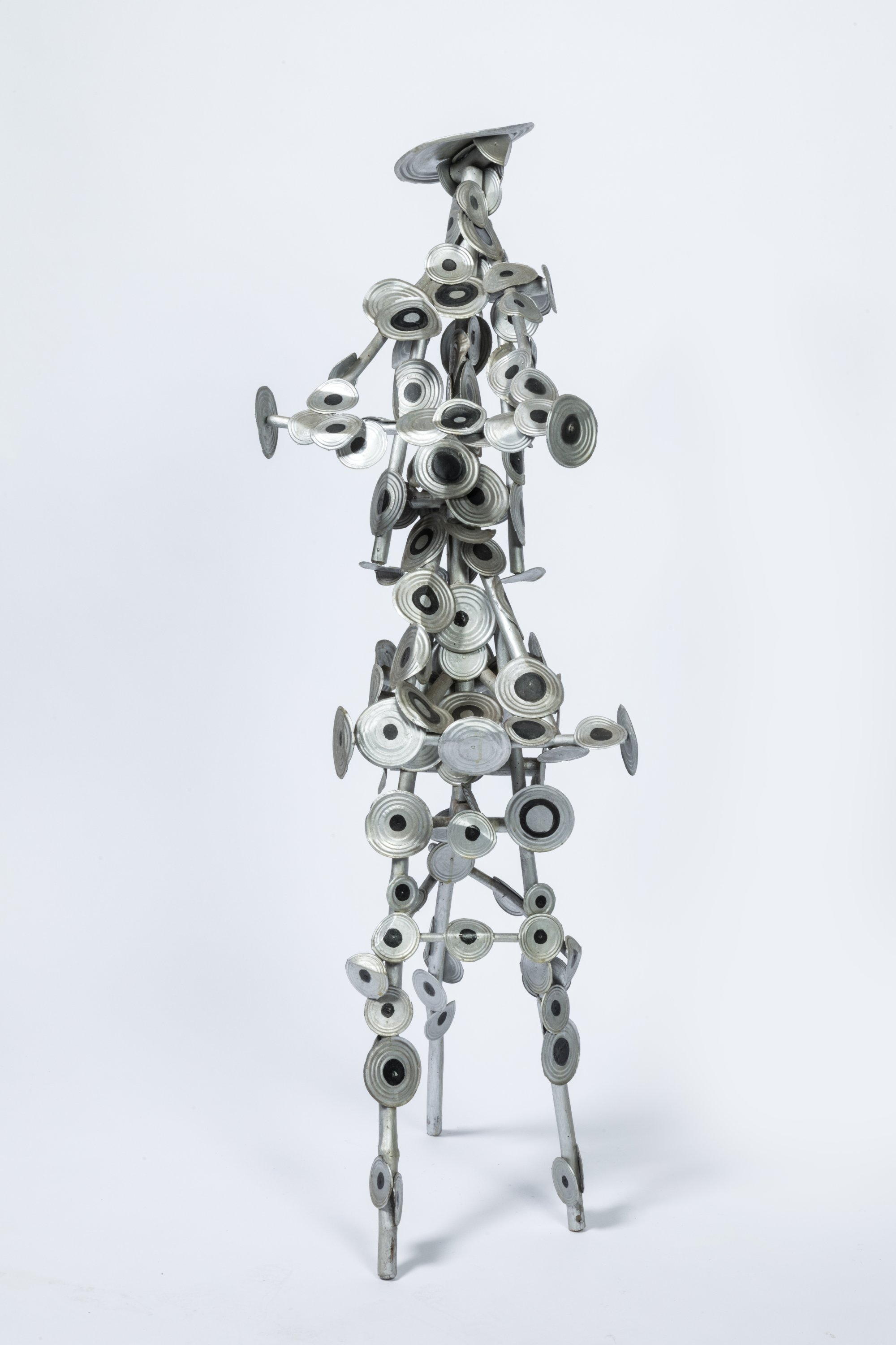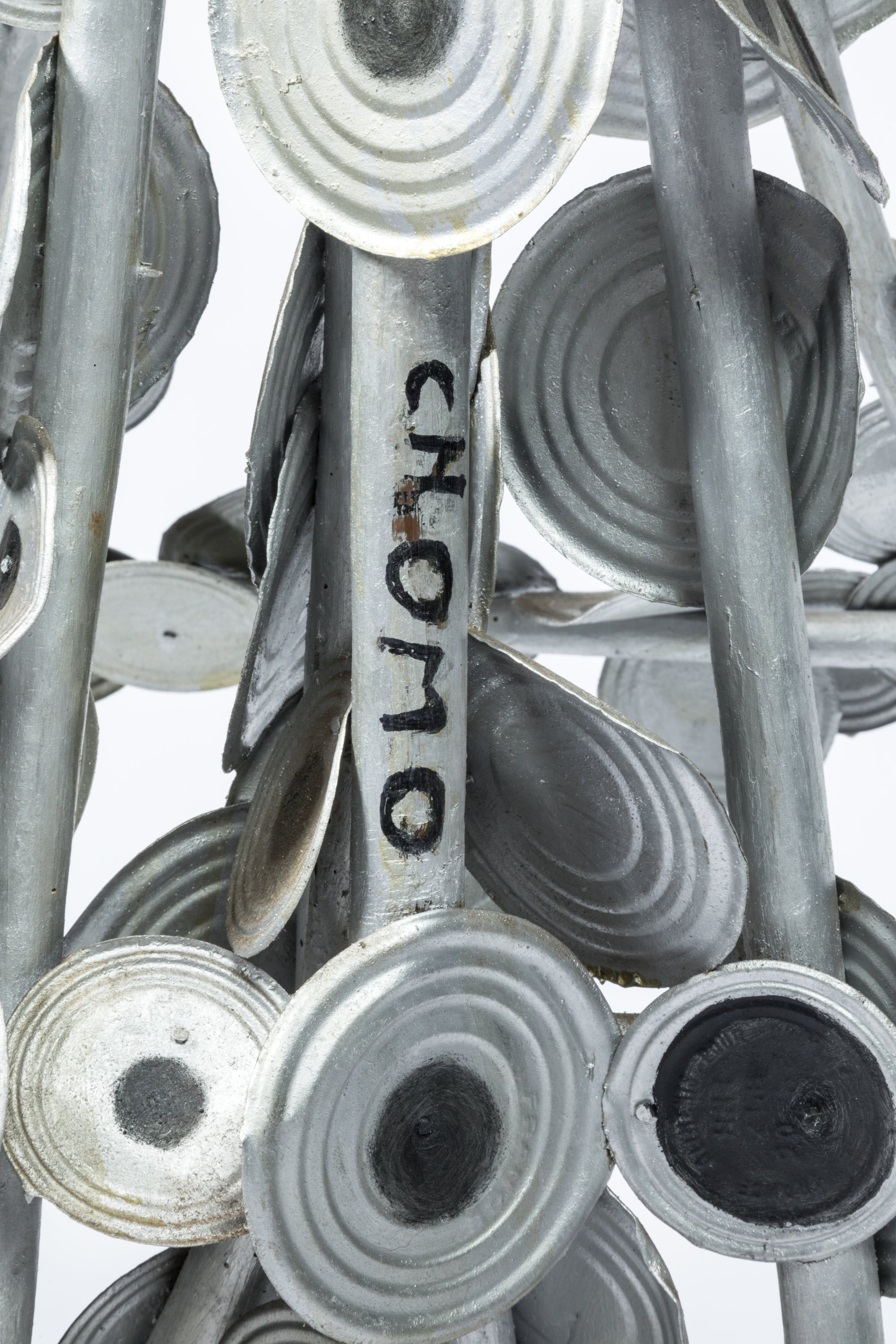 Assemblage de bois et fond de boîtes de conserve.