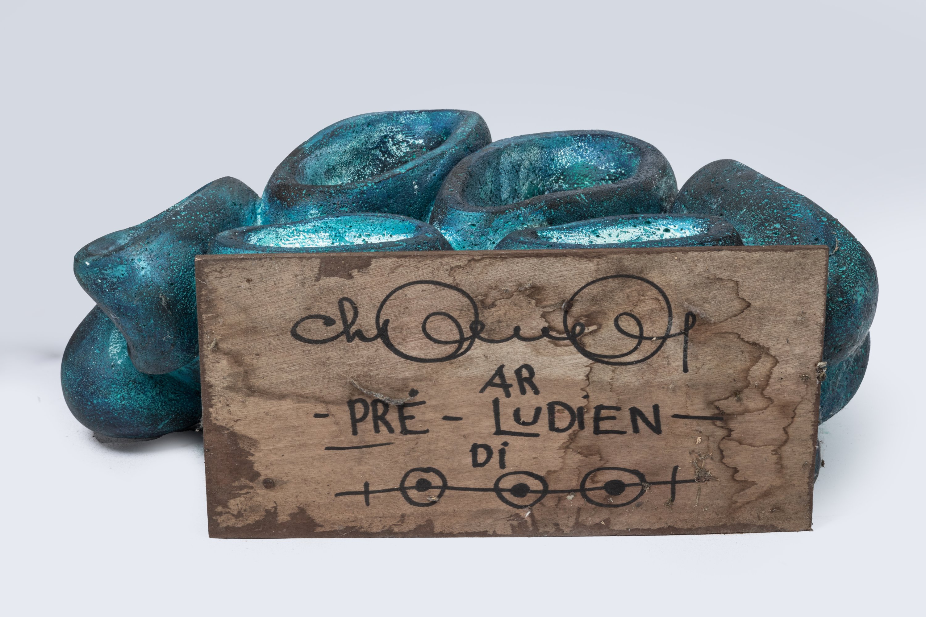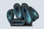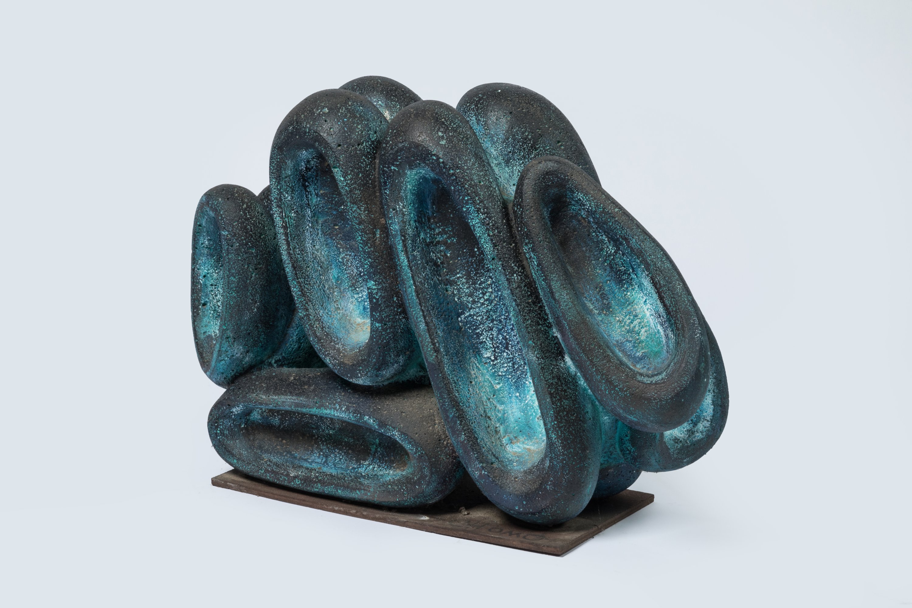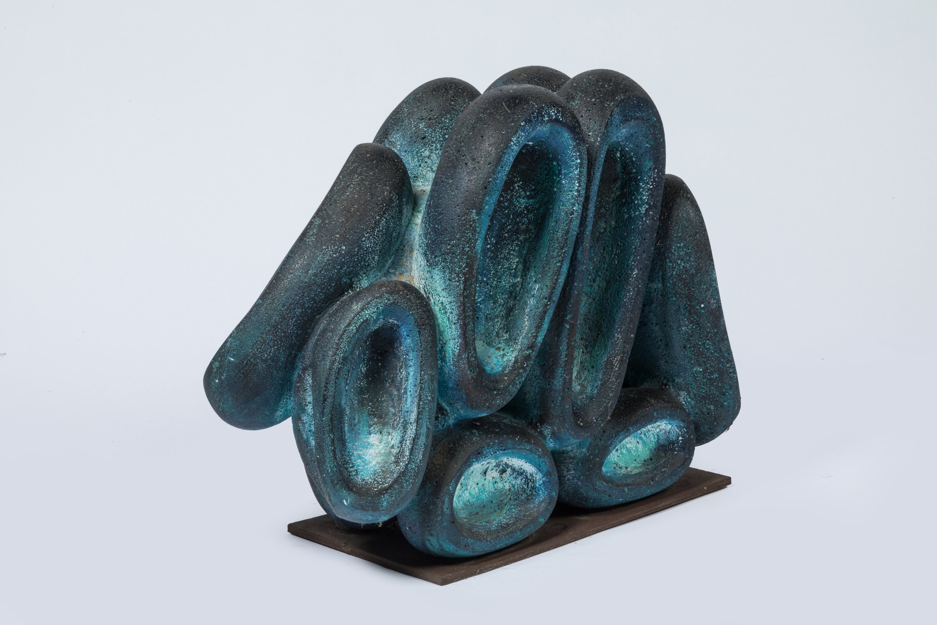 Siporex sculpté à patine bleue.