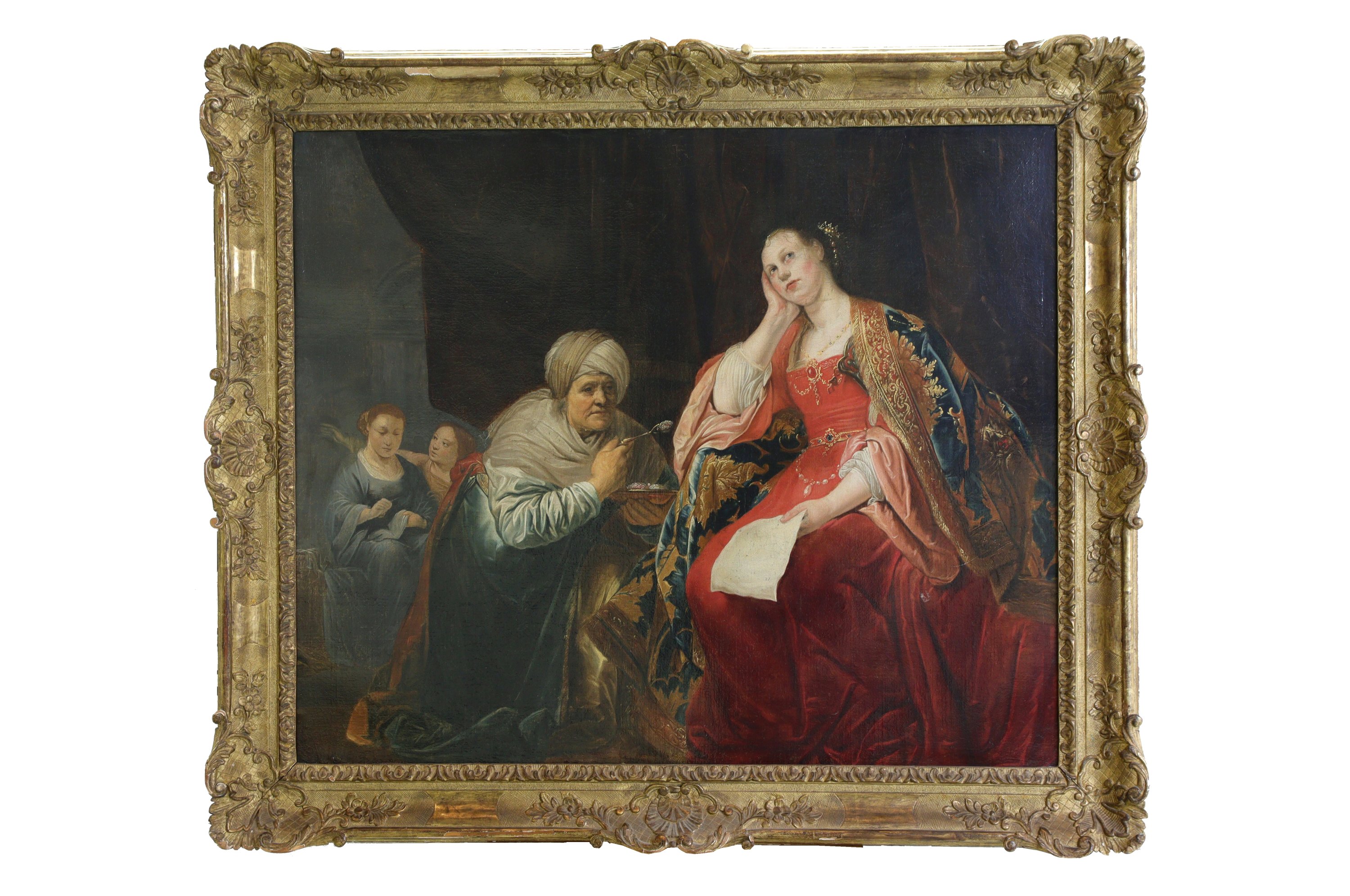 Attributed to Pieter Fransz. de Grebber. A painting depicting the fast of Esther. In a carved giltwood frame.
